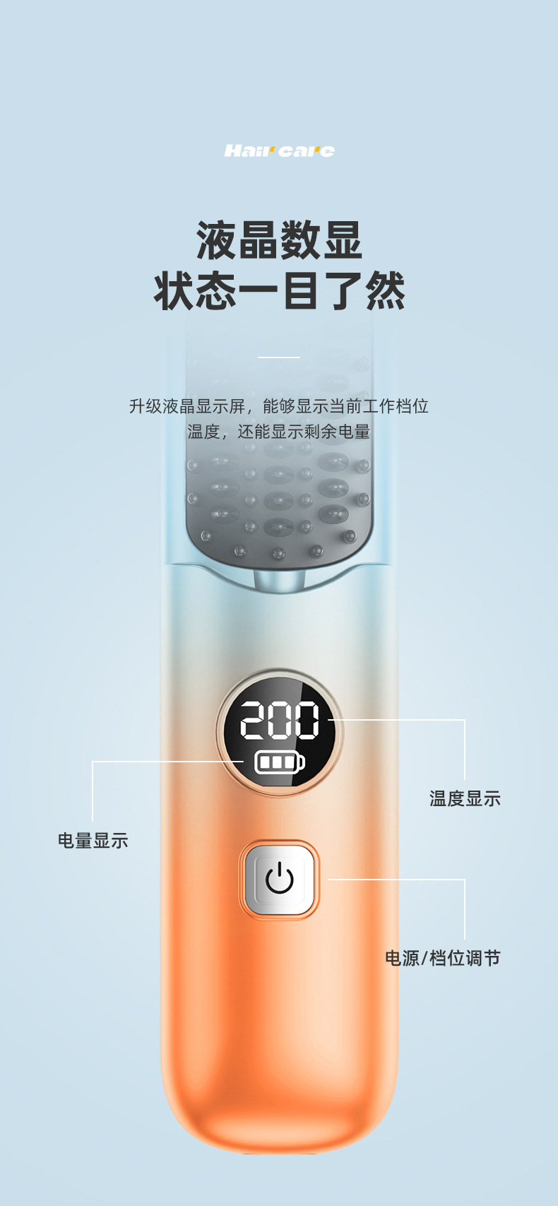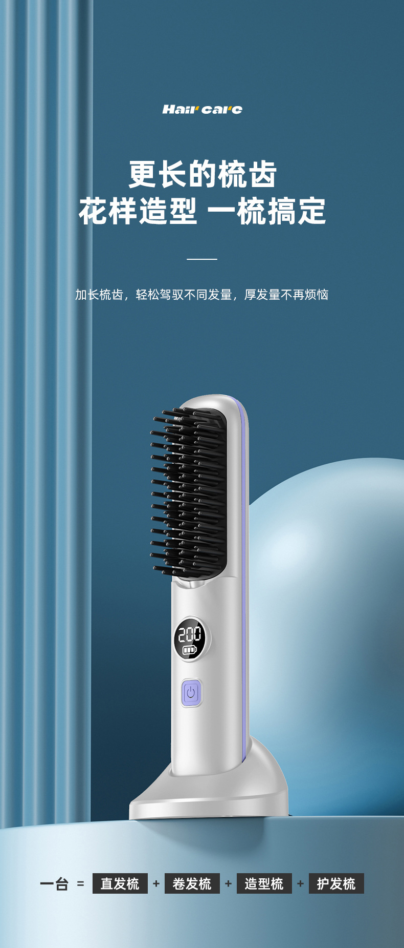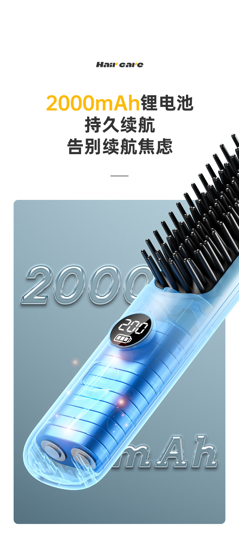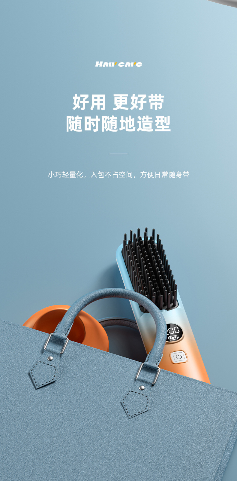 跨境无线直发梳充电式迷你便携旅行数显直发器无线直卷两用直发梳