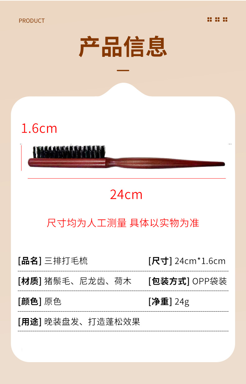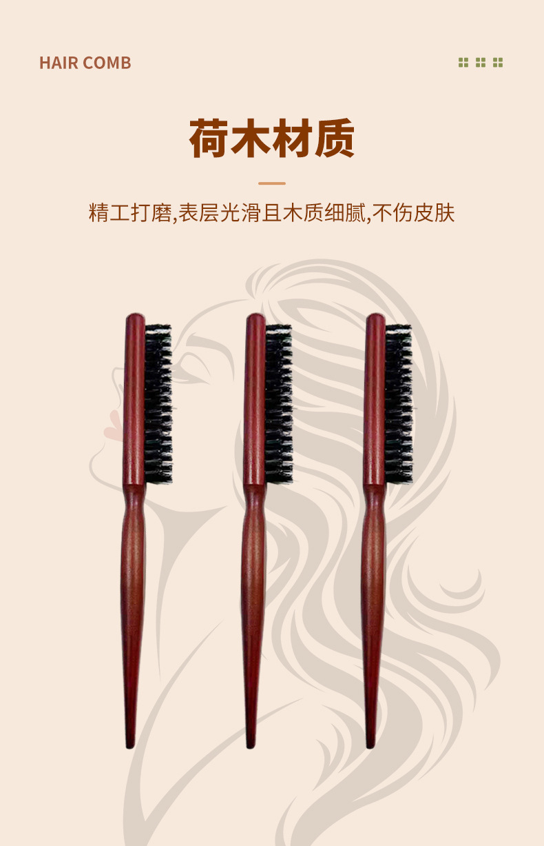 理发师蓬松打毛梳实木三排梳造型包发梳盘发梳尖尾鬃毛梳美妆工具