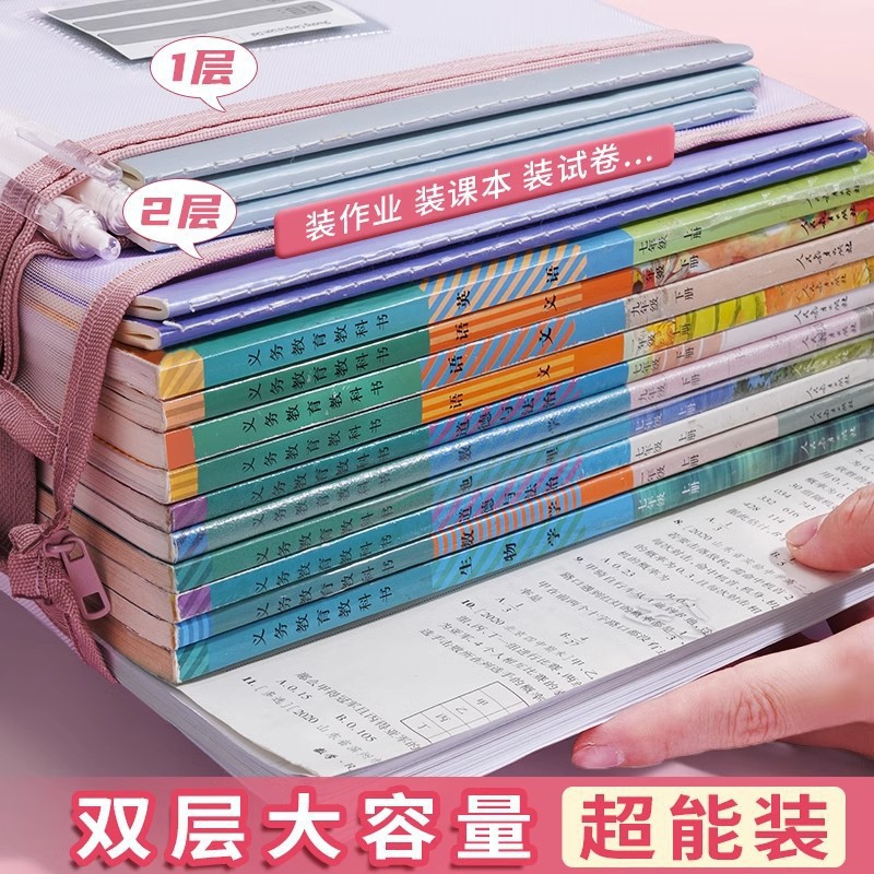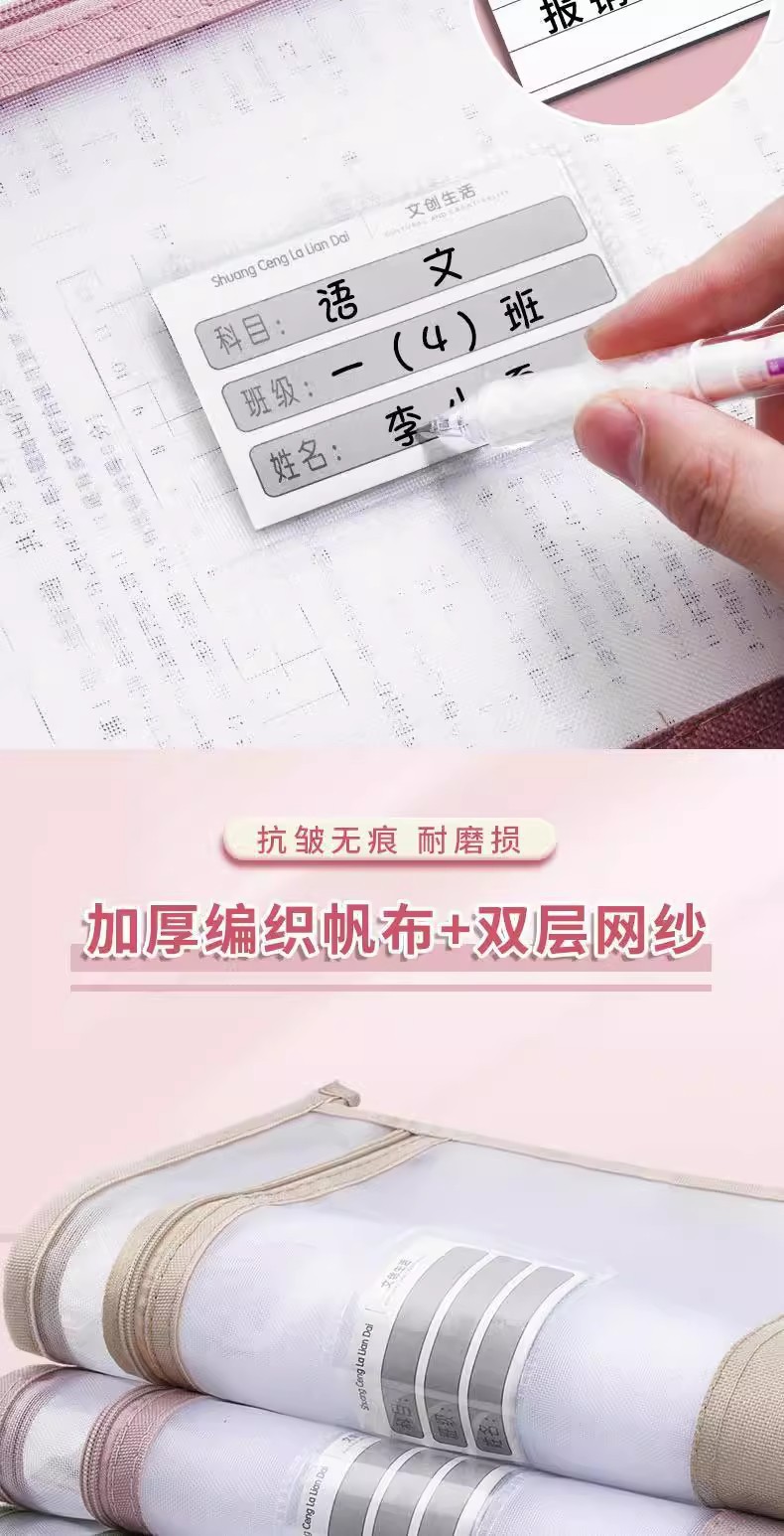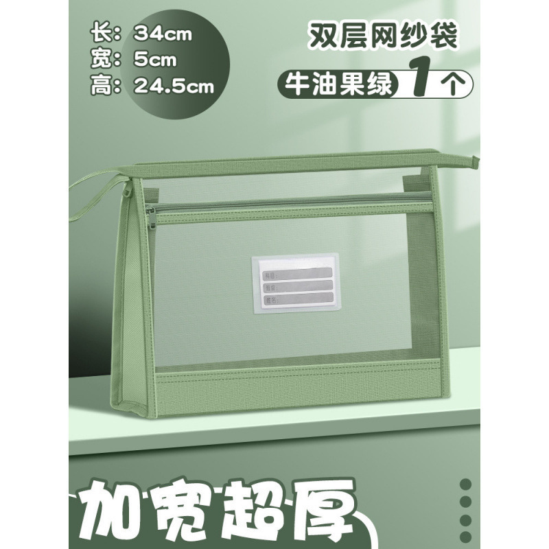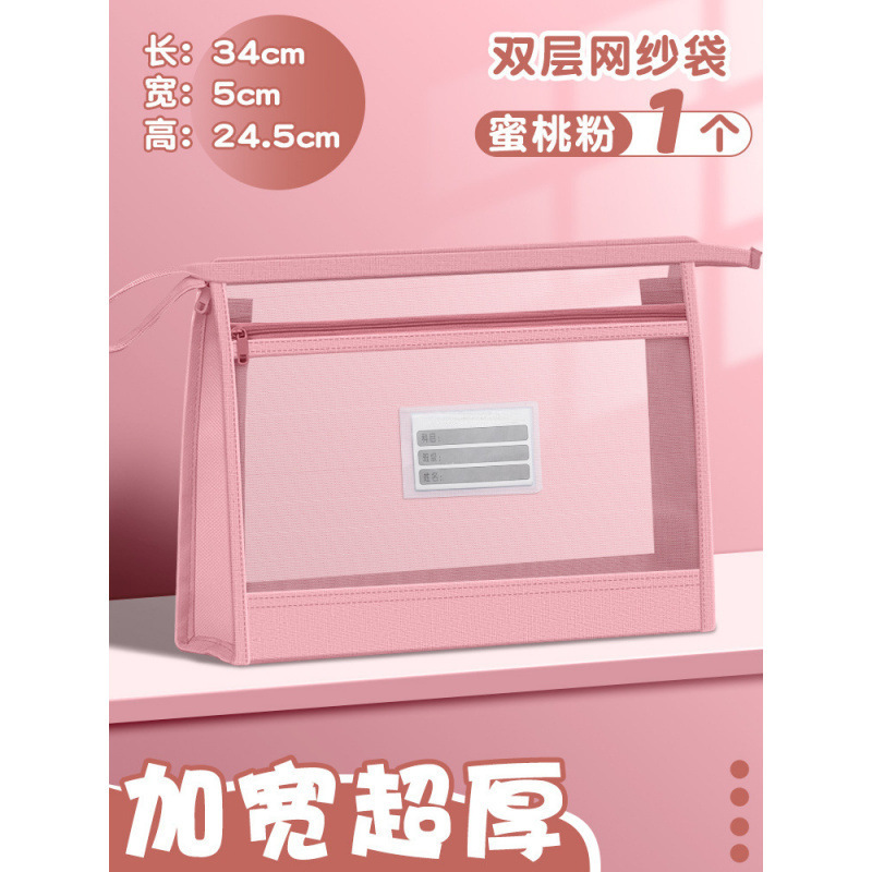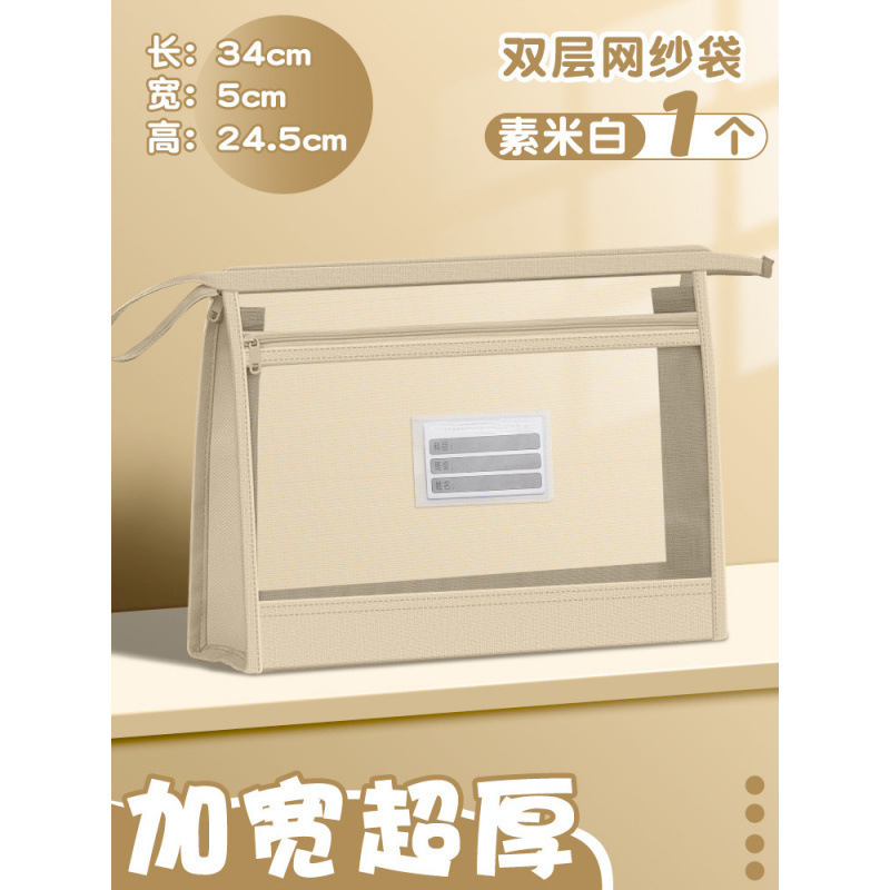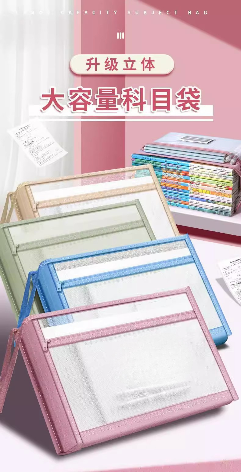 加厚双层网纱A4文件袋立体科目分类收纳袋大容量透明拉链试卷袋