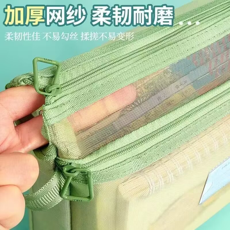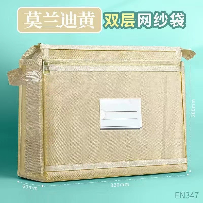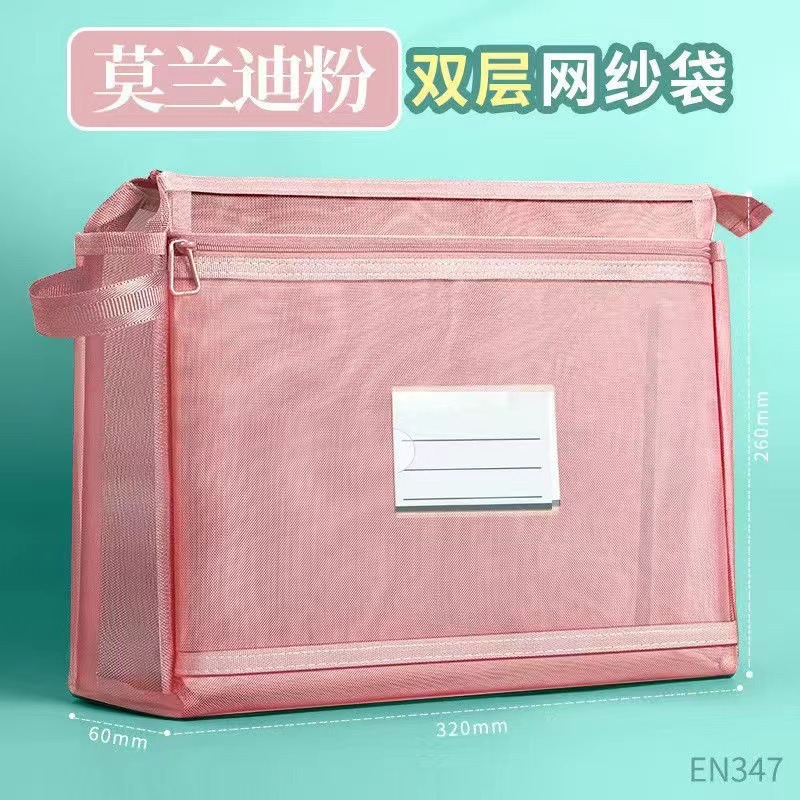 大开口透明文件袋学生补习收纳袋书本资料袋网纱双层科目袋厂家