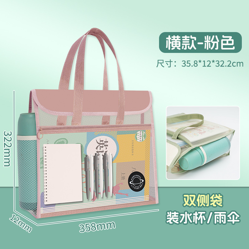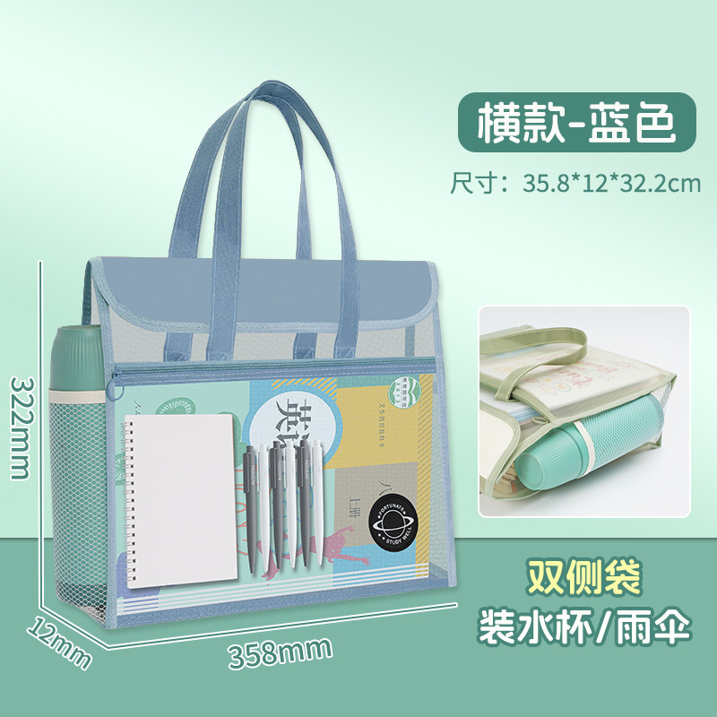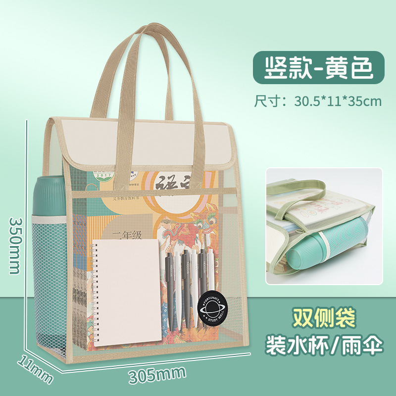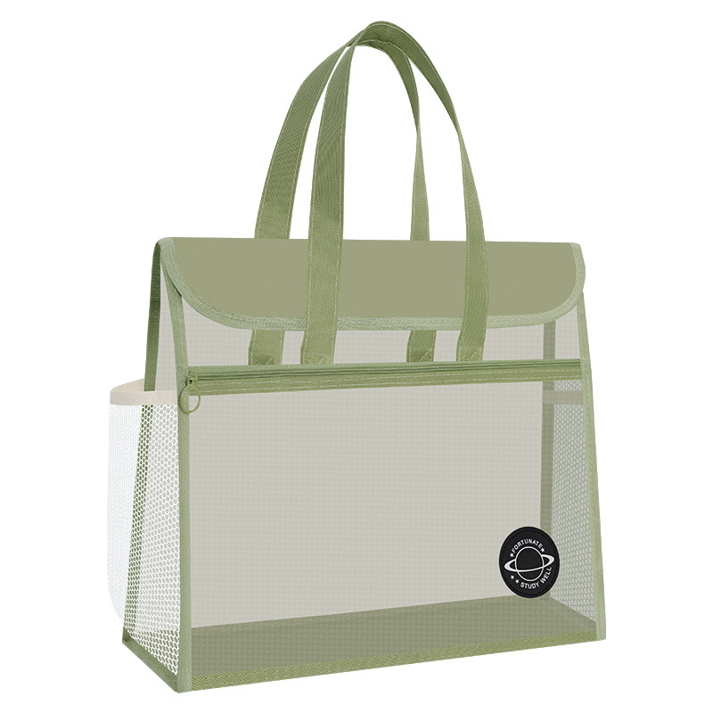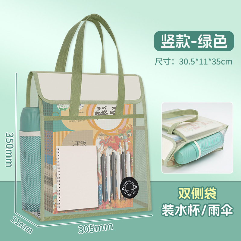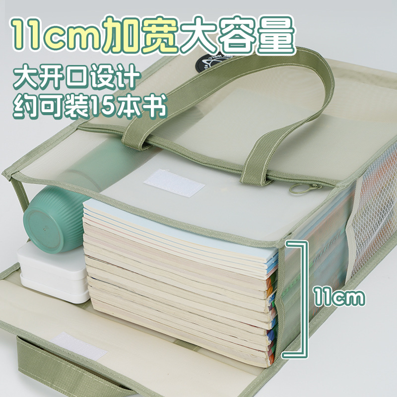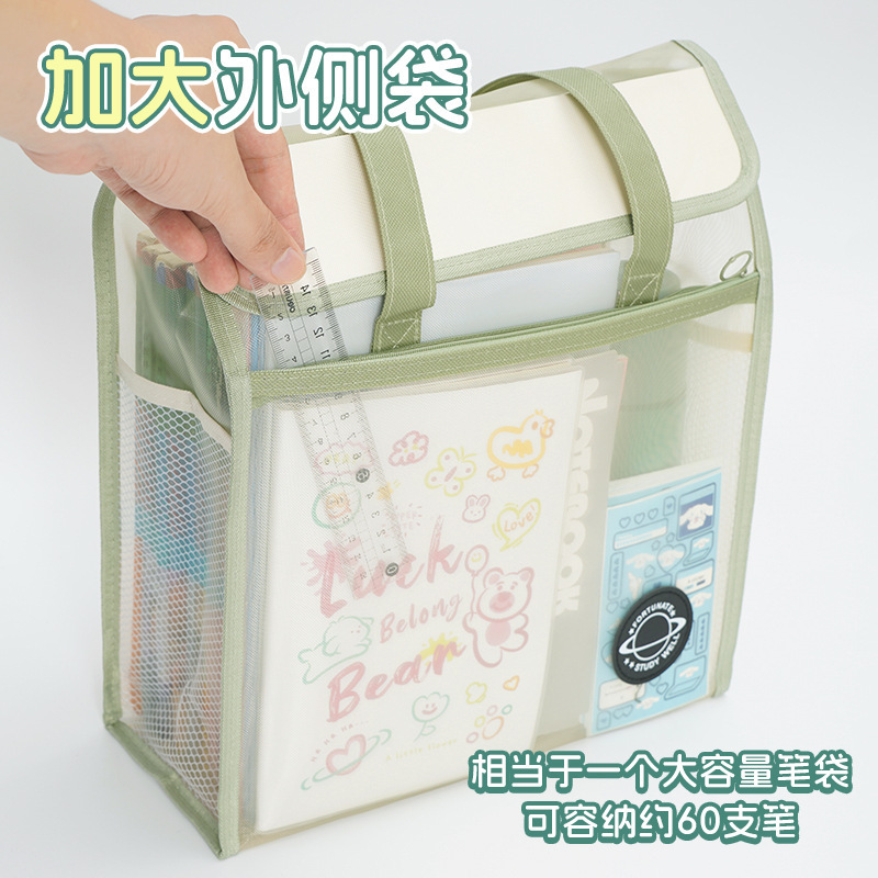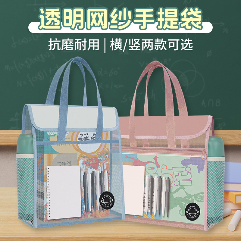 大容量加厚透明网纱补习袋学生课本试卷多层收纳袋手提拎书袋
