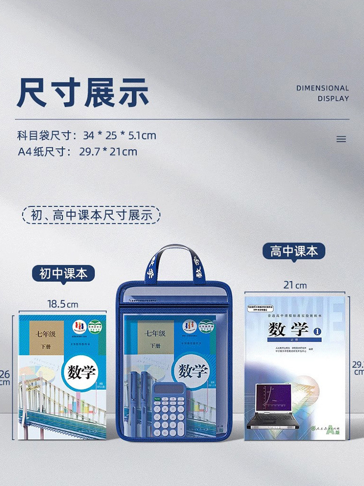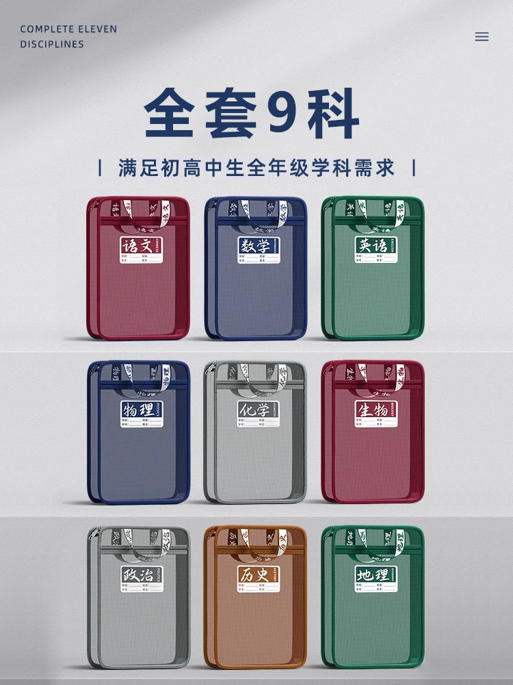 加厚防水双层学科分类袋 手提式A4文件袋 中小学生补习收纳袋