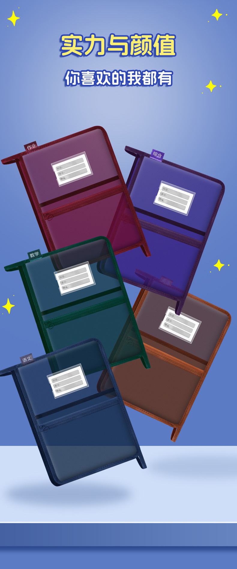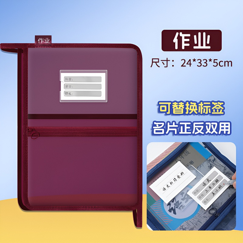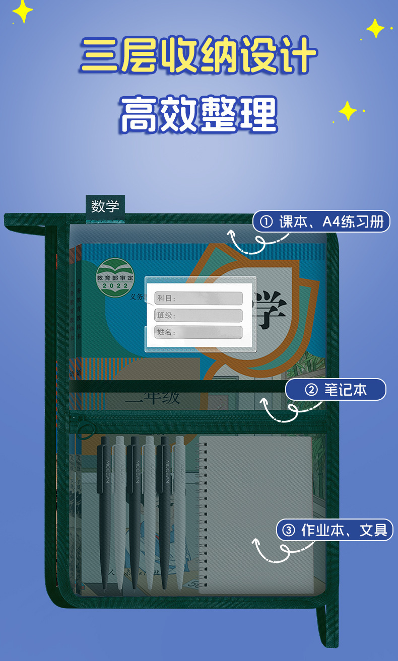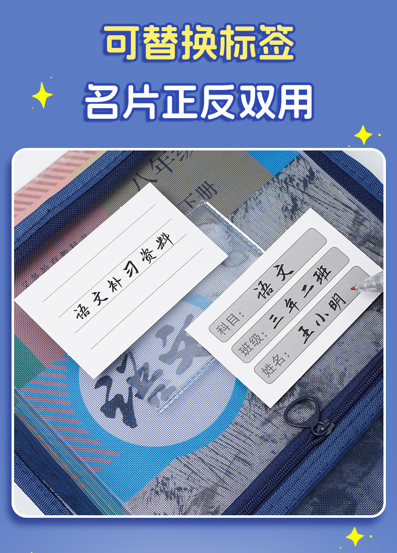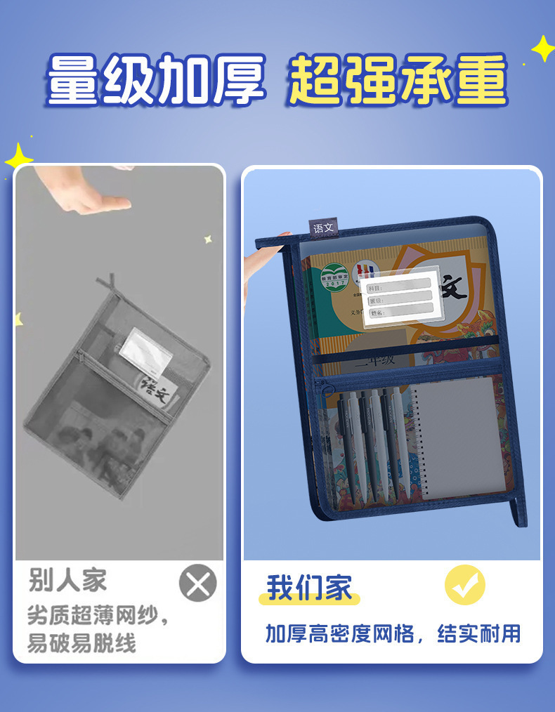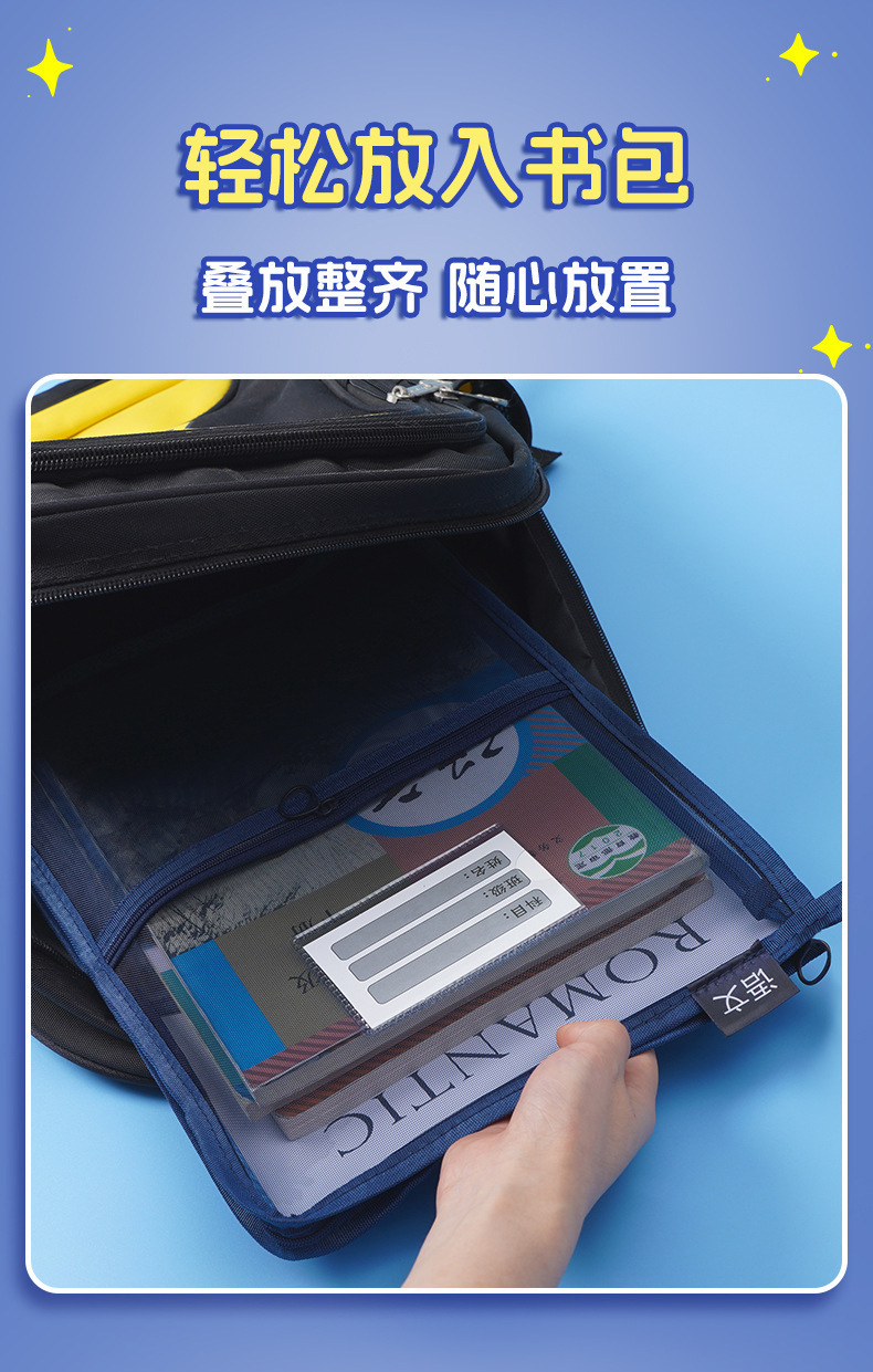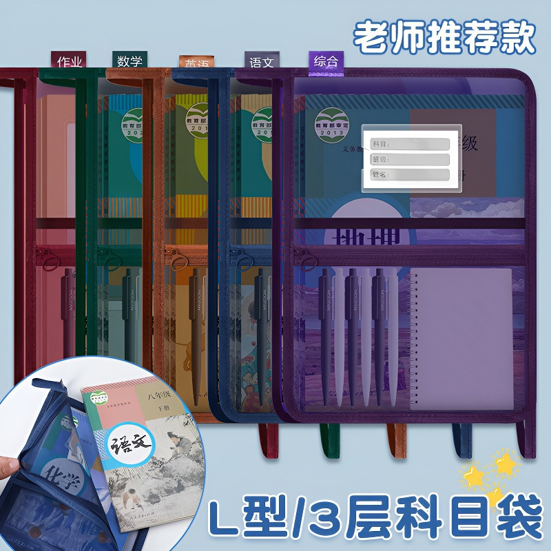 学生用L型大开口科目袋 3层加厚网纱试卷收纳 分类明确A4文件袋