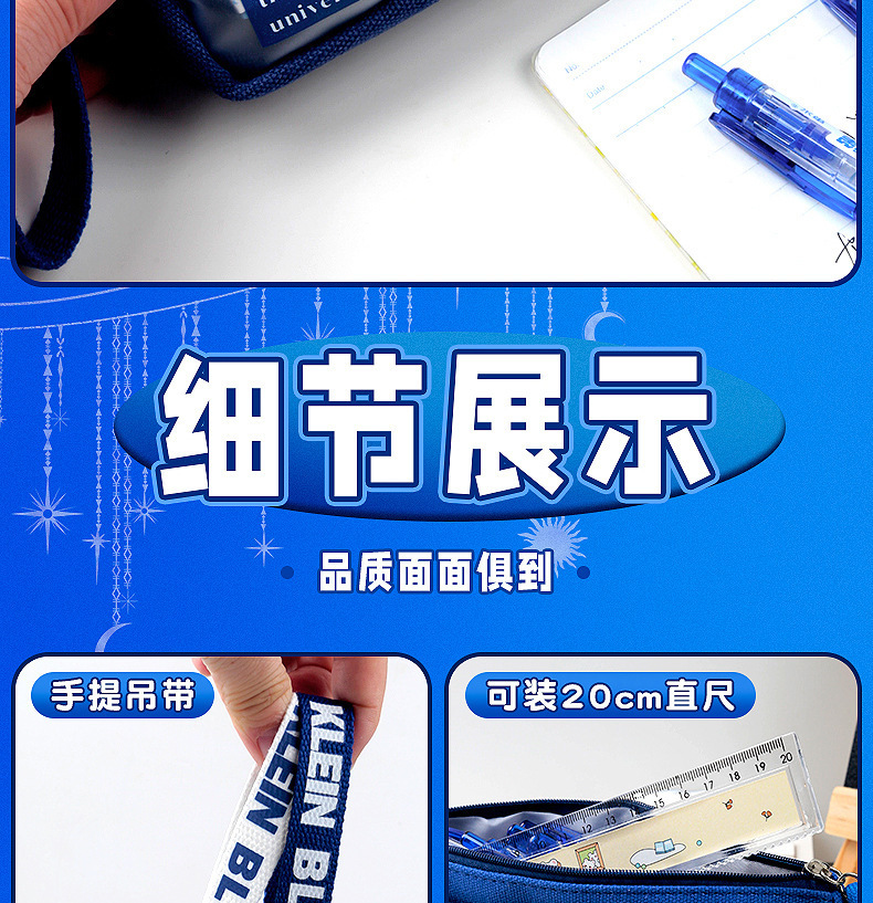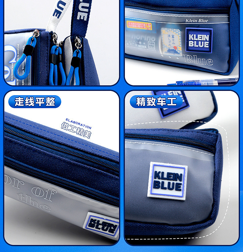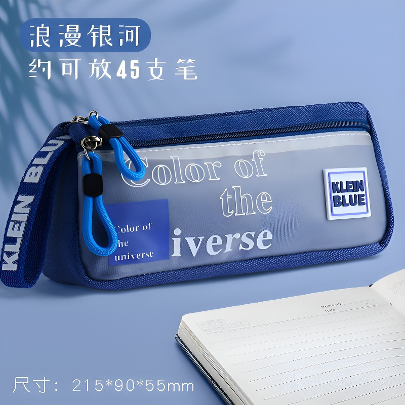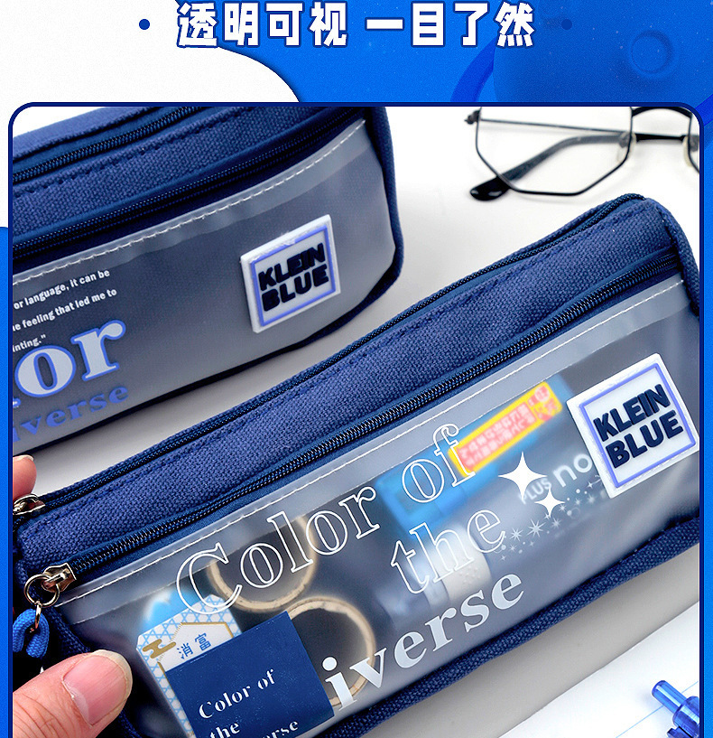 克莱因蓝透明大容量笔袋 ins高颜值耐脏文具盒小学生简约风铅笔袋