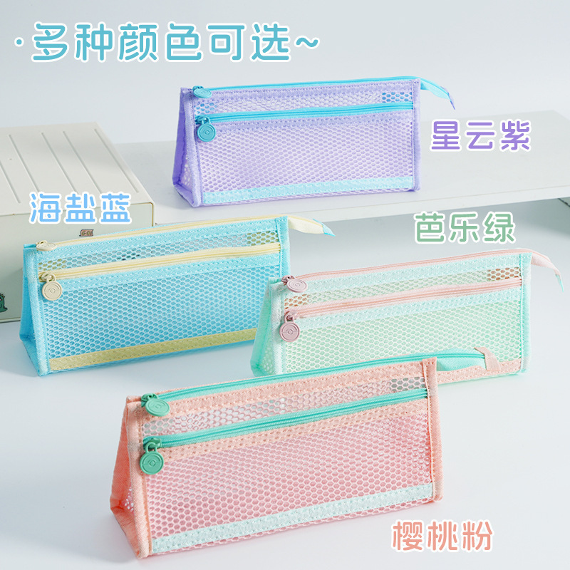 立体网纱笔袋儿童铅笔盒学生考试专用大容量透明文具收纳袋