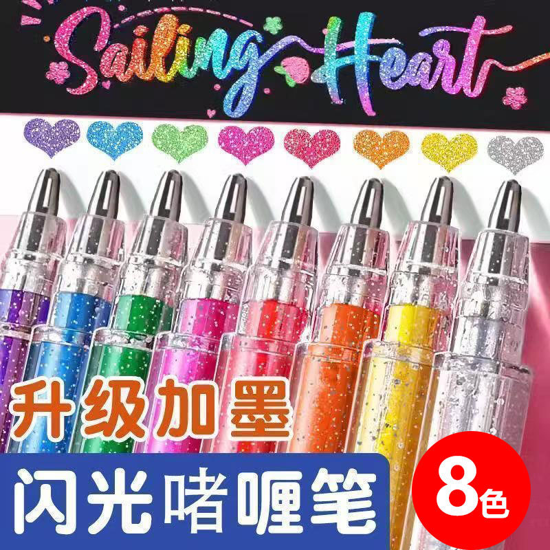 珠光梦幻珠光啫喱闪光笔套装儿童涂鸦学生手账荧光叠色记号笔