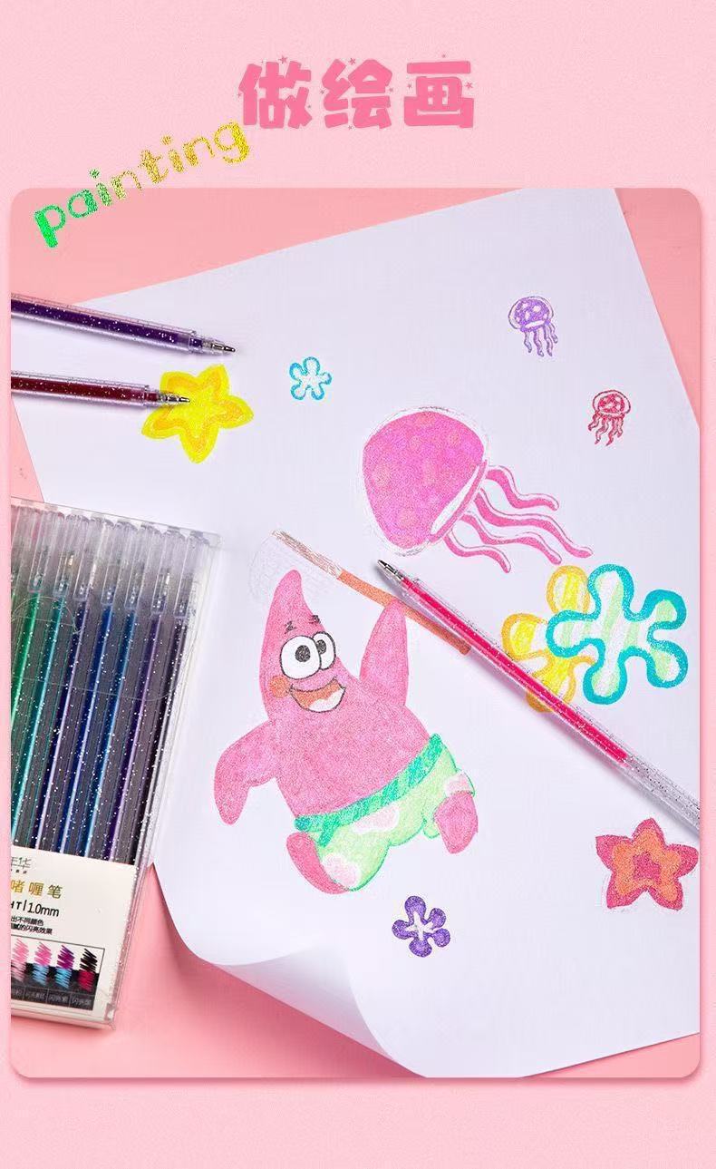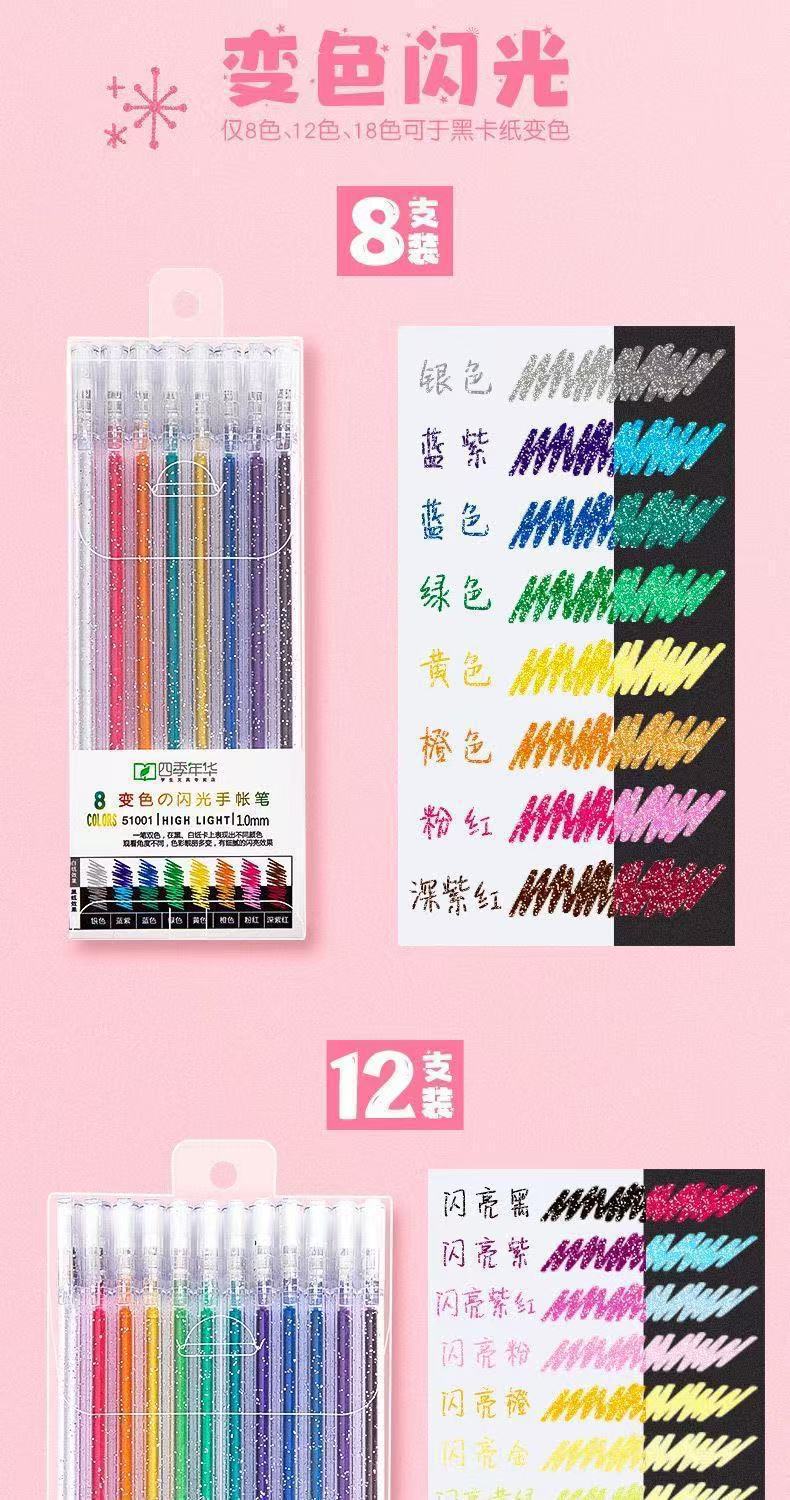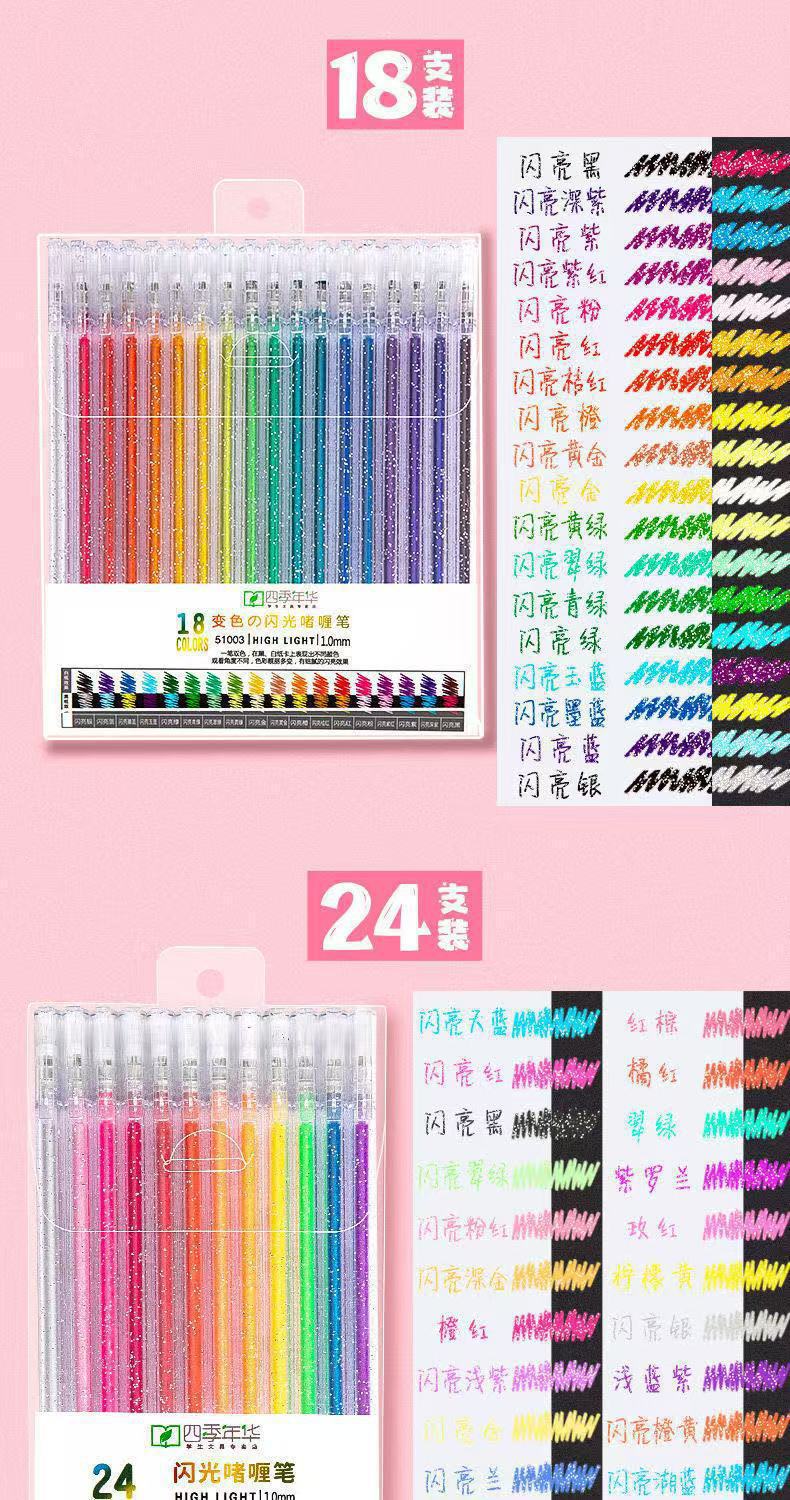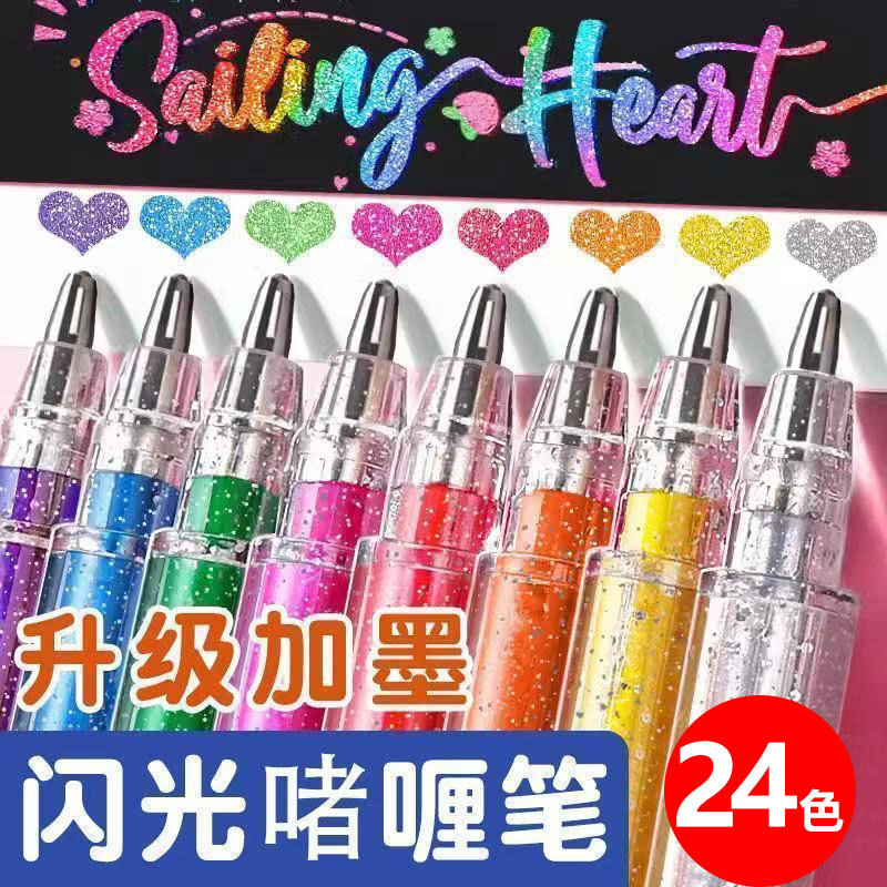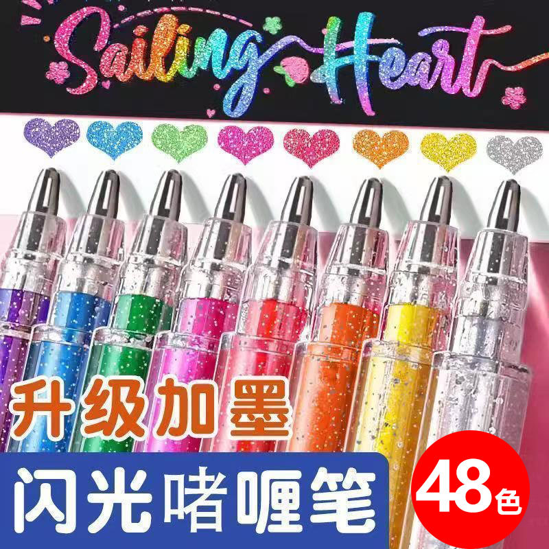 珠光闪光啫喱笔多色可选亮晶晶流沙荧光笔学生手账标记笔记记号笔