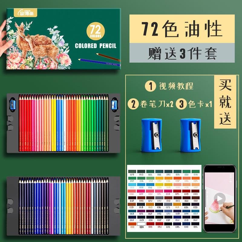 72-color oil/water-soluble professional colored pencils