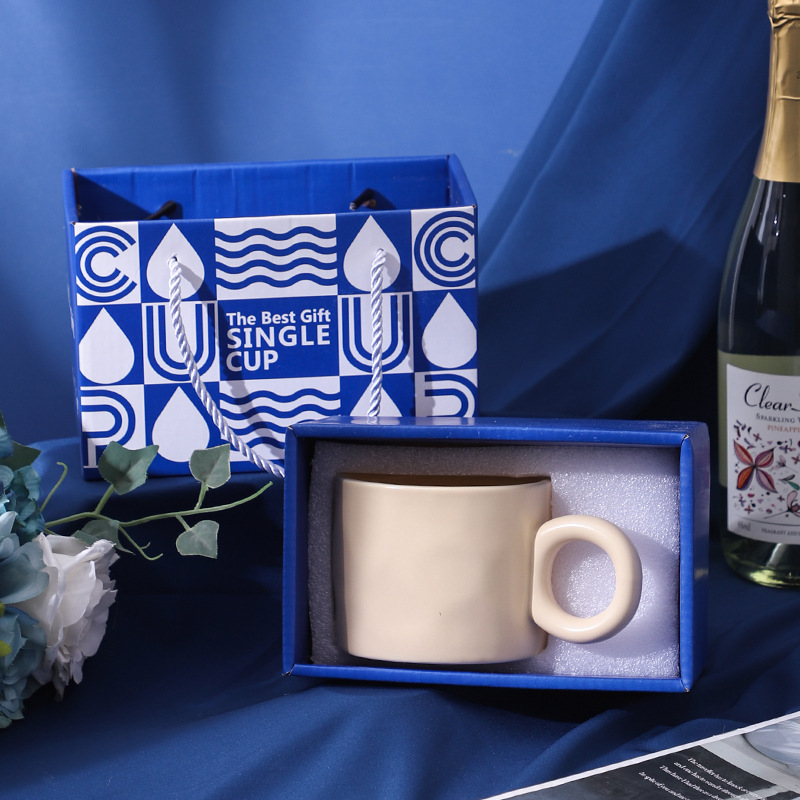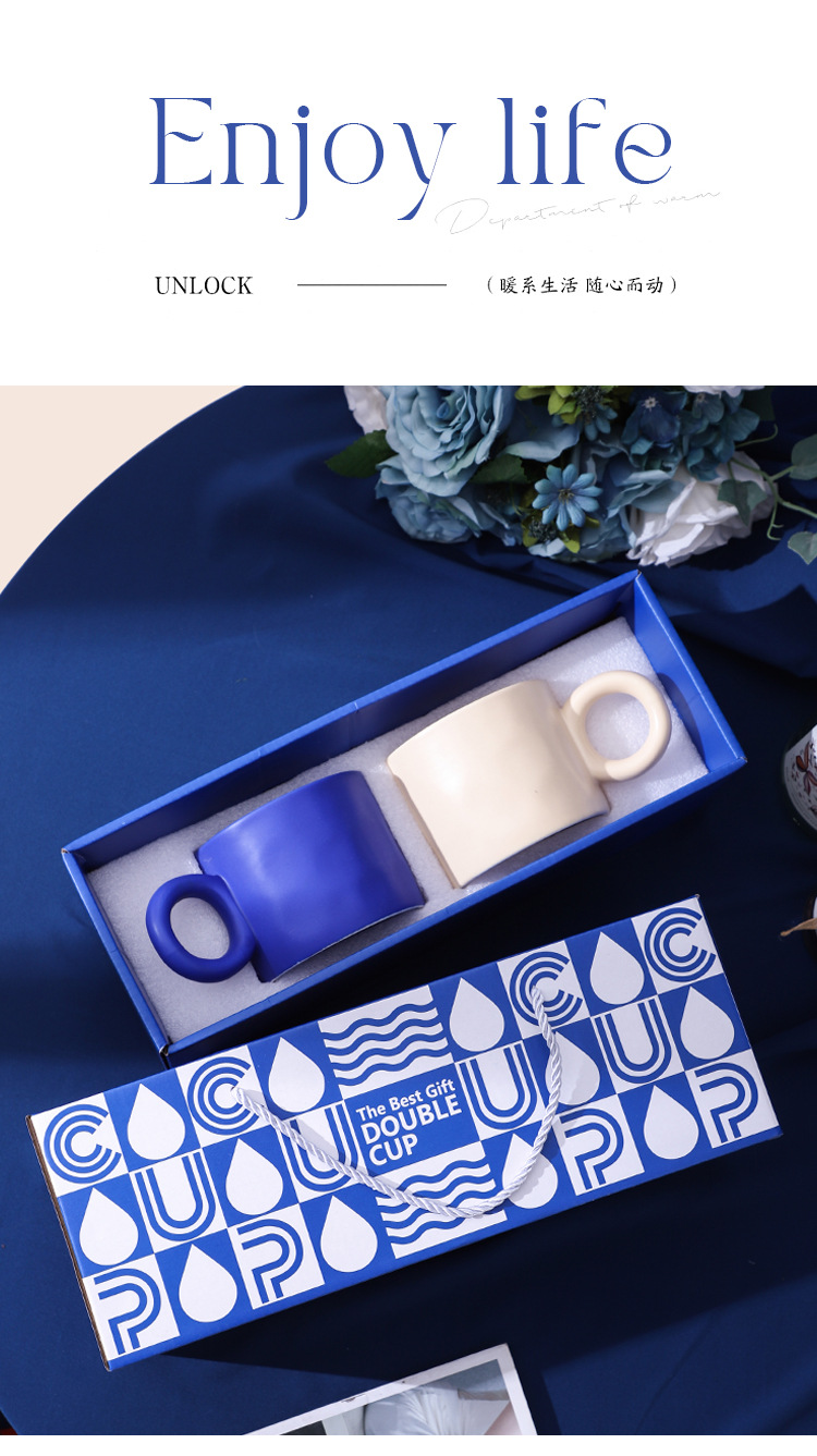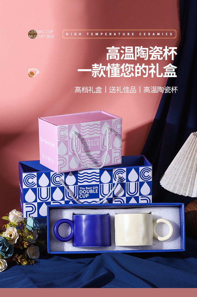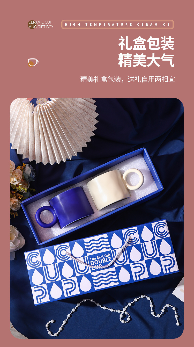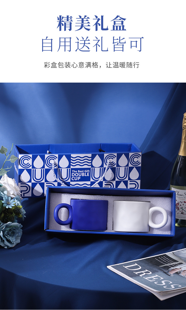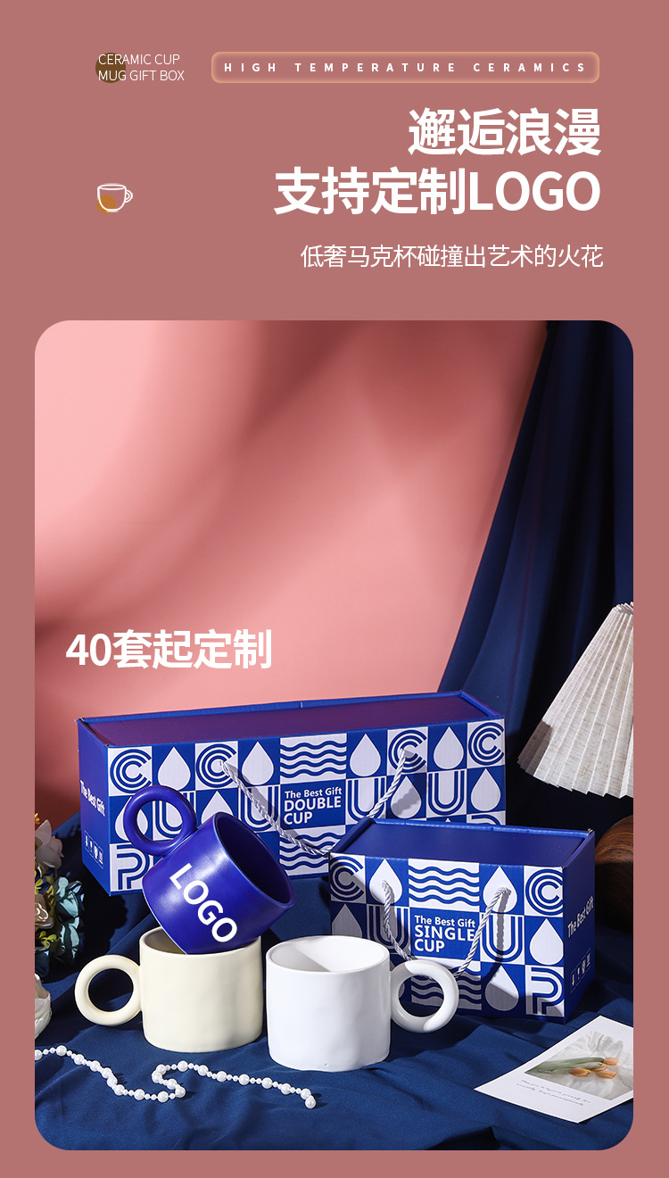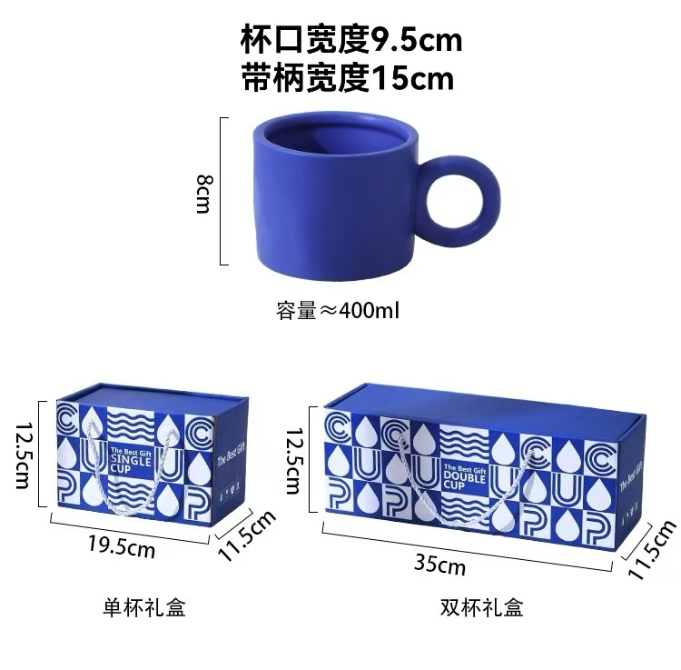 高档礼品克莱因蓝奶油风INS陶瓷马克杯礼盒套装活动小礼品伴手礼