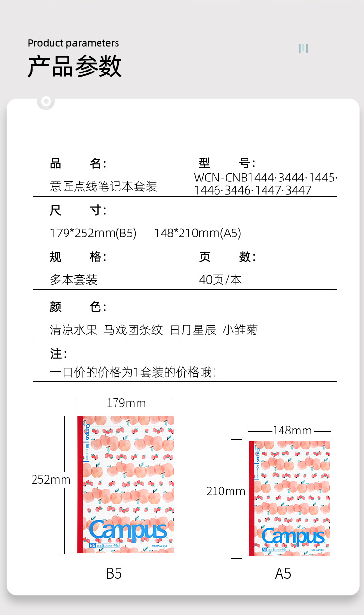 日本国誉A5B5水果系列限定封面点线笔记本书写学生本无线装订40页