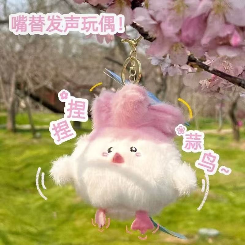 武汉文创樱花粉色蒜鸟发声玩偶和平鸟鄂人毛绒玩具挂件武汉方言批