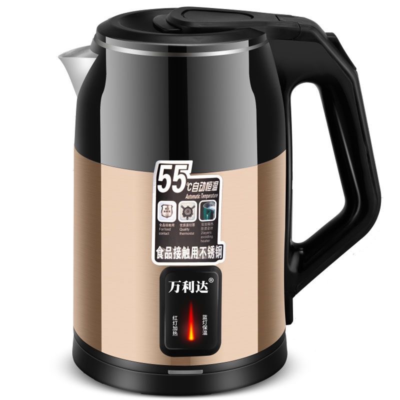 万利达3.0L自动保温电热水壶自动断电家用烧水壶双层彩钢电水壶