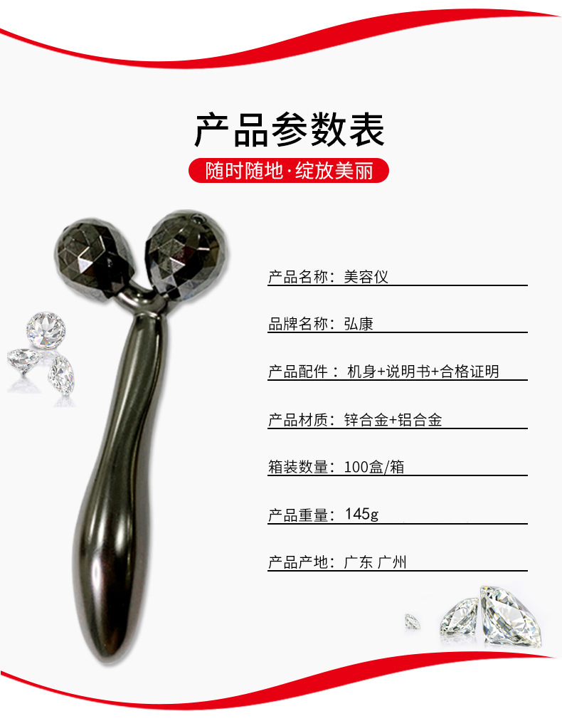 美容棒面部廋脸3d按摩仪滚轮滚轮仪美妆工具黄金棒跨境锌合金厂家