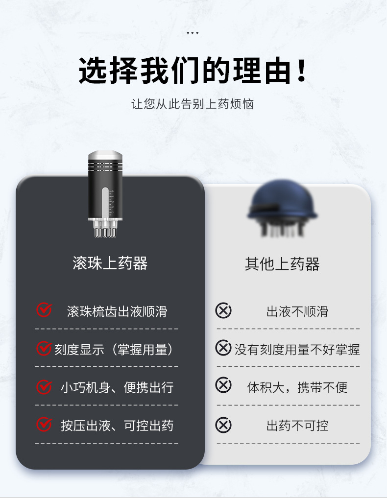 新款走珠金属给药器头部护理头皮上药器家用头疗迷你导液按摩梳
