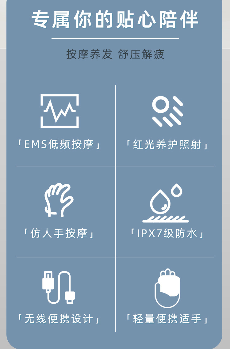 EMS头部按摩仪低频脉冲头部按摩器充电头皮按摩仪脉冲头部按摩爪