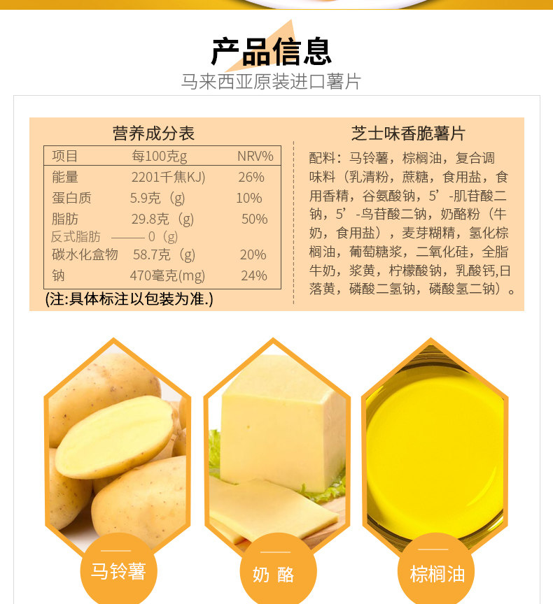 马来西亚进口脆滋奶酪香脆薯片膨化休闲零食150g(多种口味可选)