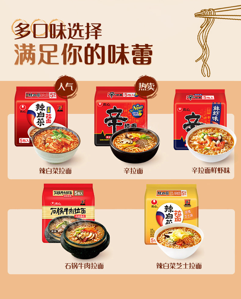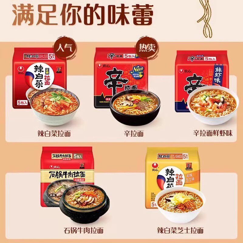 农心辛拉面韩式辣白菜拌面方便面速食炸酱面农心拉面袋装韩国泡面