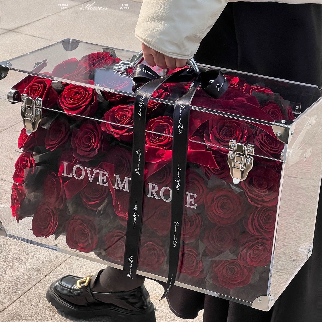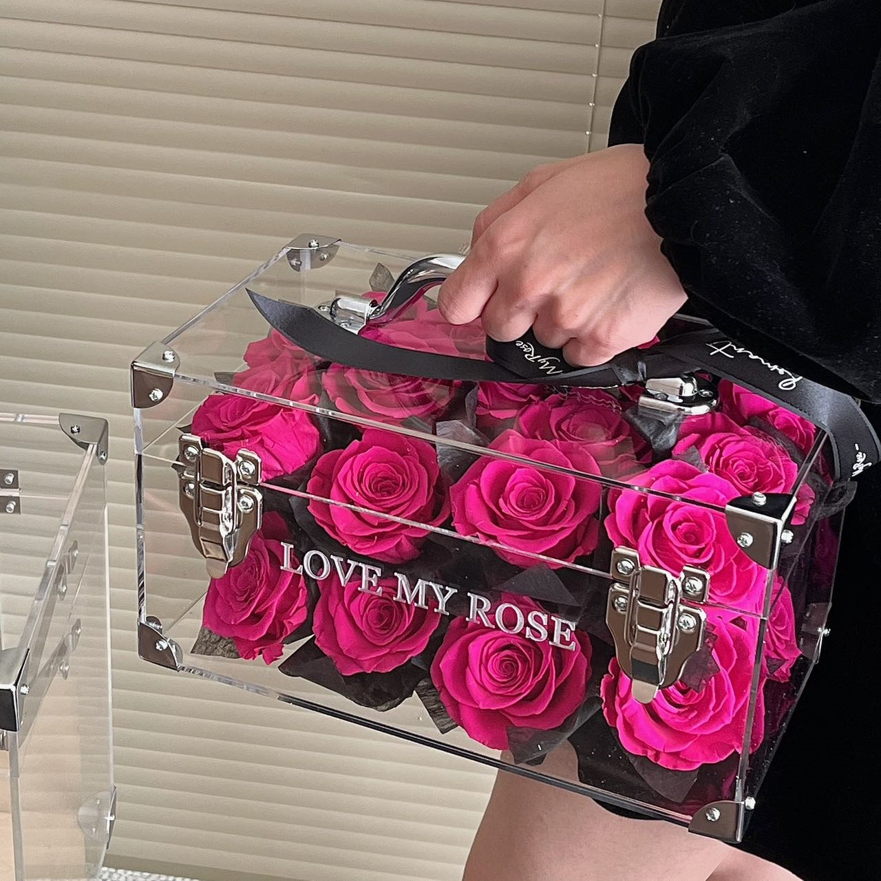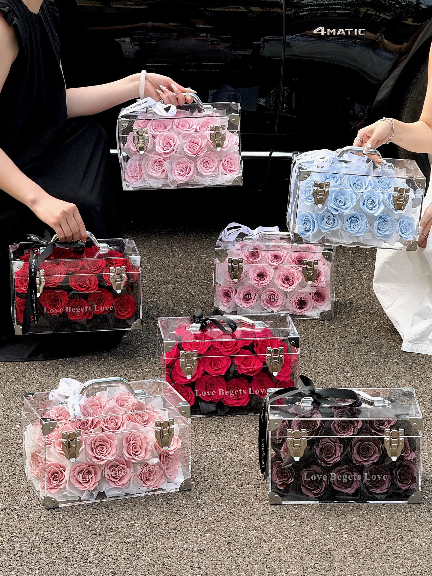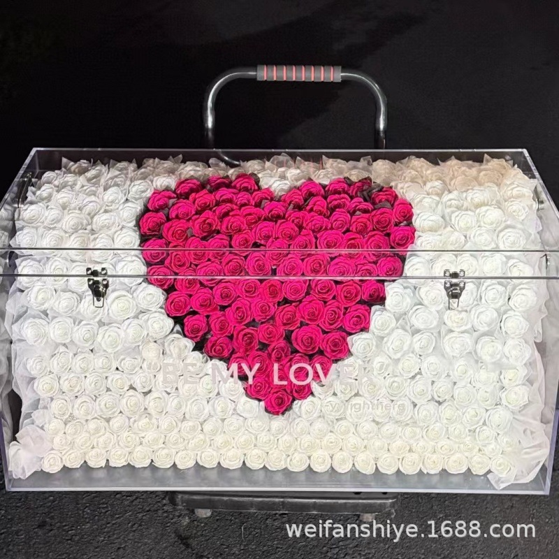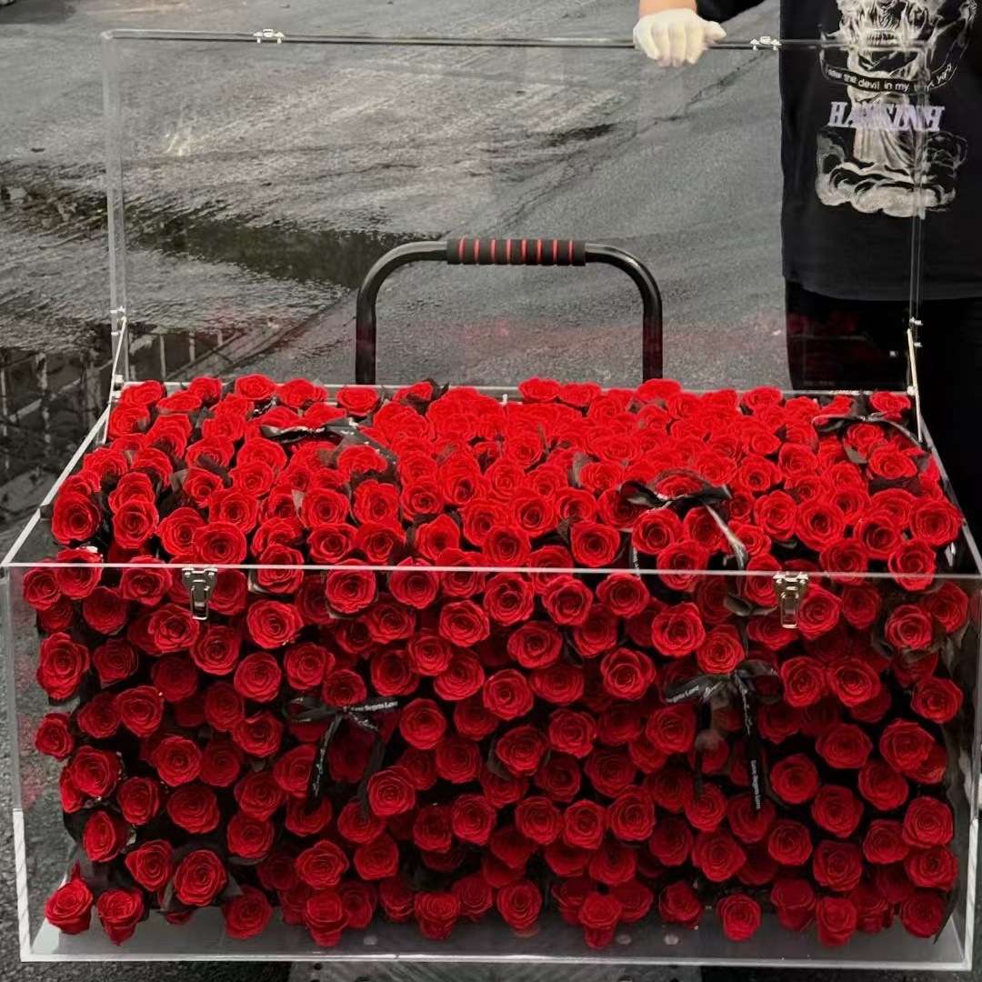 厂家直发玫瑰永生花巨型行李箱高级感花盒送女友闺蜜生日礼物批发