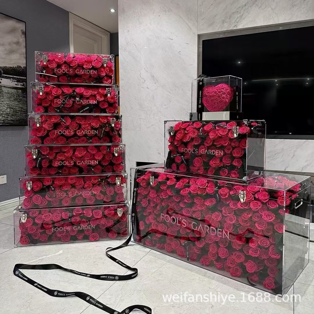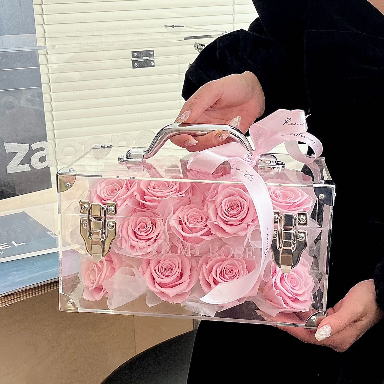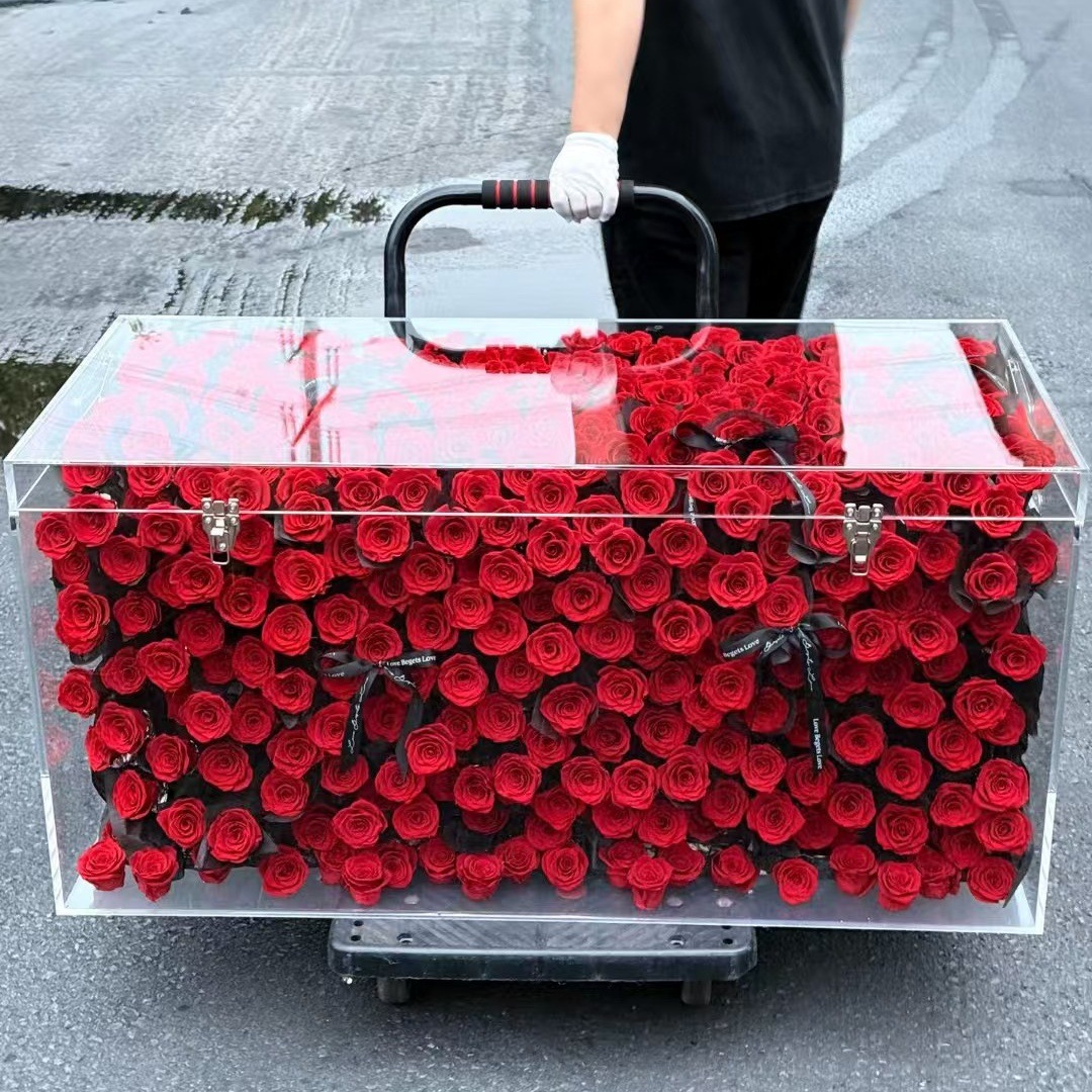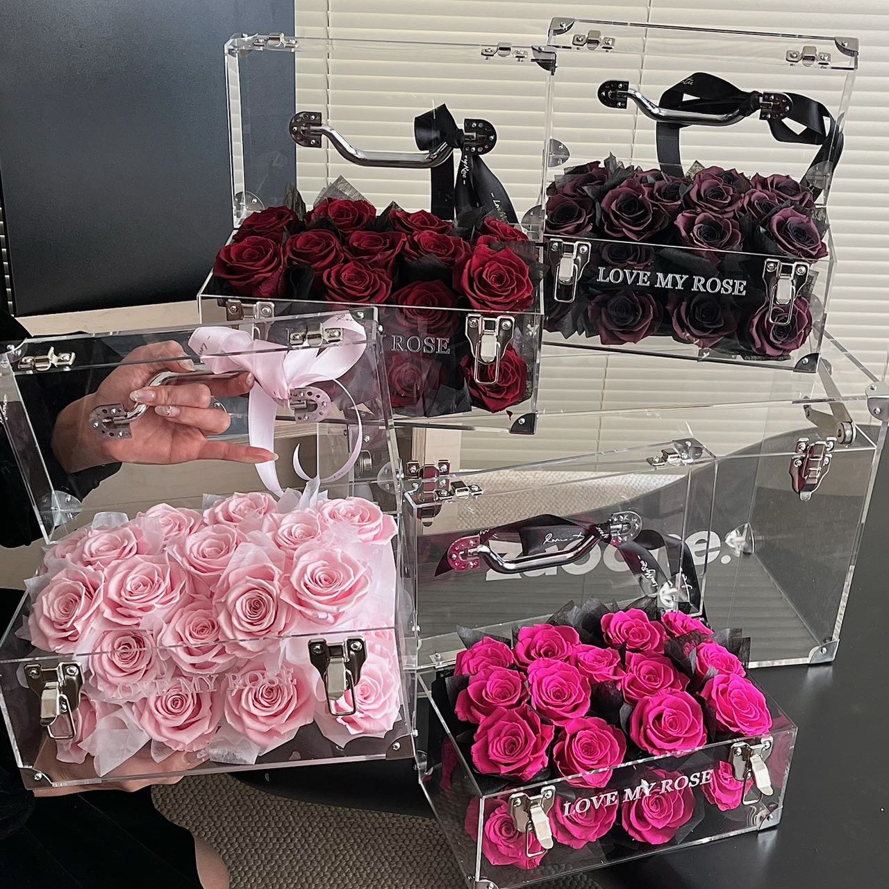 厂家直发玫瑰永生花巨型行李箱高级感花盒送女友闺蜜生日礼物批发