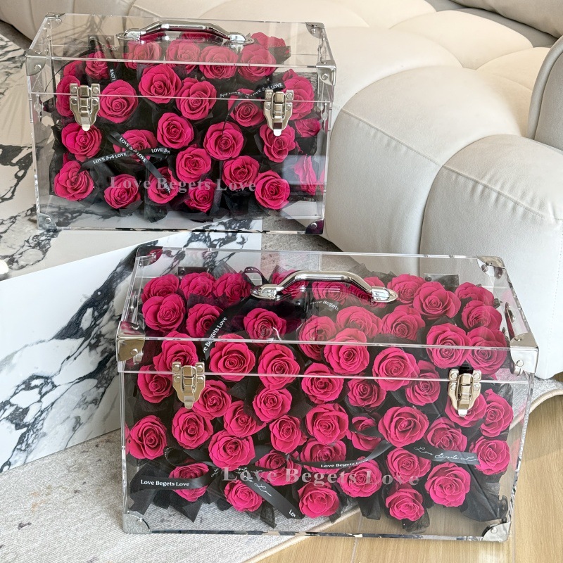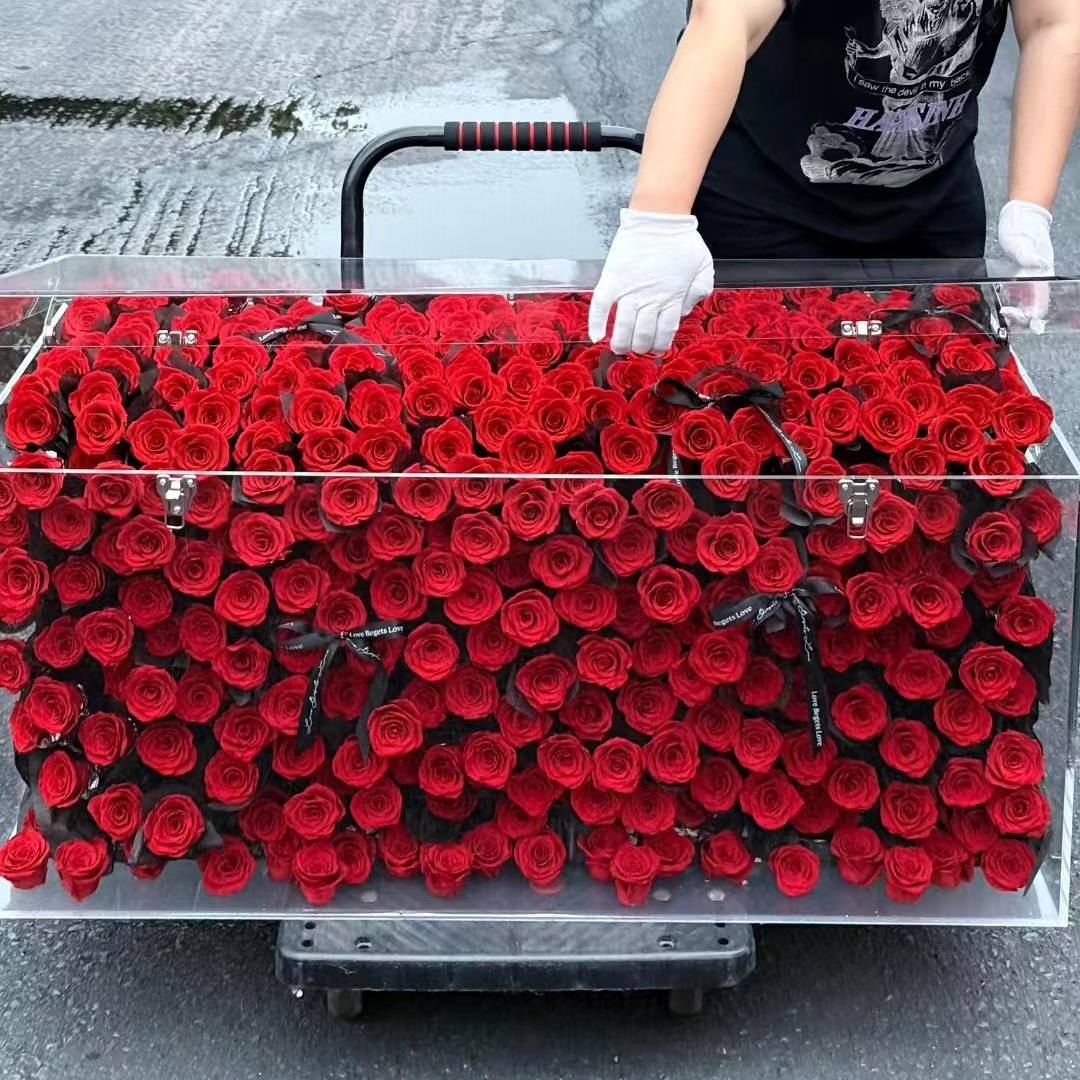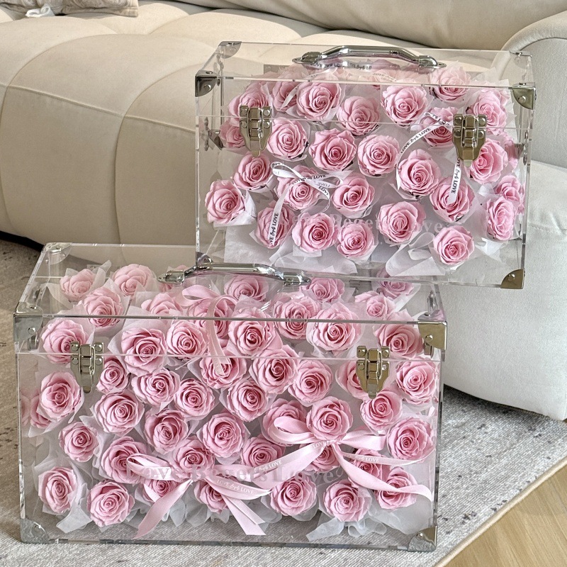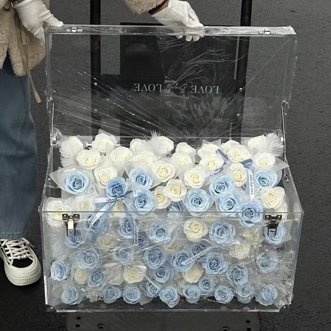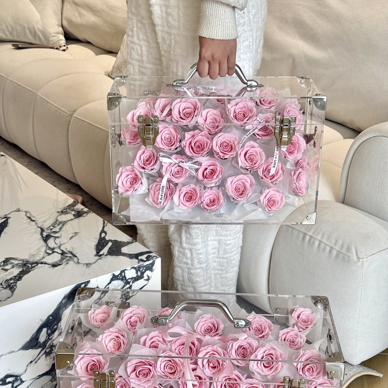 厂家直发玫瑰永生花巨型行李箱高级感花盒送女友闺蜜生日礼物批发