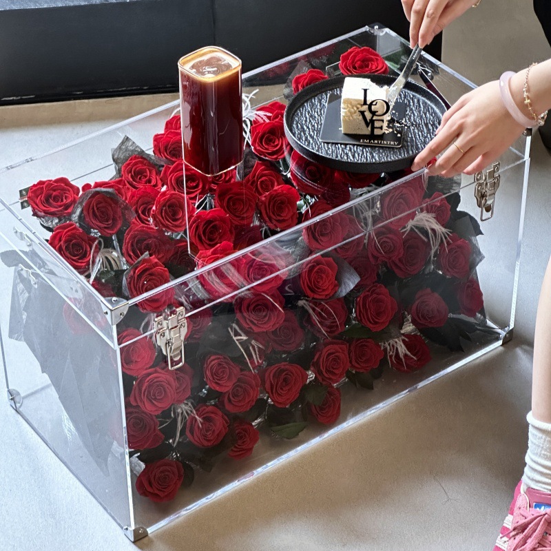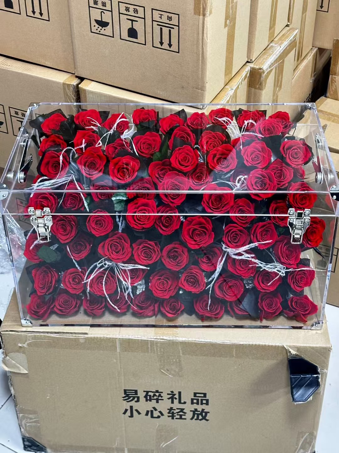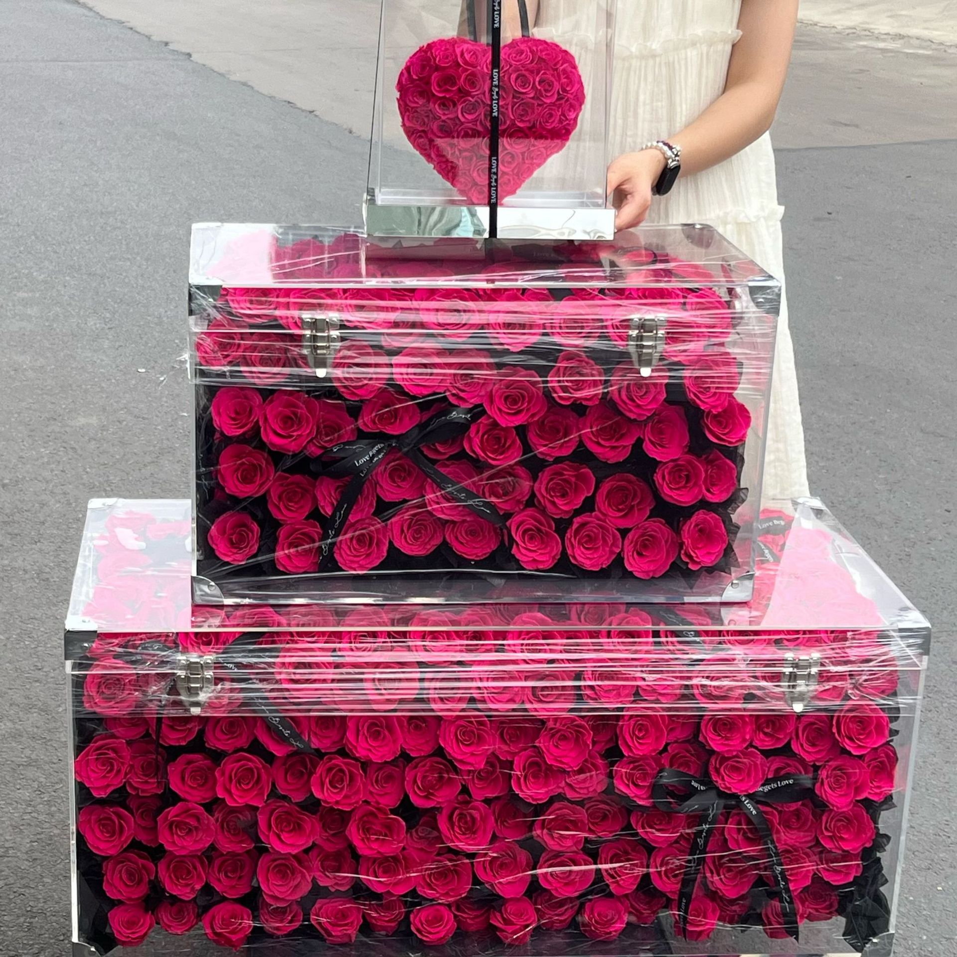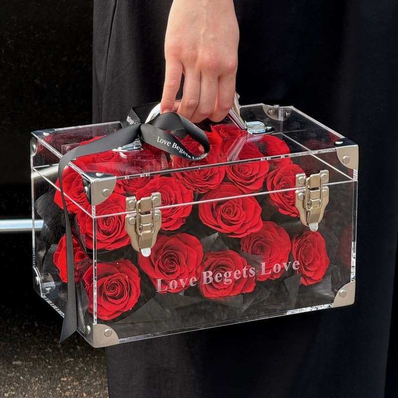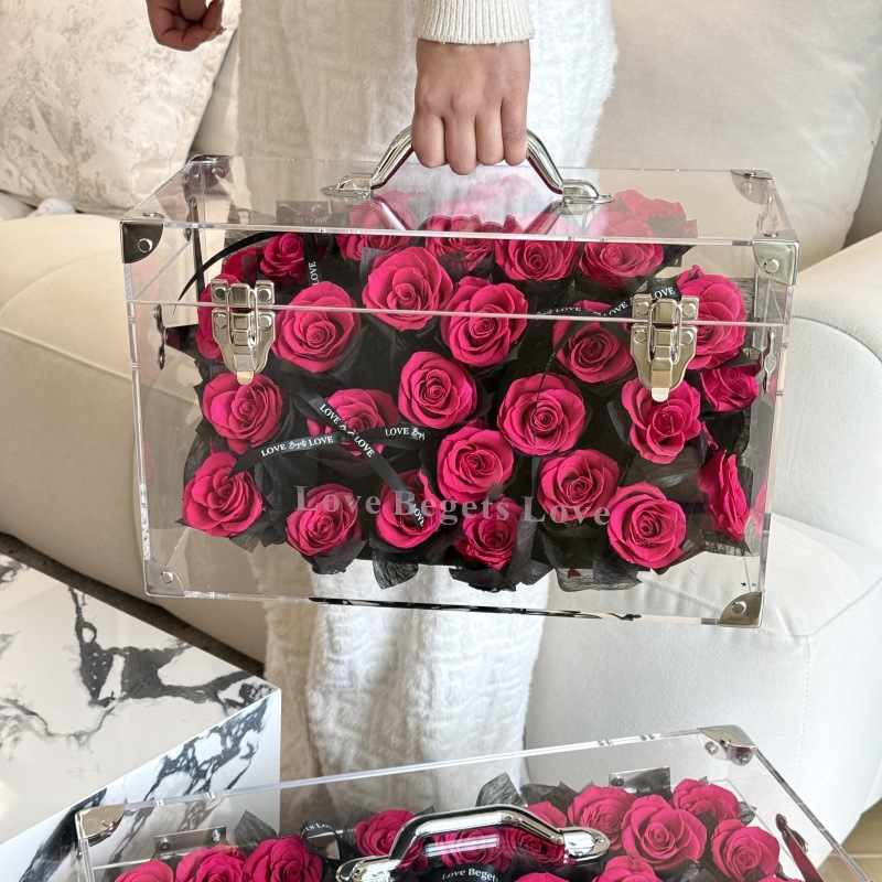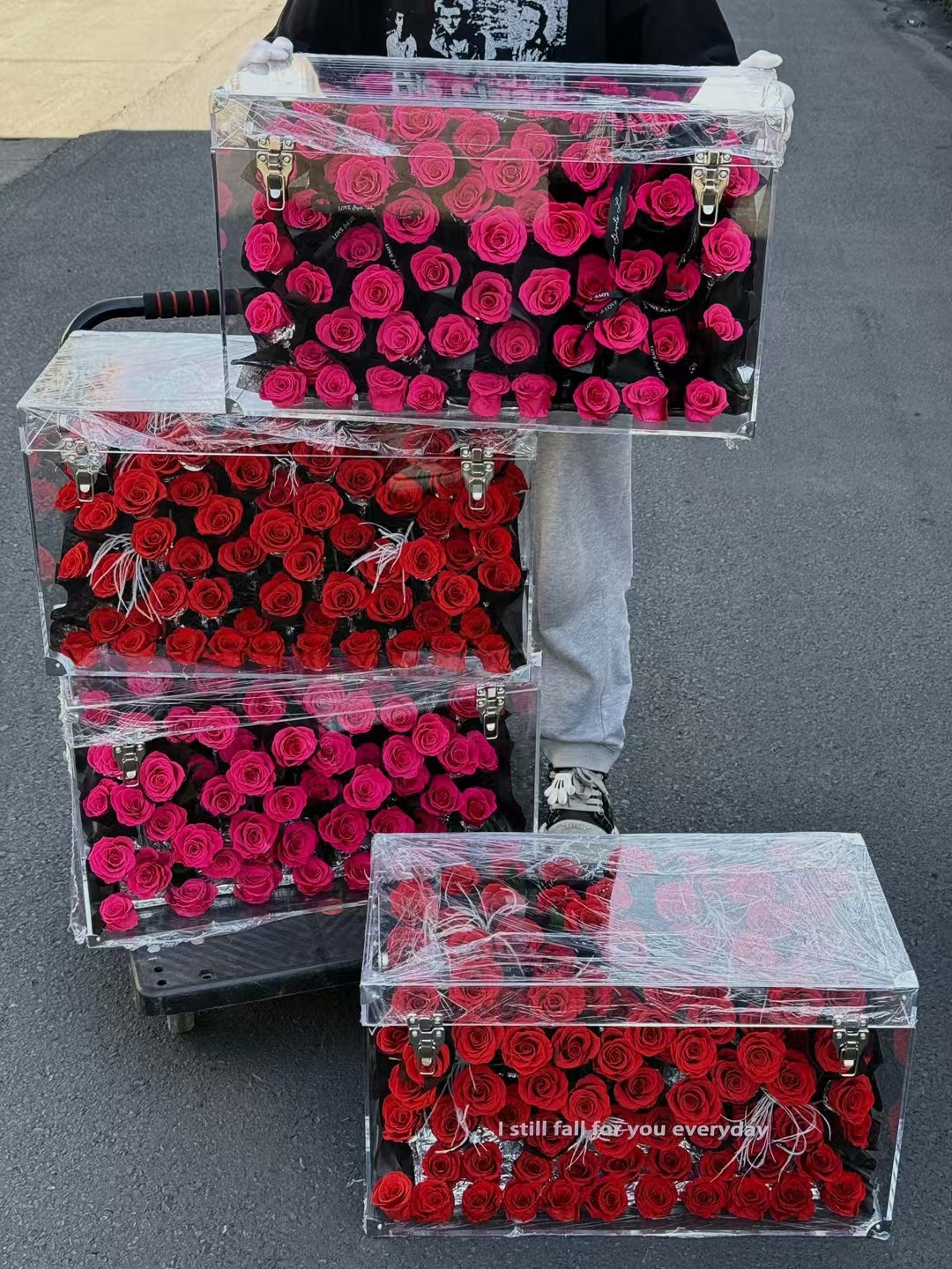 厂家直发玫瑰永生花巨型行李箱高级感花盒送女友闺蜜生日礼物批发