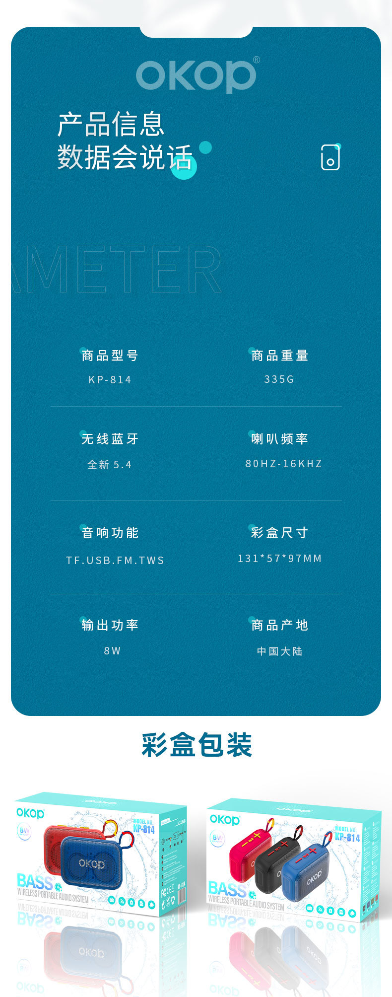 814蓝牙音响挂绳户外便携跨境爆款桌面小音箱插卡低音炮超长续航