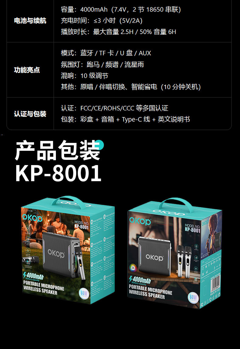 8001广场舞音箱大音量跨境户外卡拉OK手提蓝牙音响麦克风超长续航