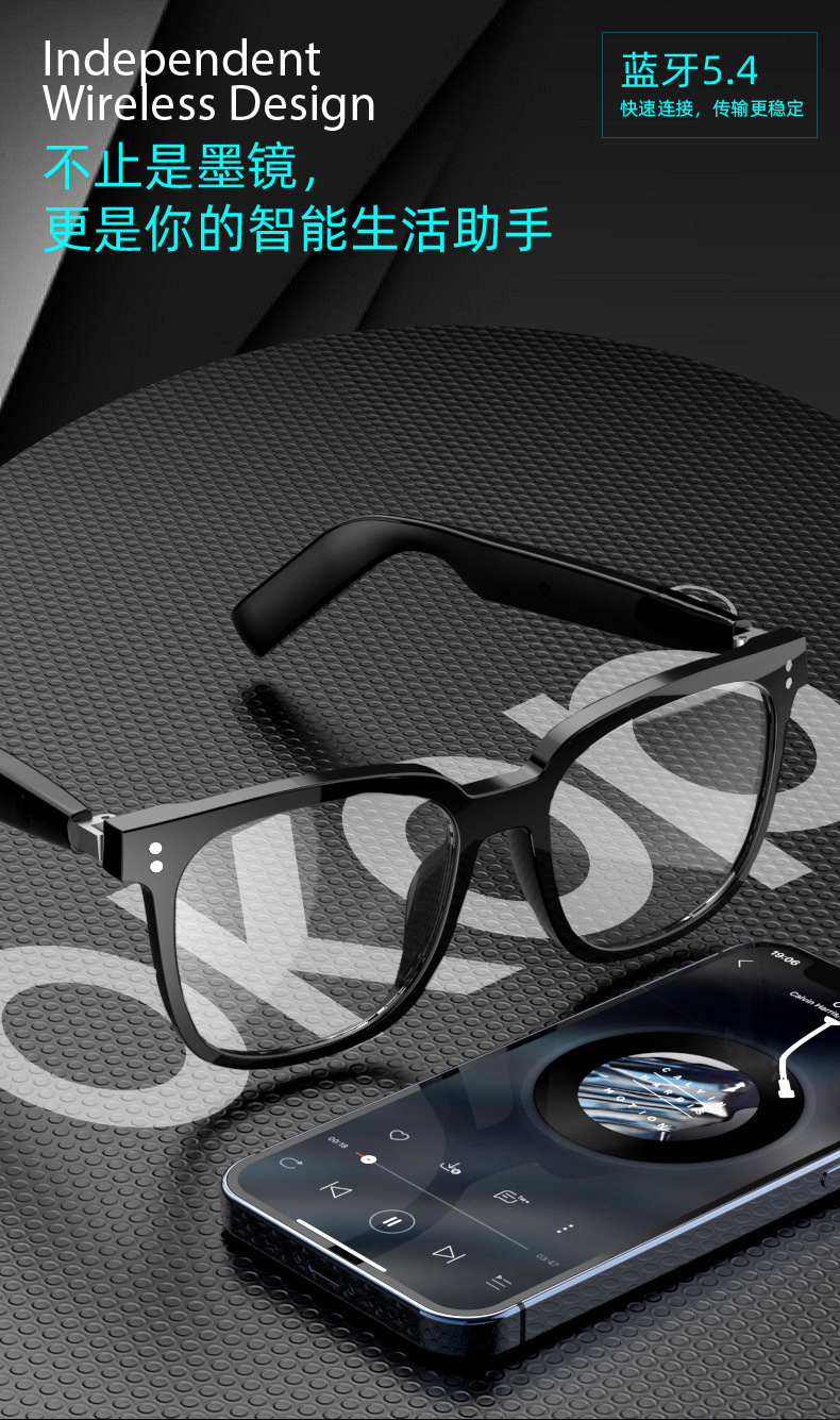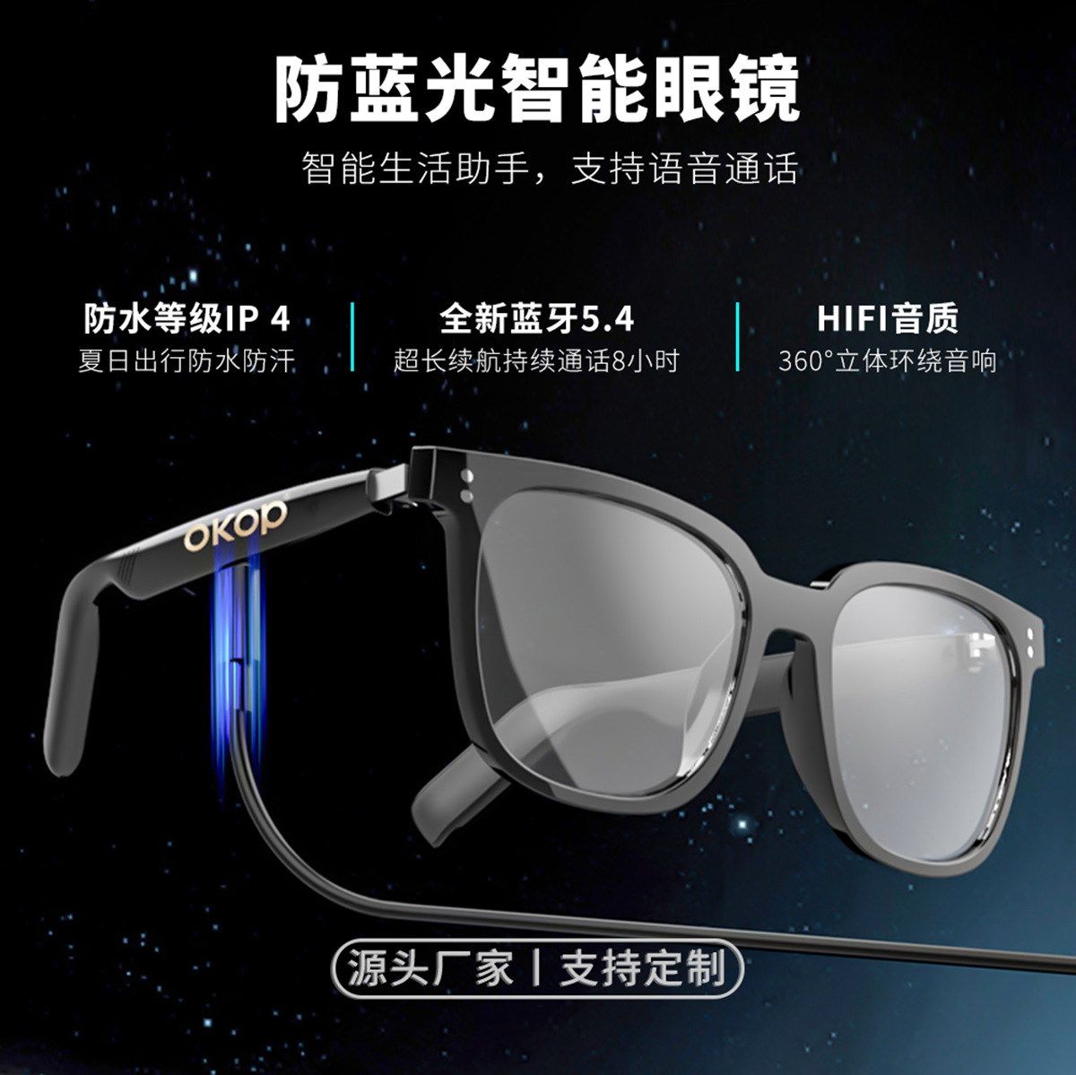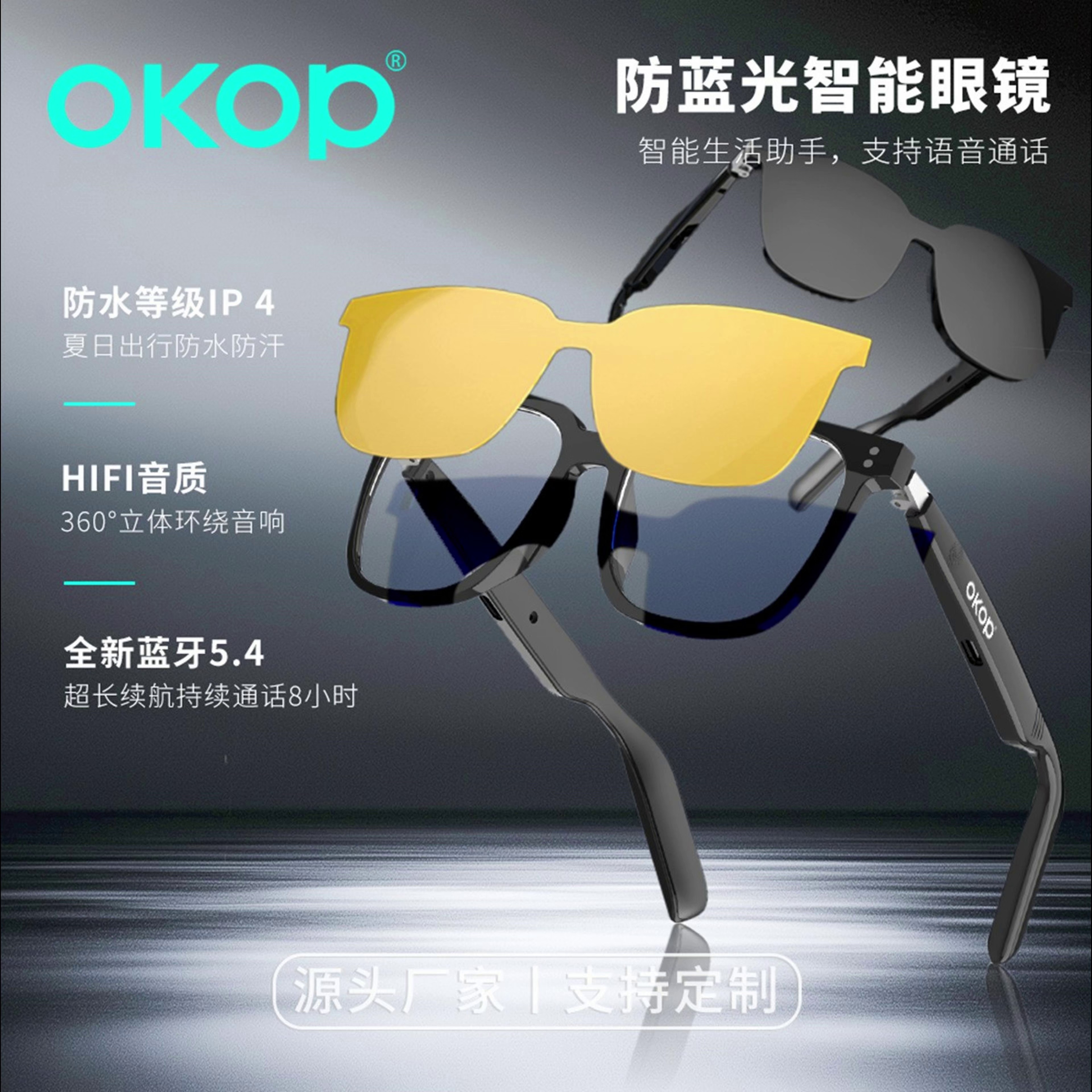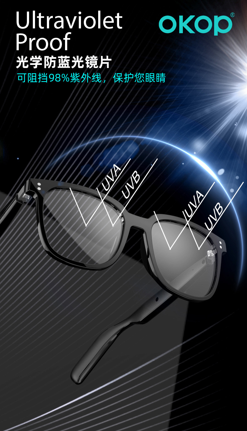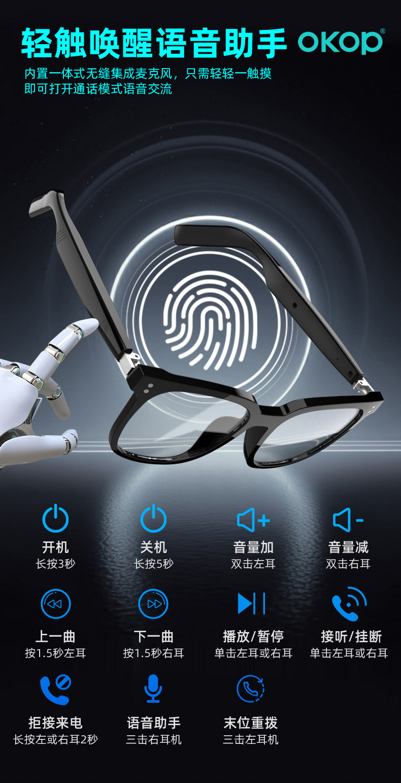 Y102智能眼镜跨境日夜两用空气传导防水防汗一镜三用语音助手触控