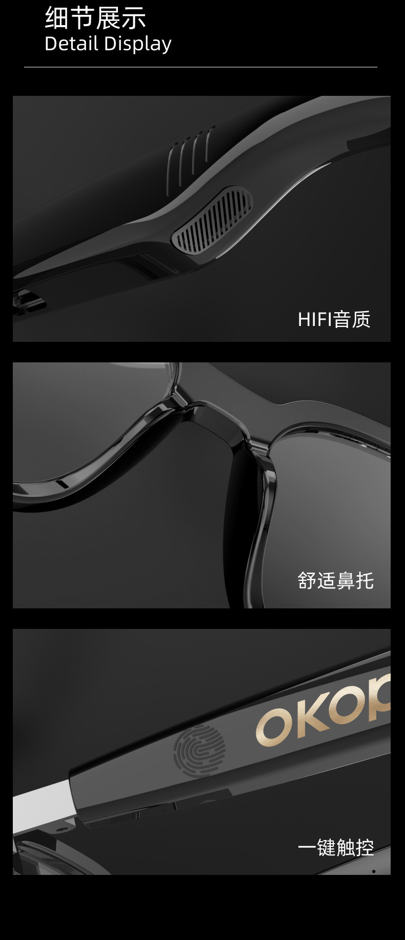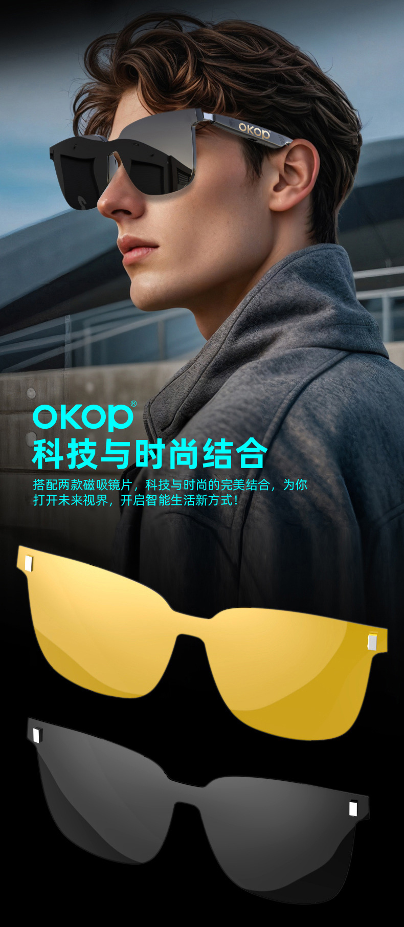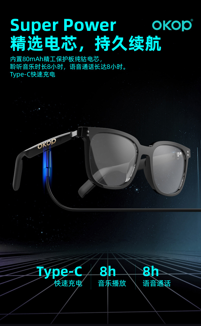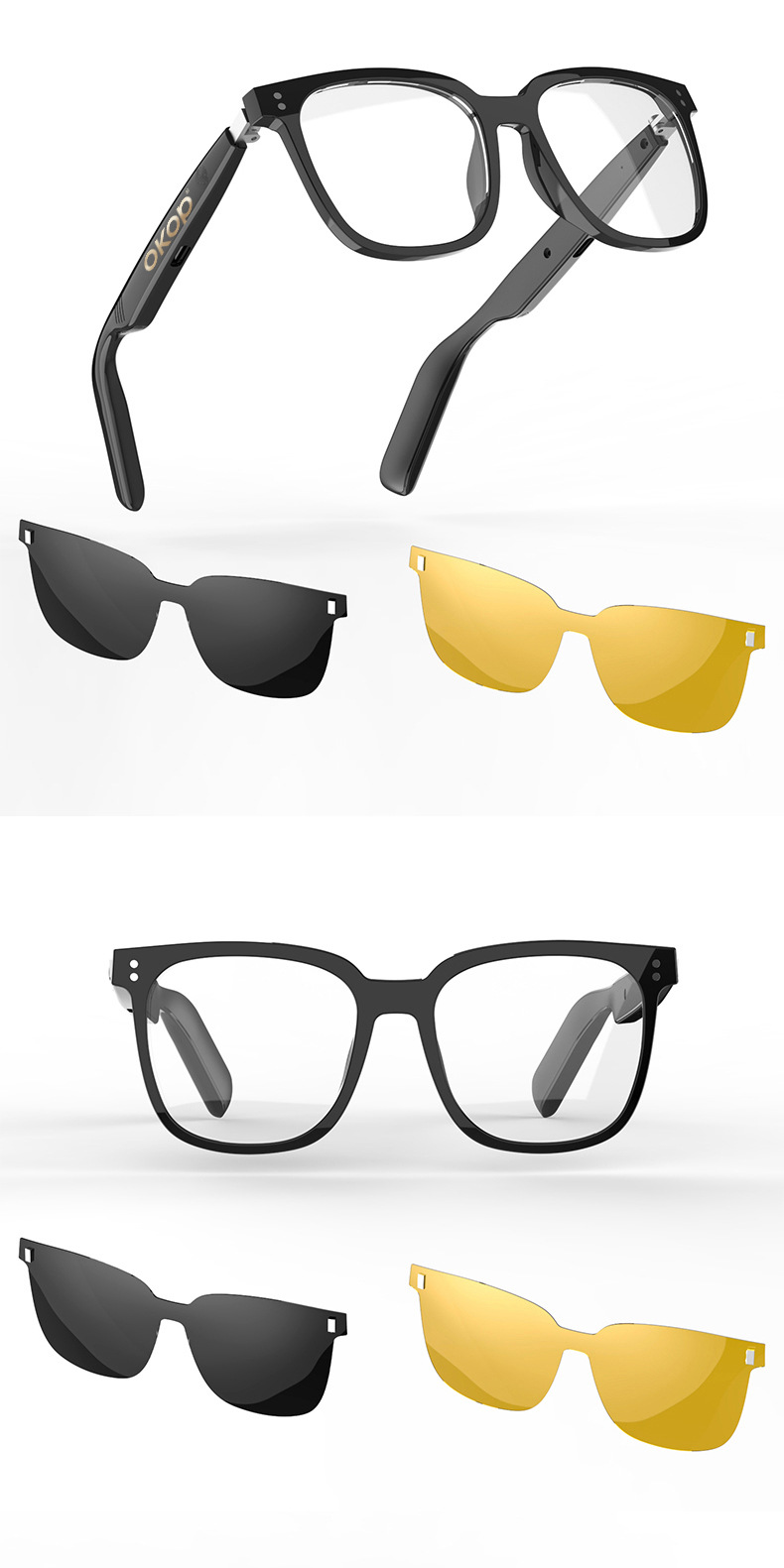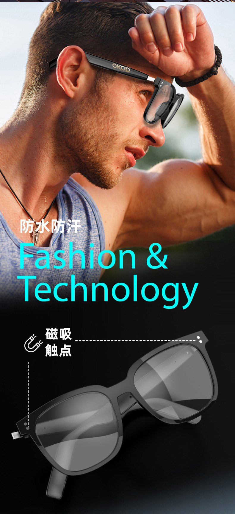 Y102智能眼镜跨境日夜两用空气传导防水防汗一镜三用语音助手触控
