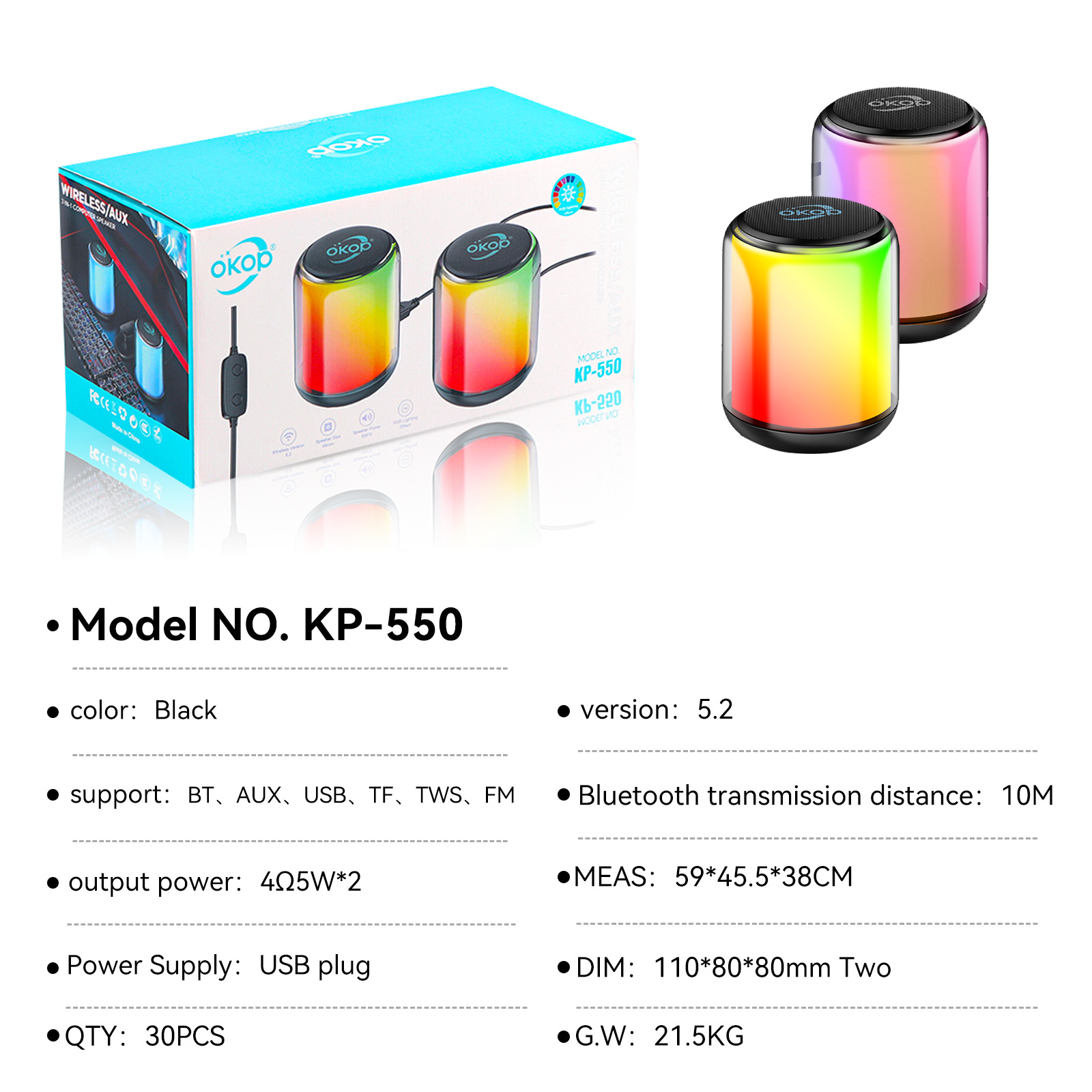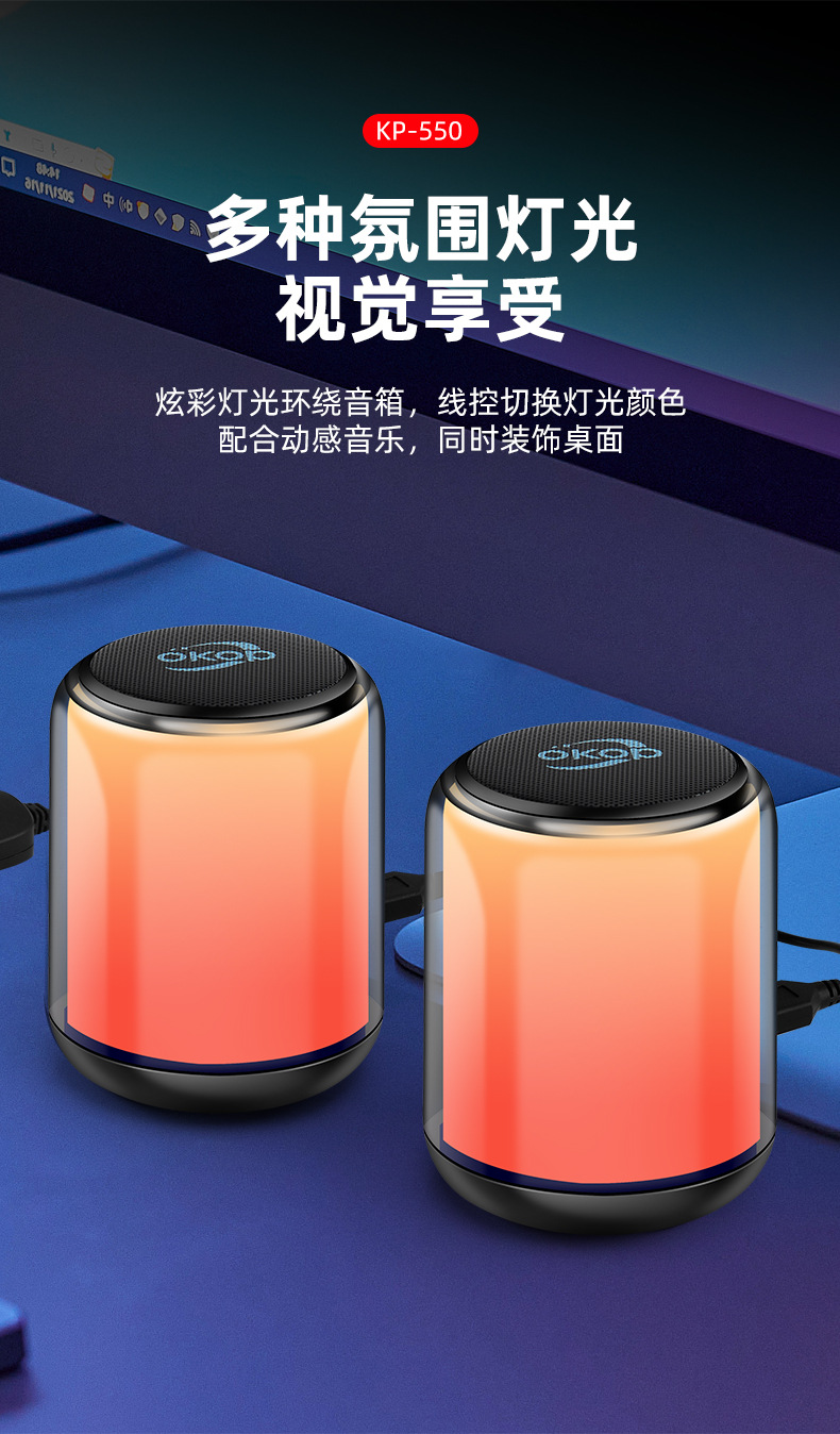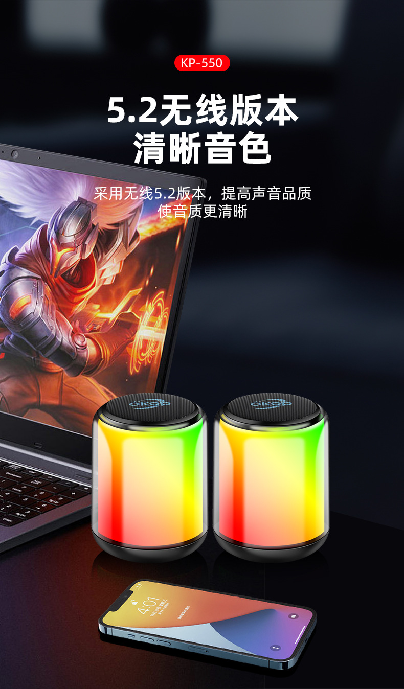 550蓝牙音响RGB氛围灯跨境爆款电脑对箱低延迟重低音桌面小音箱
