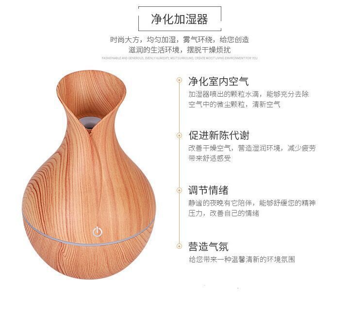 新款空气加湿器木纹香薰机迷你卧室用小型大雾量喷雾桌面静音增湿