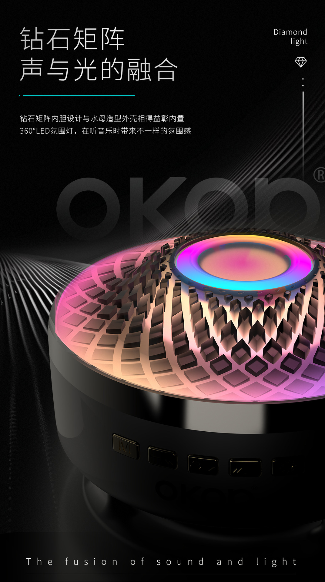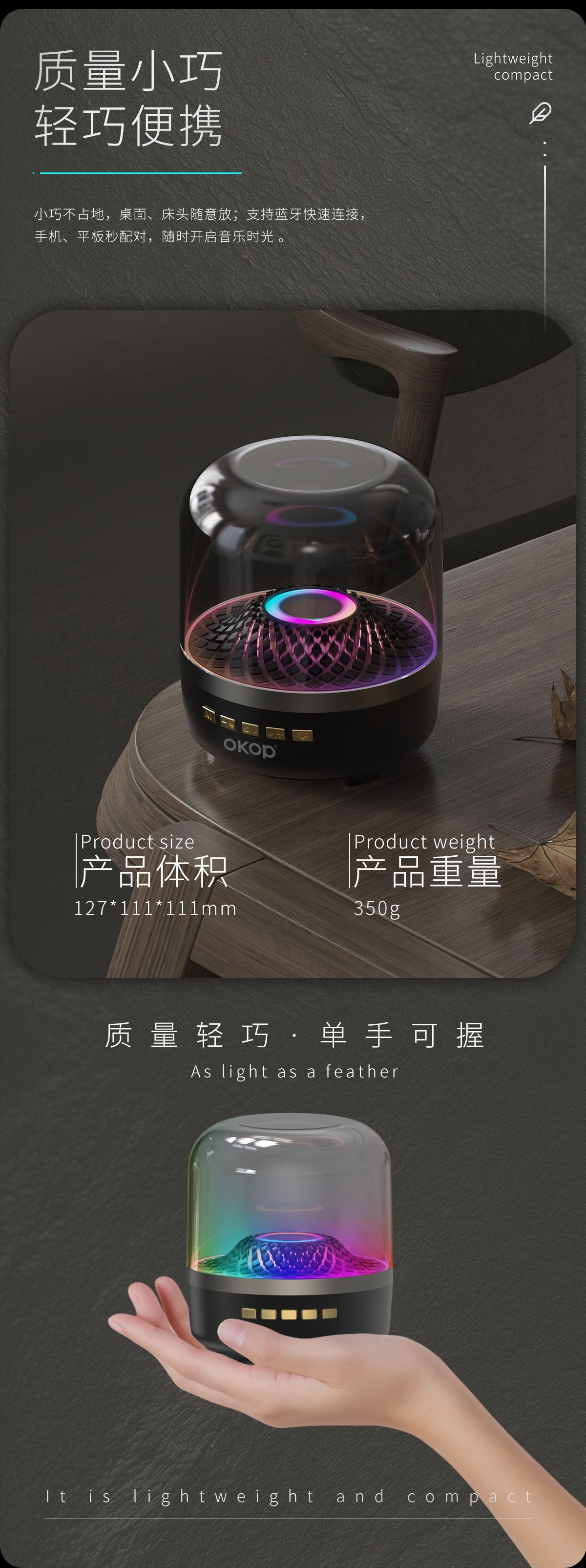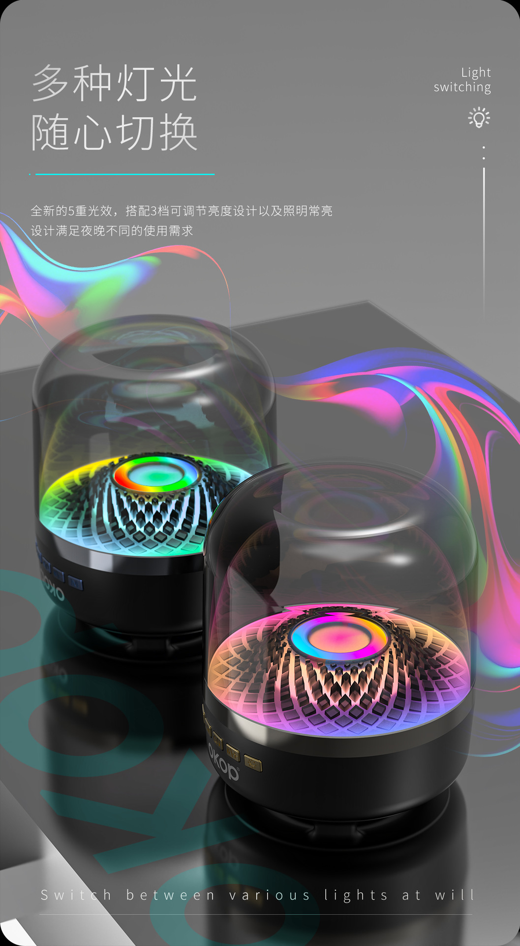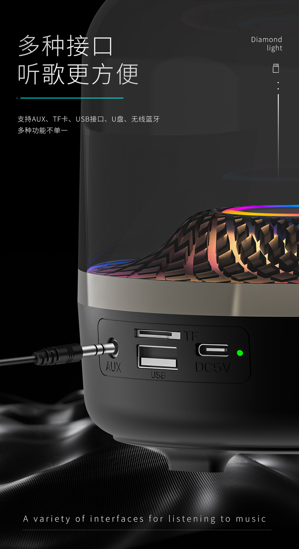 823蓝牙音响氛围琉璃灯光小巧便携跨境爆款小音箱桌面插卡长续航
