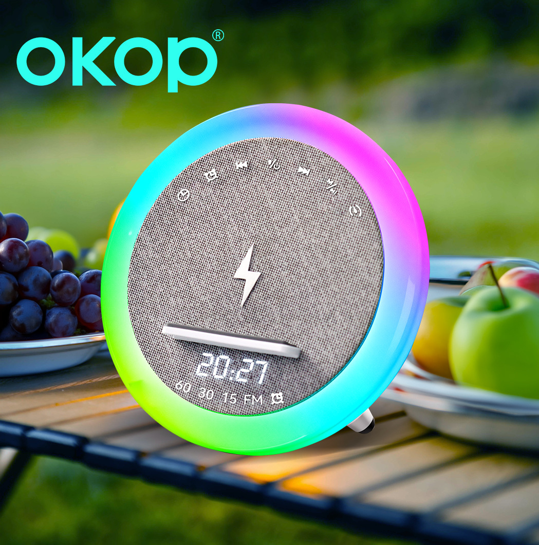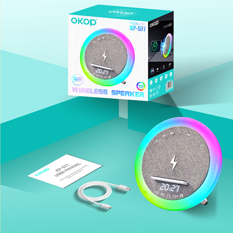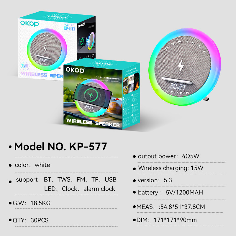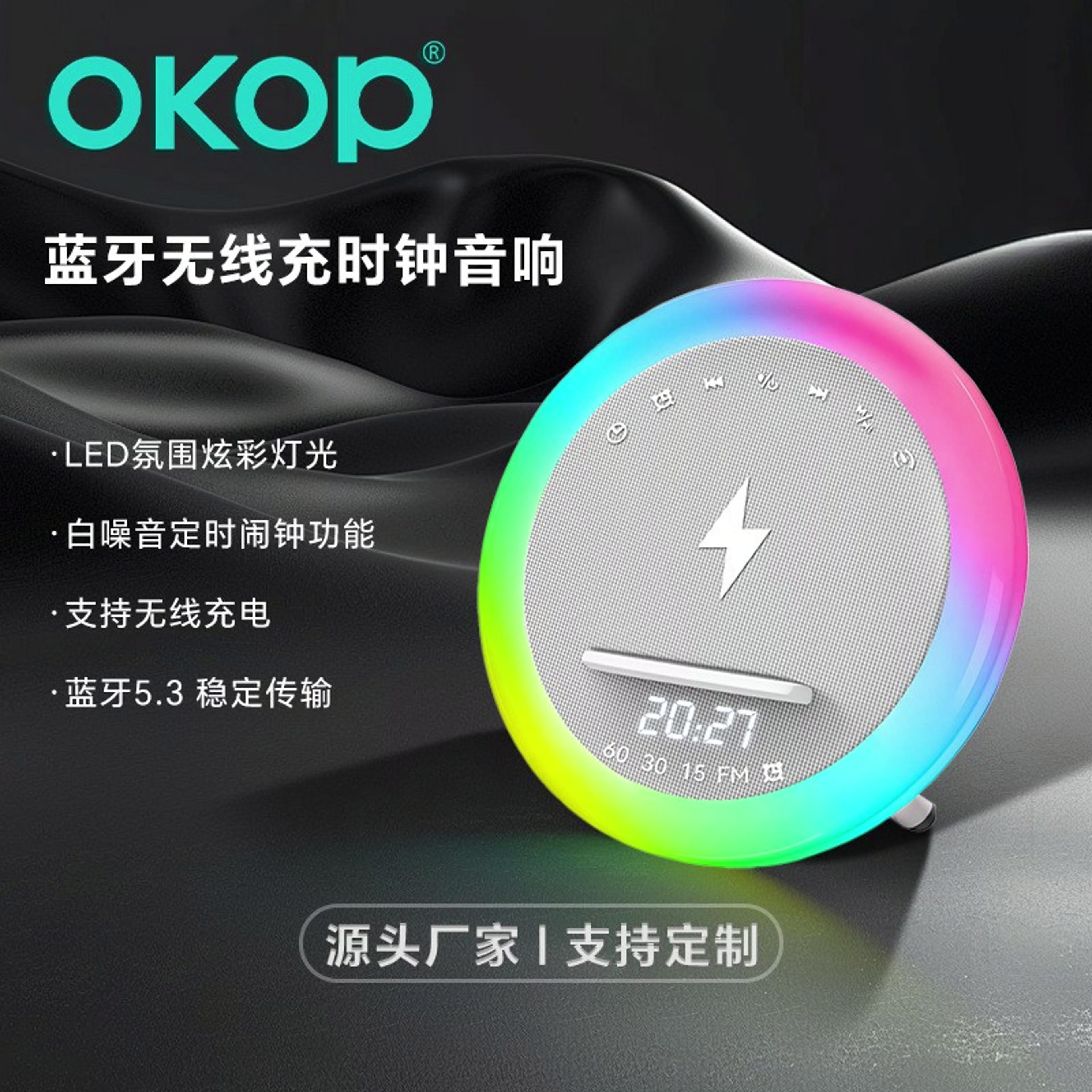 577白噪音蓝牙音响跨境LED彩灯时钟闹钟定时床头无线充桌面小音箱