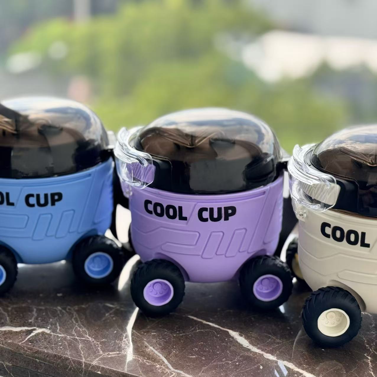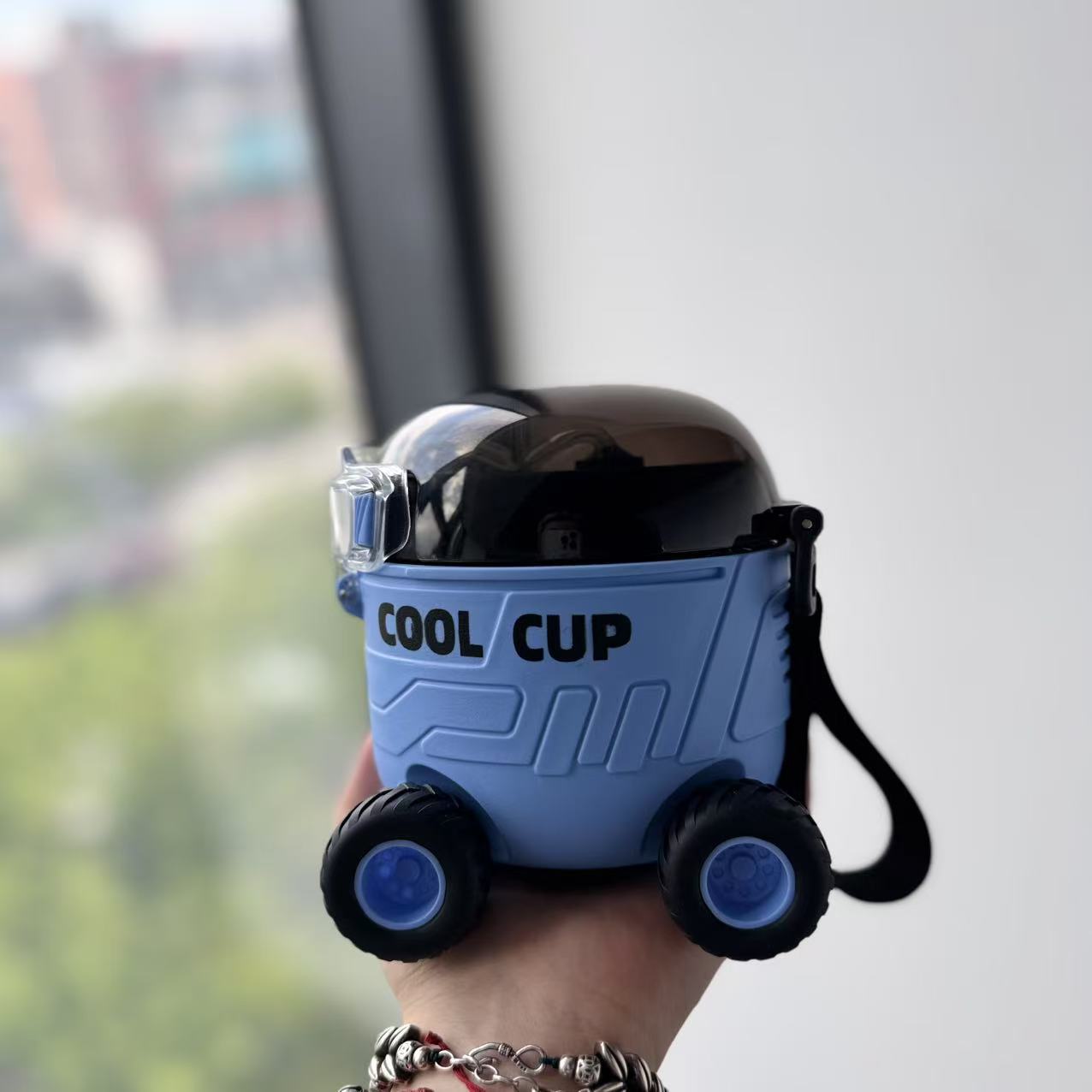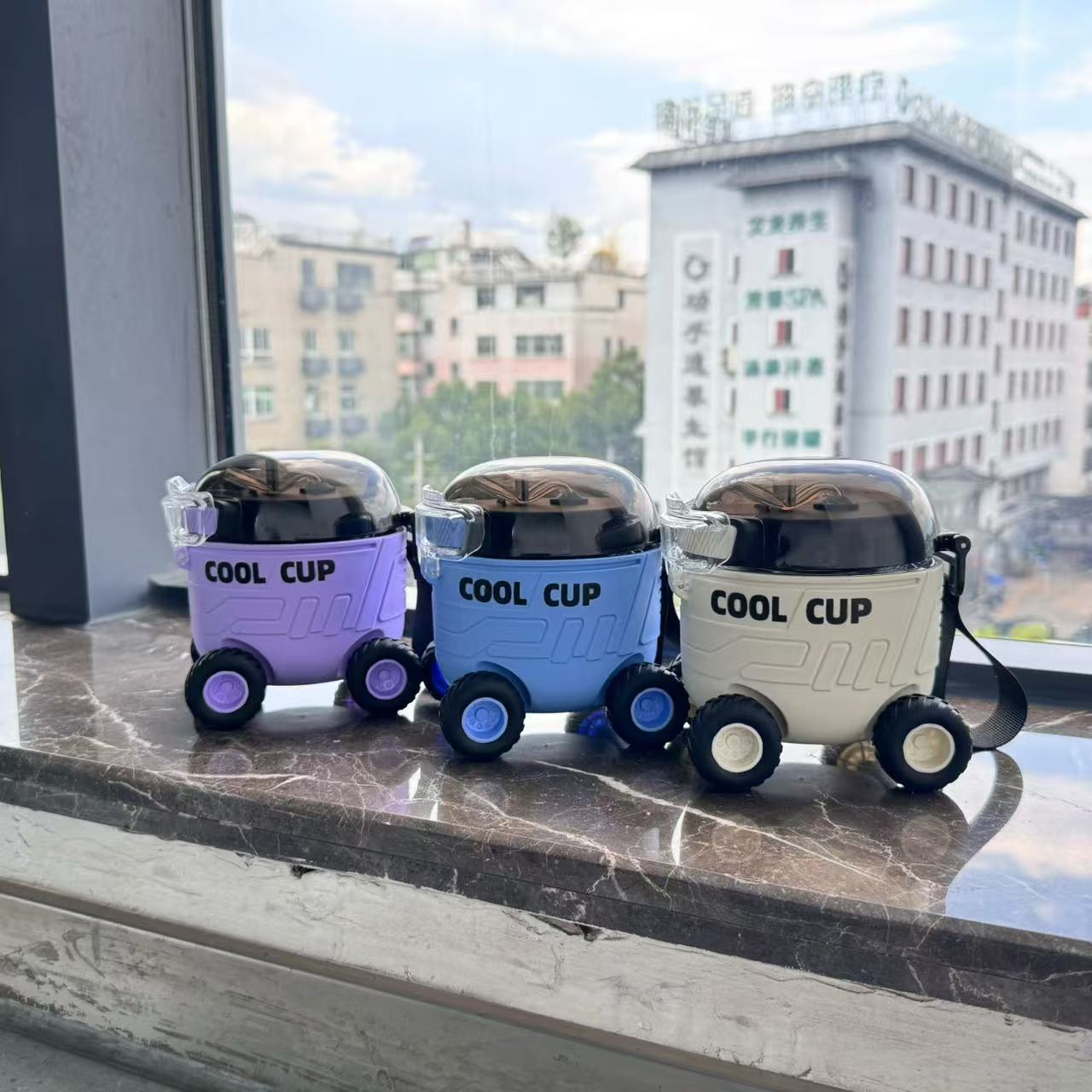 新款网红卡通趣味火星车塑料杯户外便携弹跳塑料吸管水杯