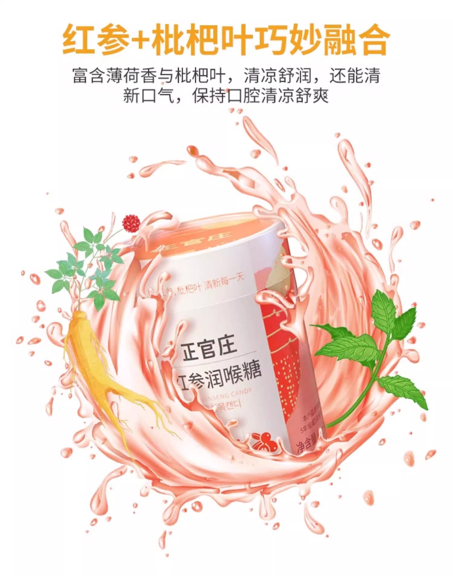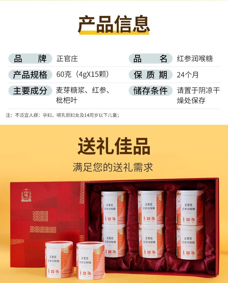 韩国正官庄红参润喉糖60g薄荷香枇杷叶元气小糖果