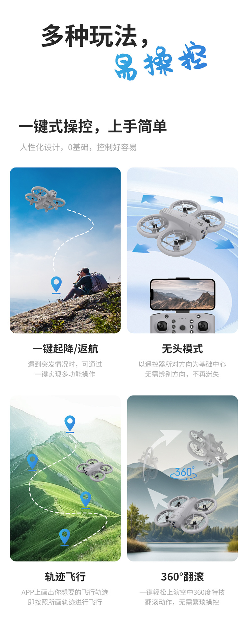 新款热销穿越机无人机光流迷你180°双摄航拍四轴飞行器避障遥控