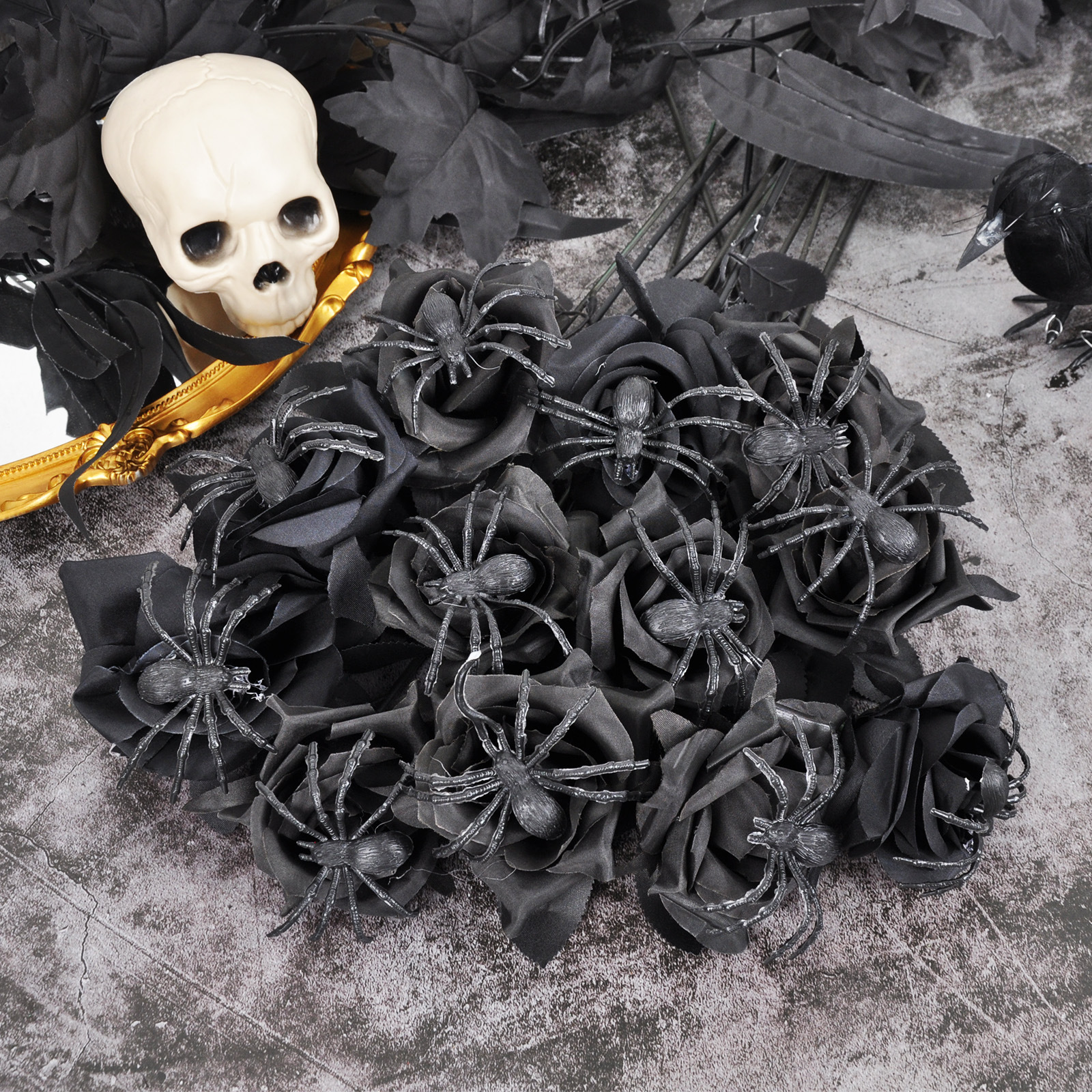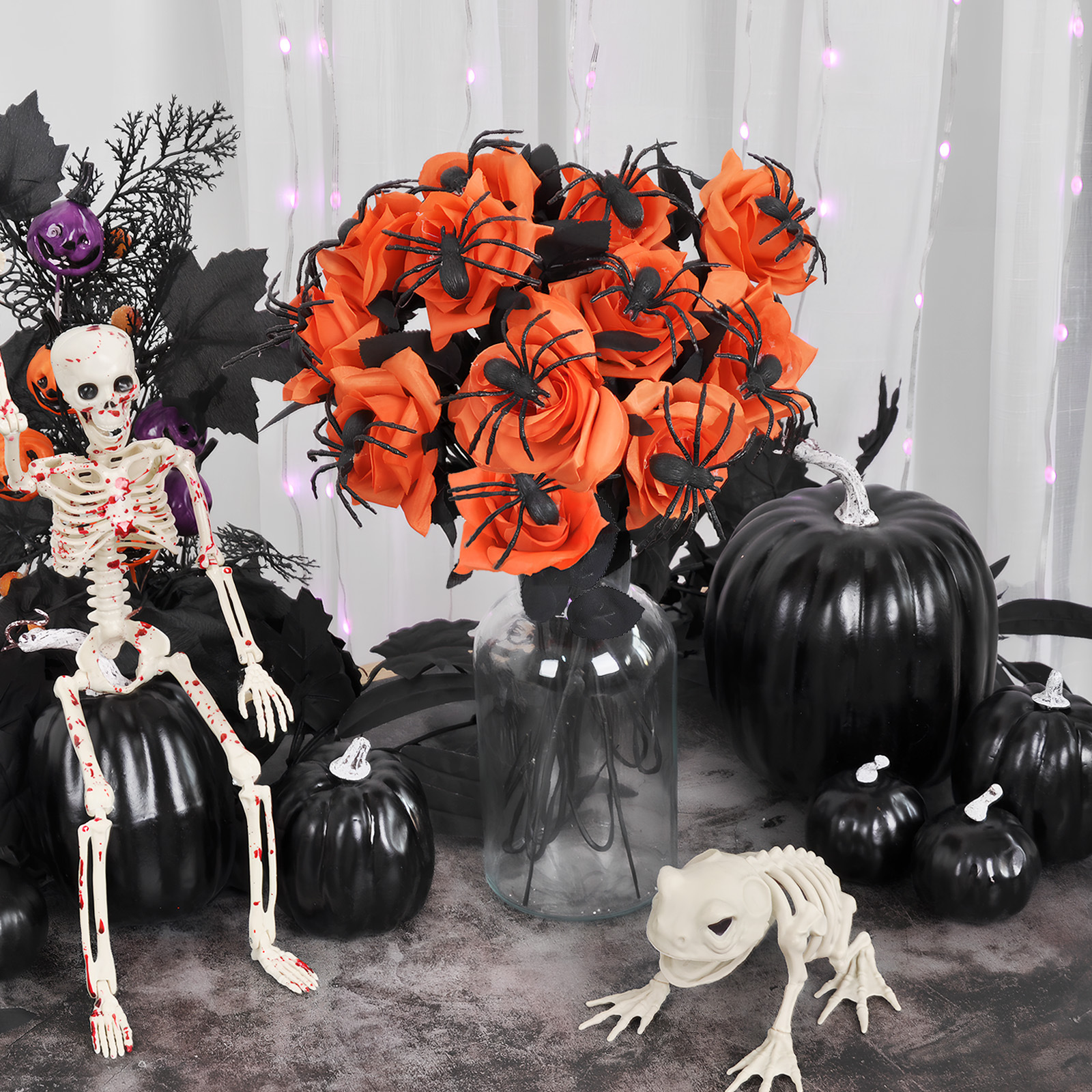 亚马逊跨境万圣节骷髅头玫瑰花万圣蜘蛛恐怖道具插枝万圣节装饰品