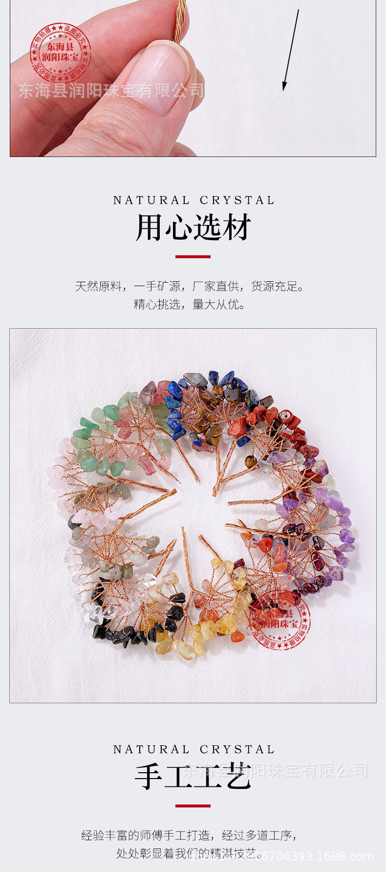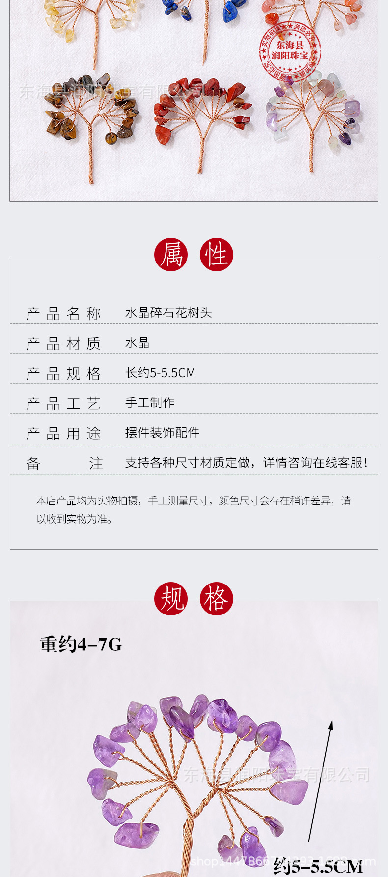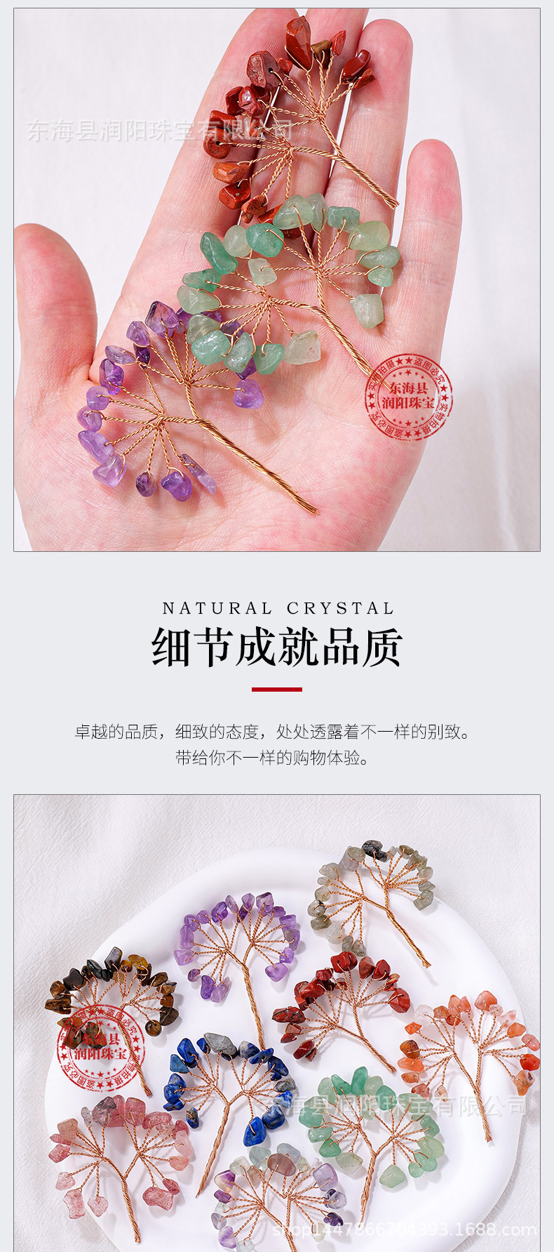 天然水晶原石碎石花树头手编粉白紫水晶发财树半成品配件饰品批发