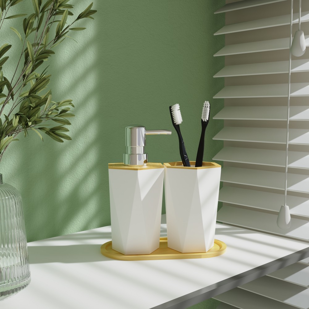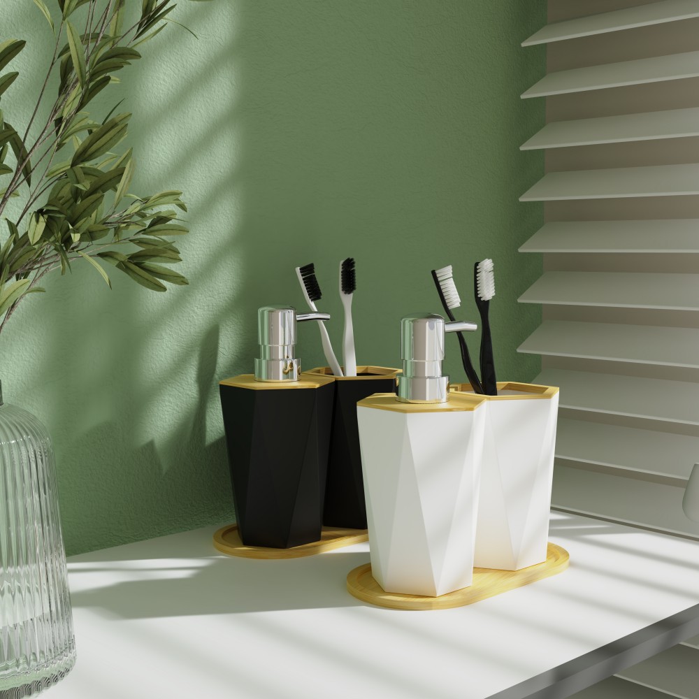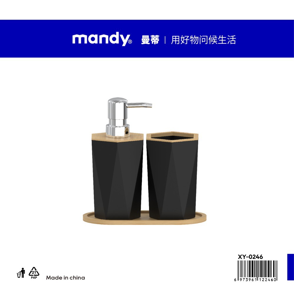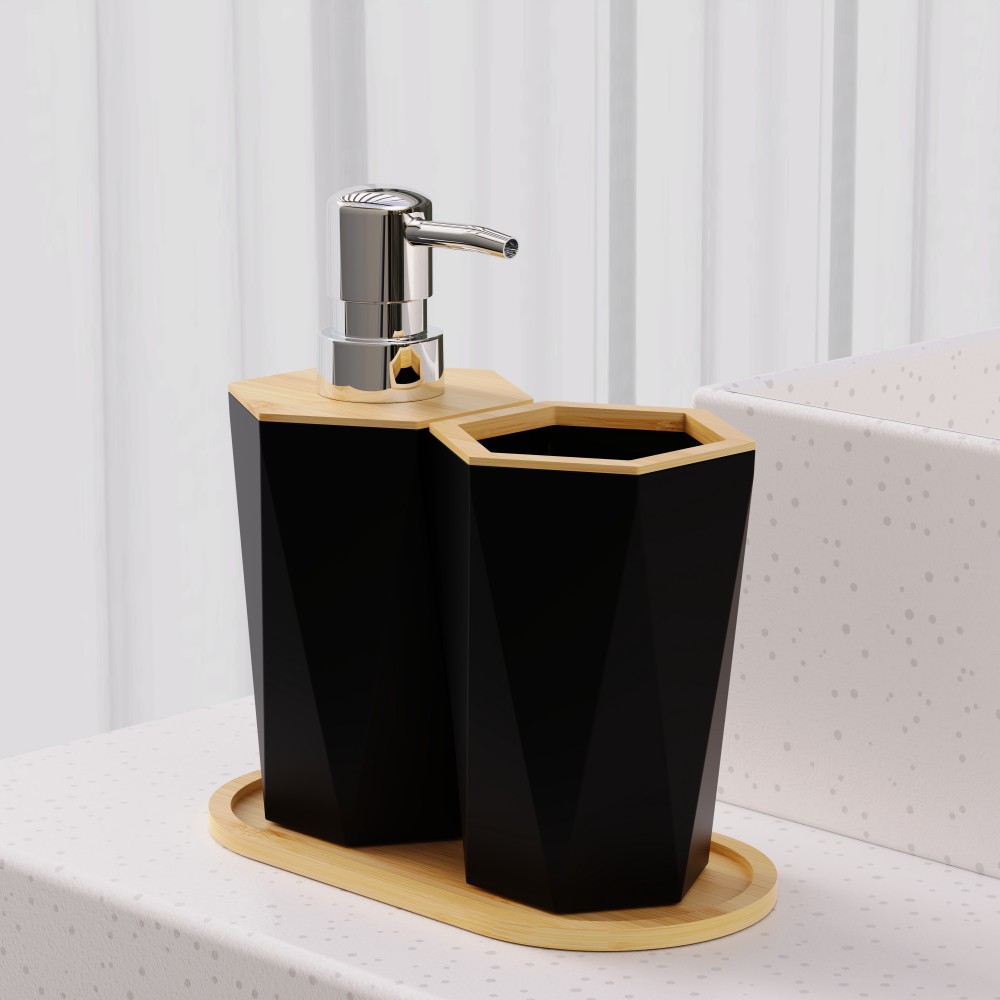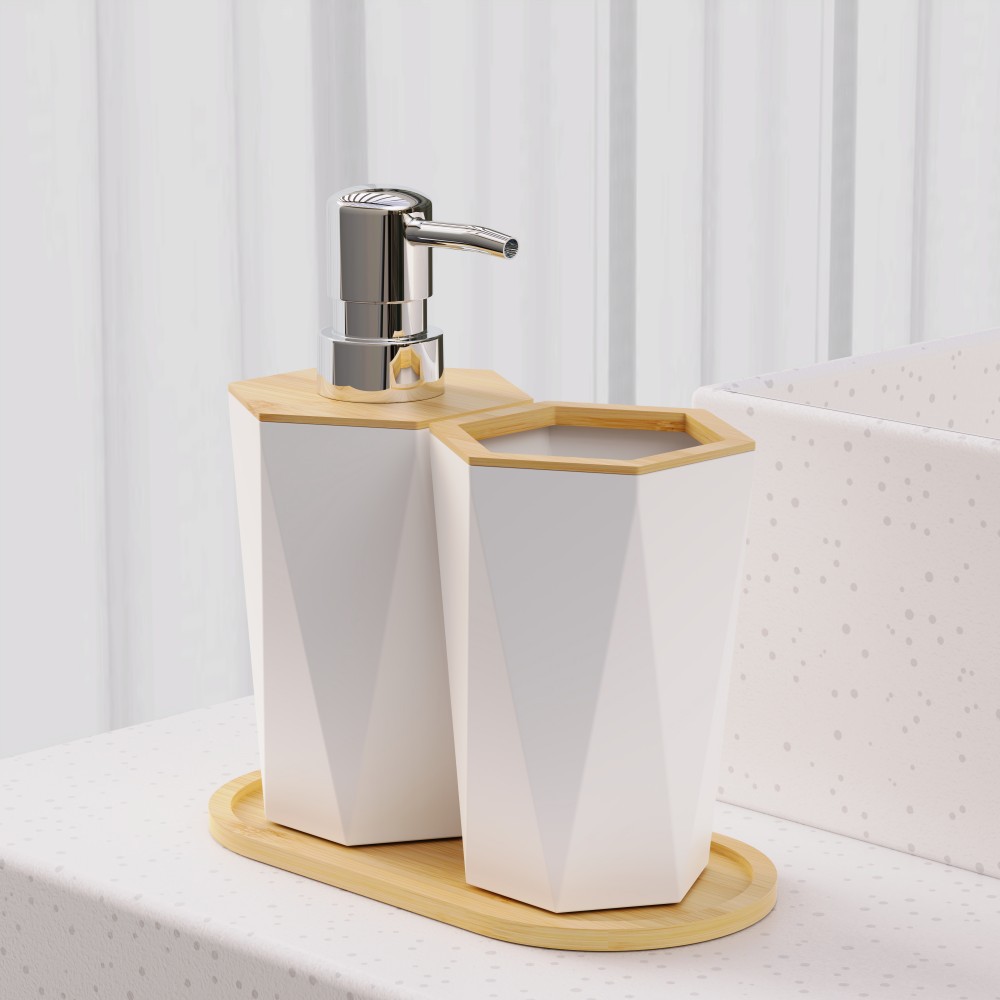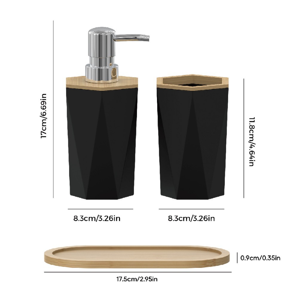 北欧卫浴三件套 厂家直销细条纹竹配灰色三件套乳液瓶牙刷杯皂盒