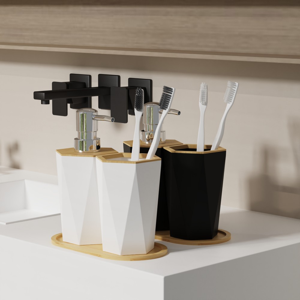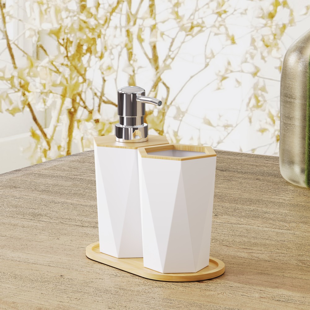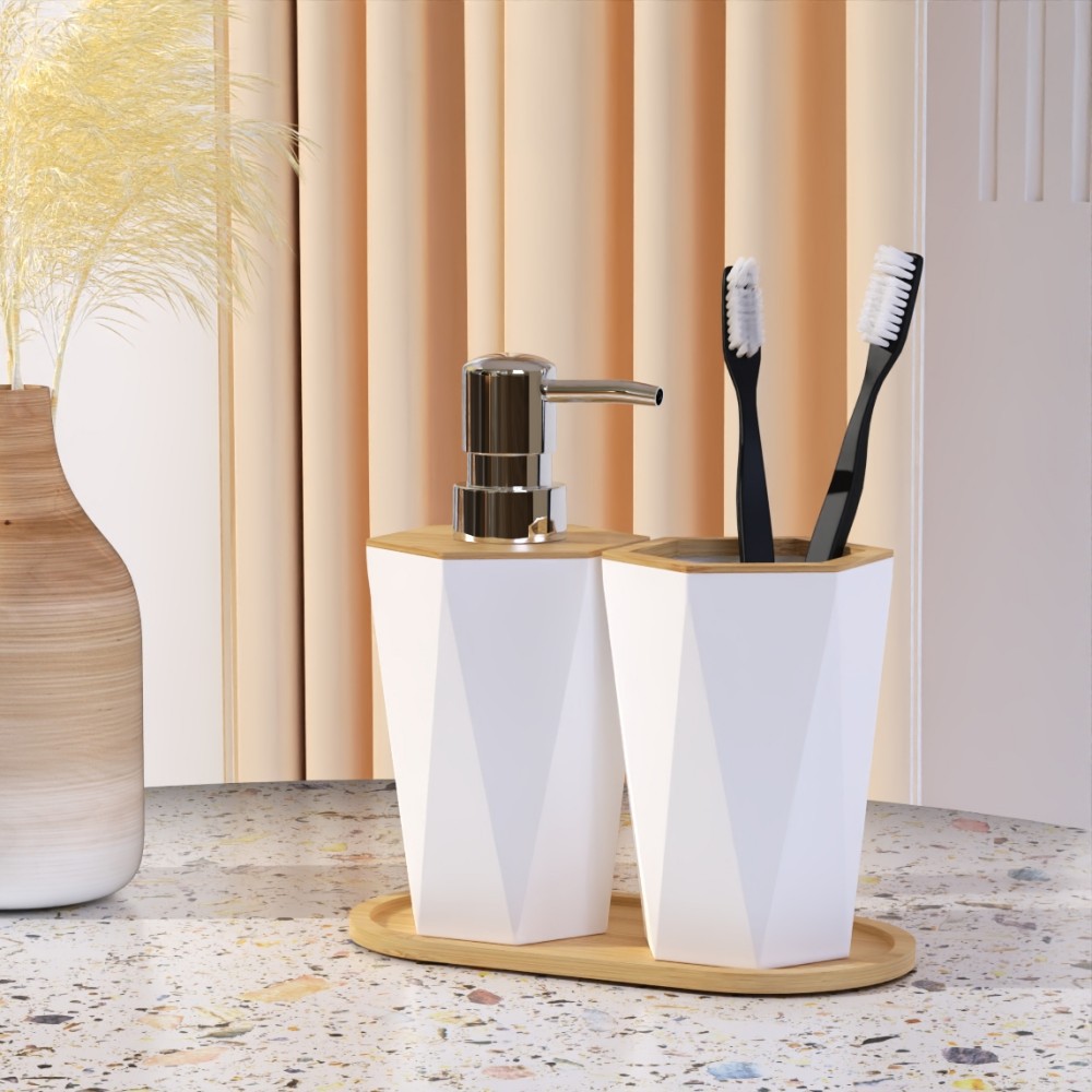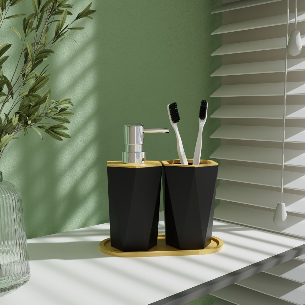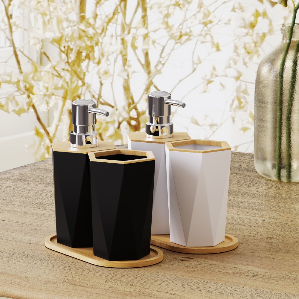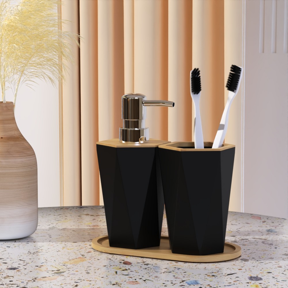 北欧卫浴三件套 厂家直销细条纹竹配灰色三件套乳液瓶牙刷杯皂盒