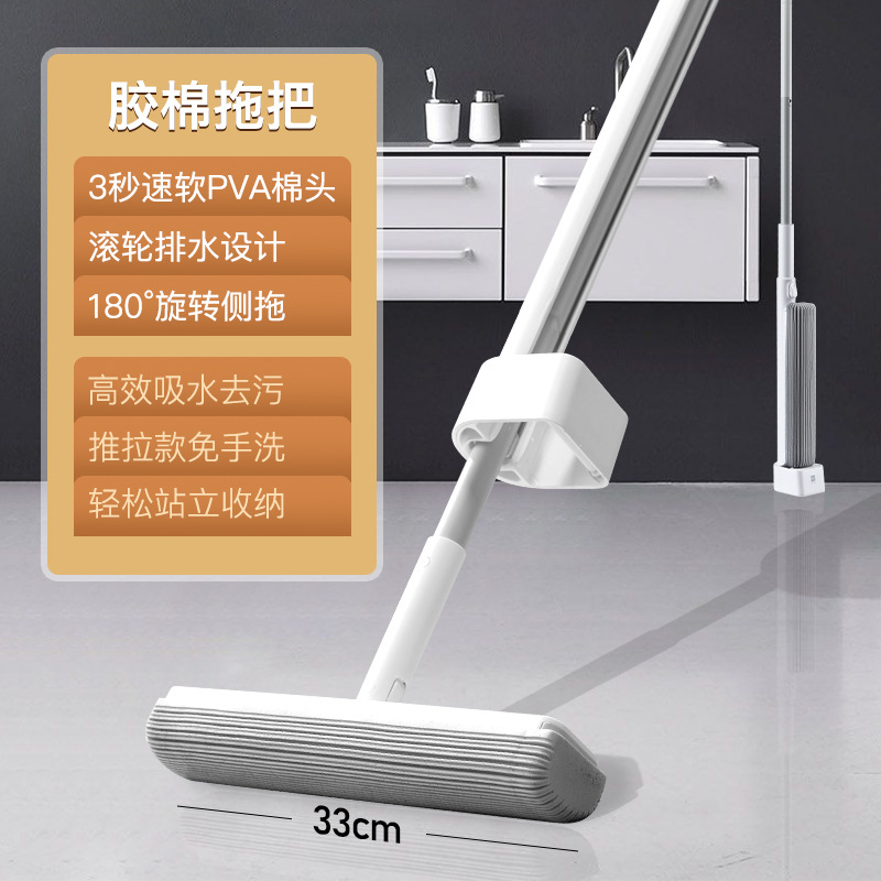 新款海绵拖把 直杆免手洗懒人拖把滚轮脱水 立式吸水胶棉拖把拖布