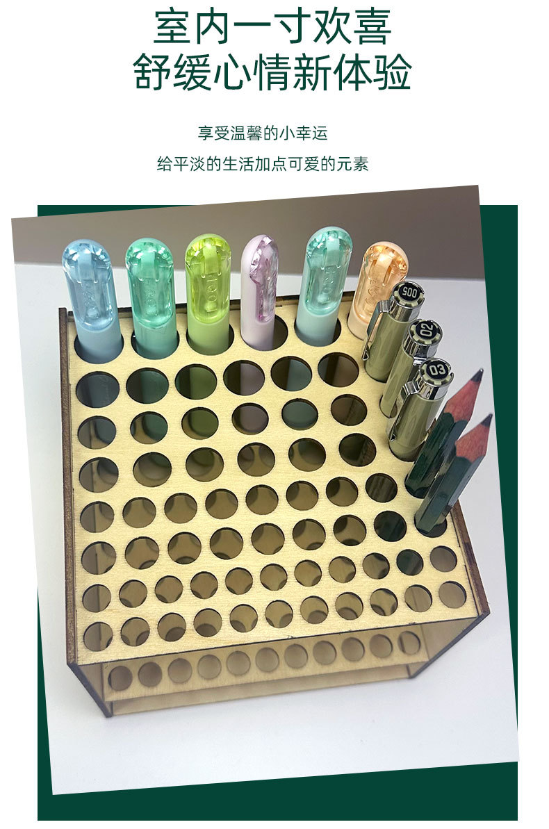 跨境木质笔架横放展示架桌面整理正方形67孔文具铅笔架眼线笔眉笔