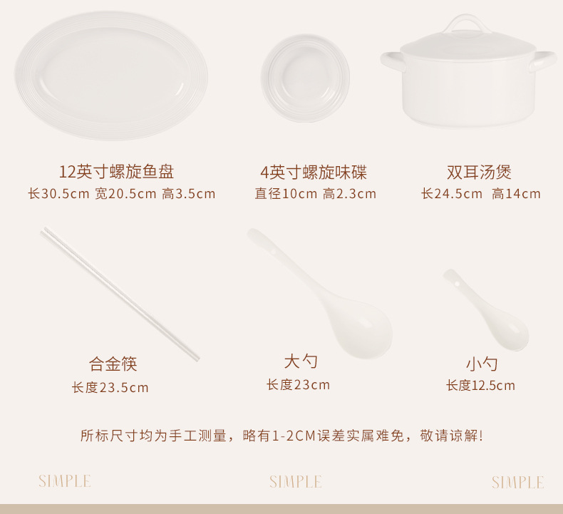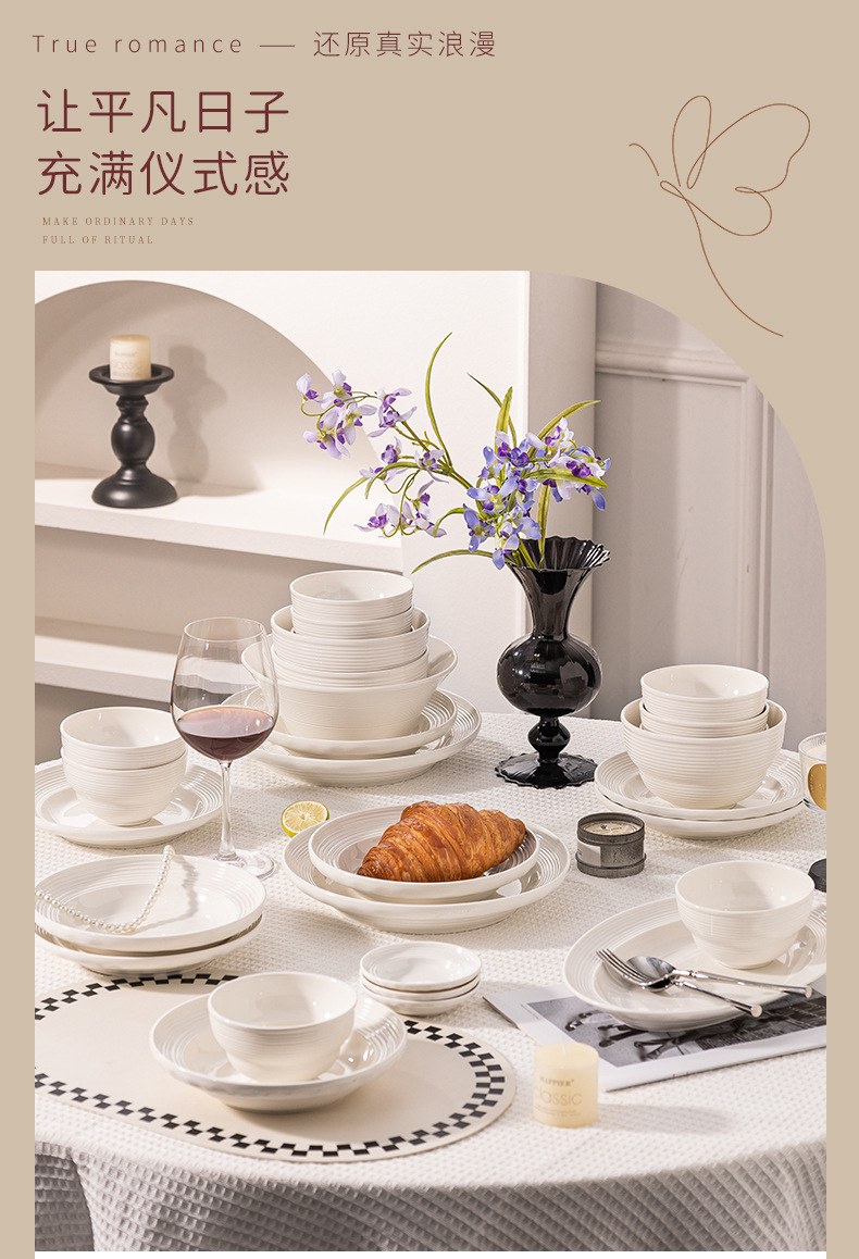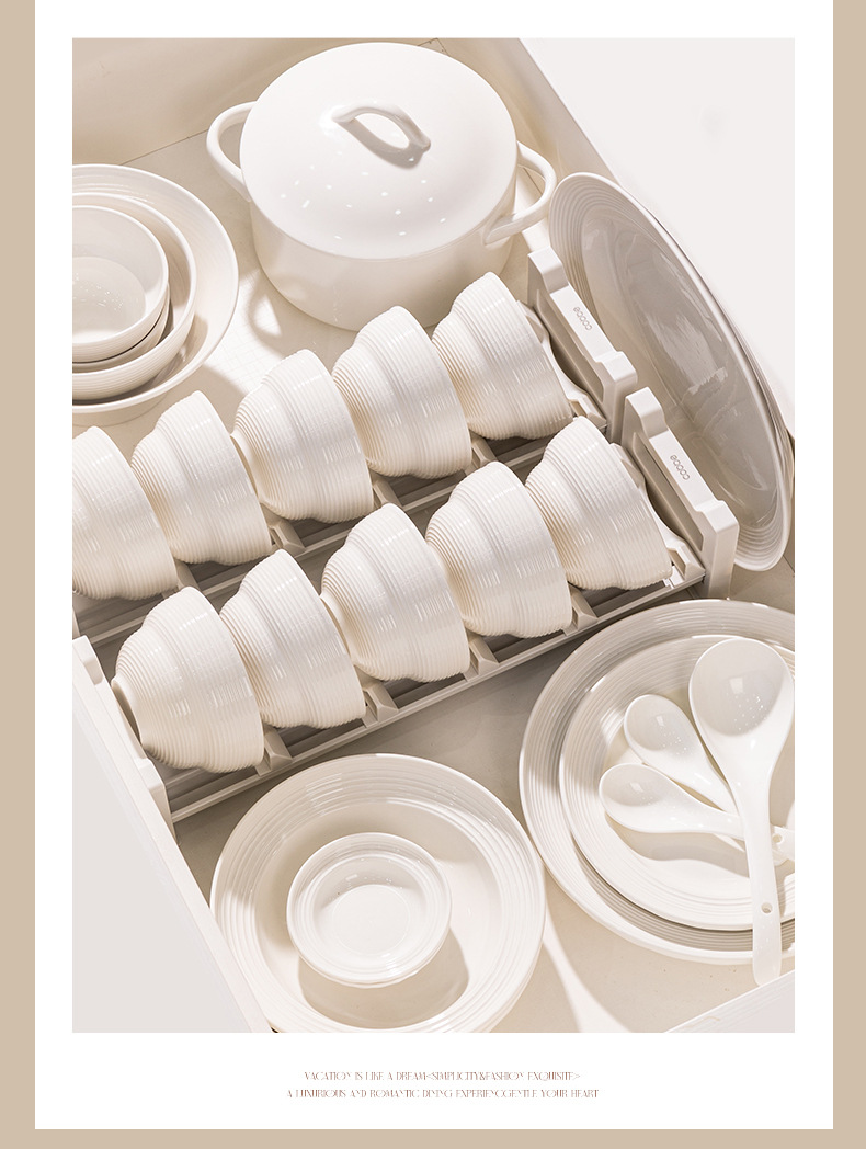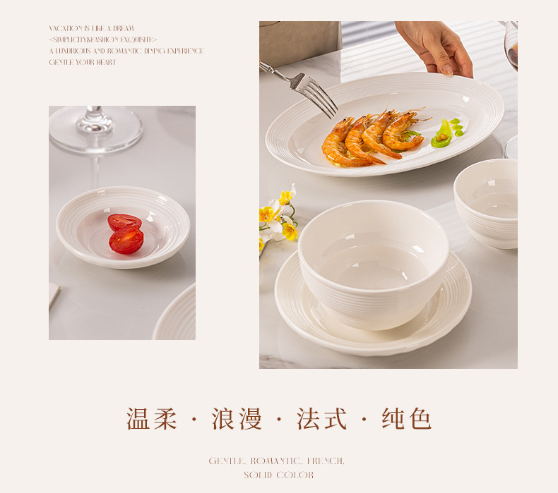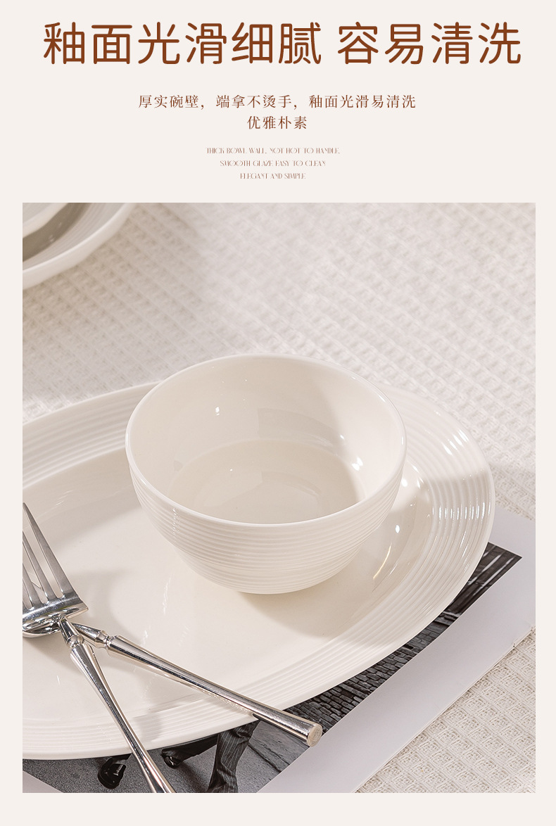 釉下彩纯白螺纹高级感陶瓷碗家用米饭碗面碗大号汤碗碗碟盘套装