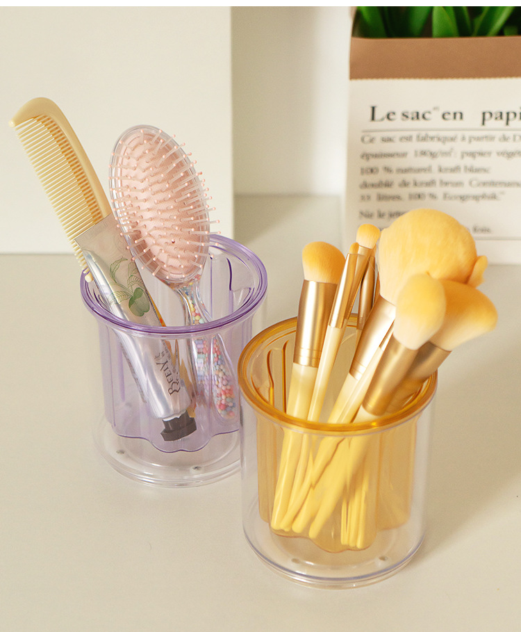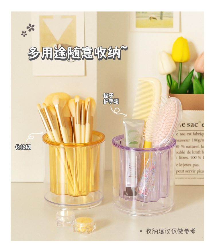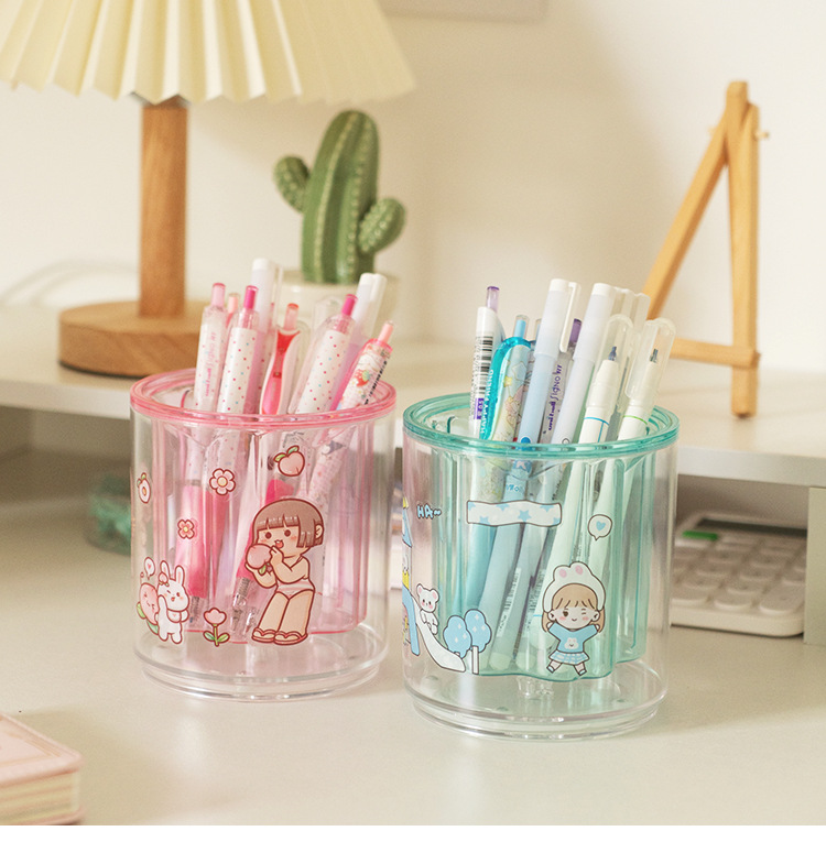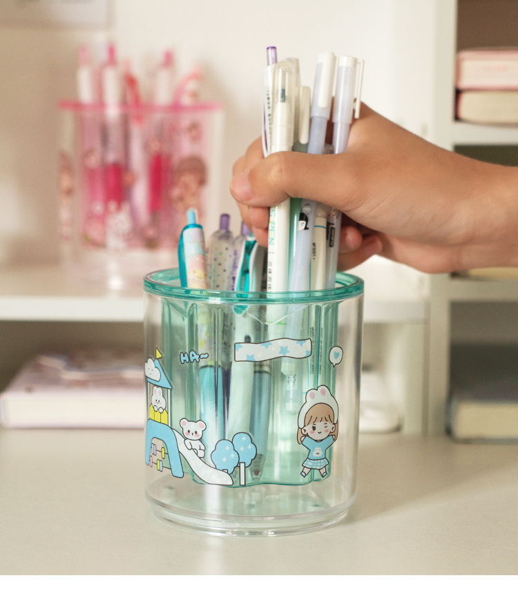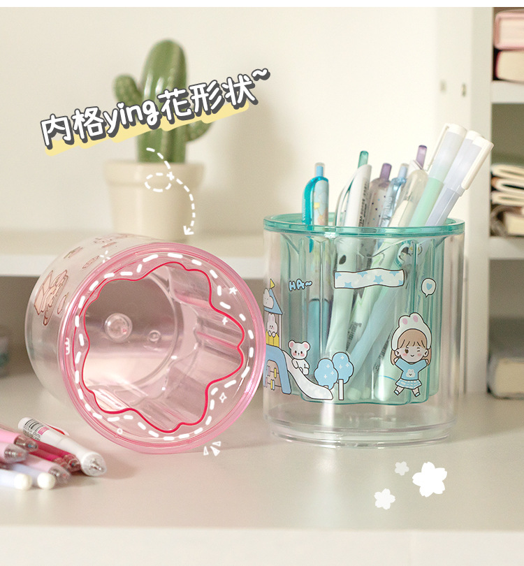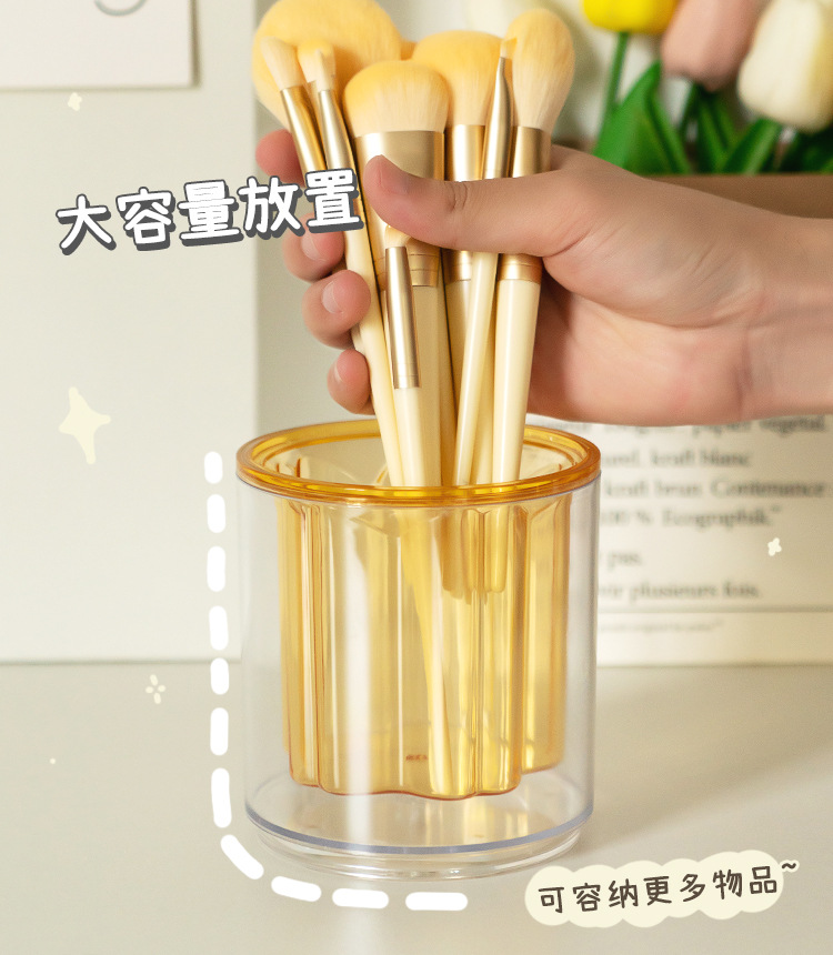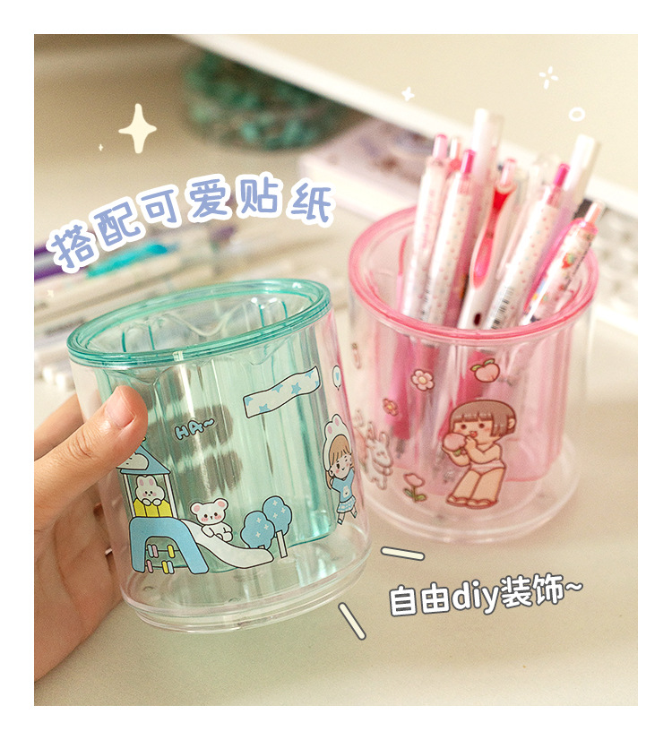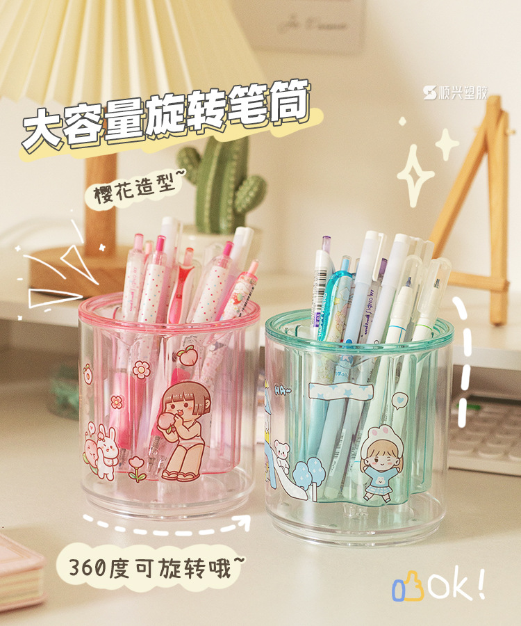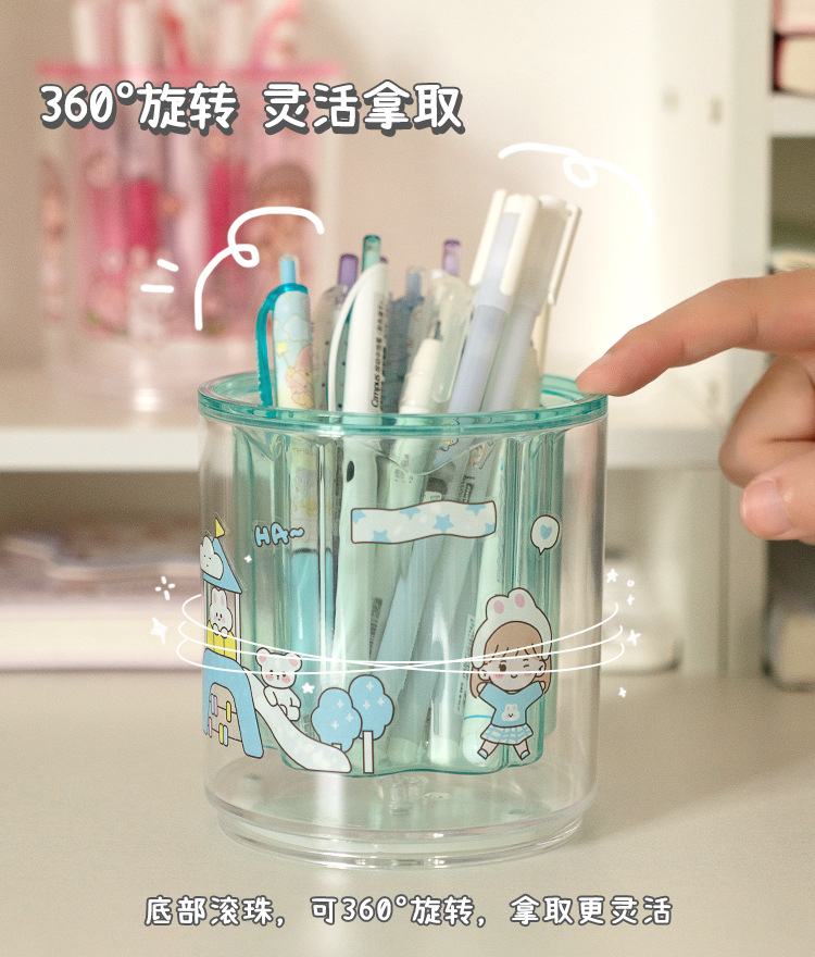 严选开学季桌面收纳笔筒办公室透明抽屉纯色大容量创意旋转笔架