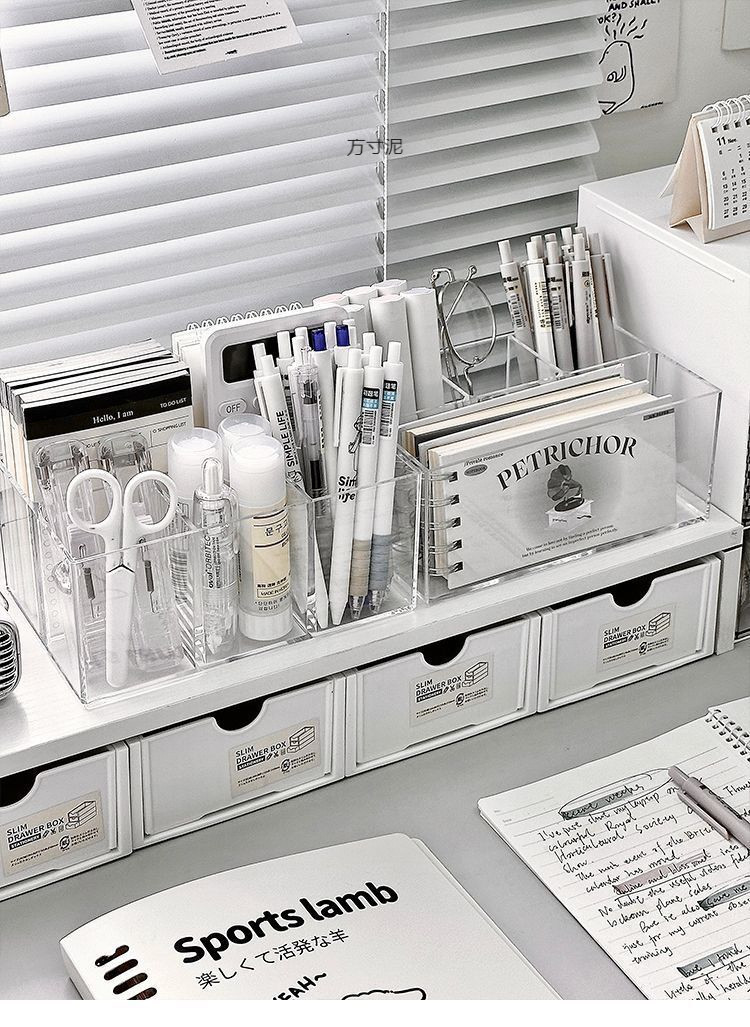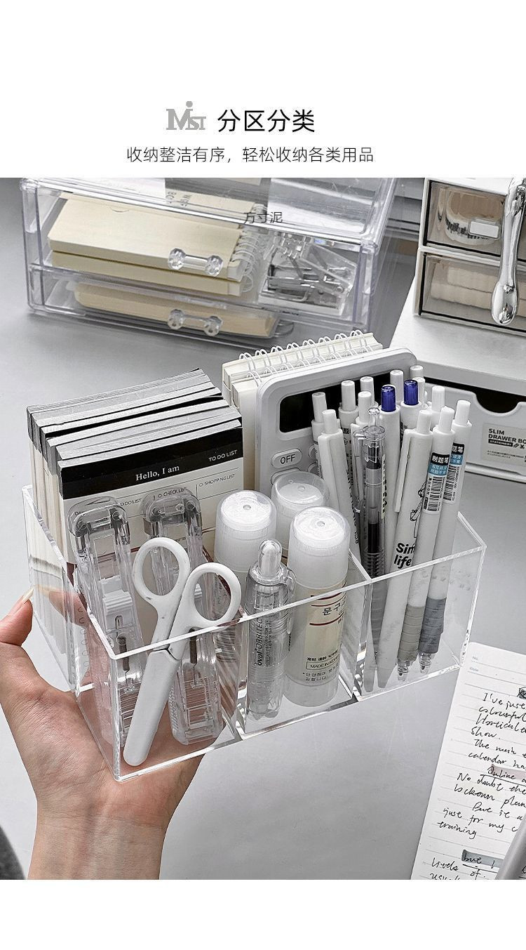 笔筒收纳一体分格文具盒学生宿舍办公室桌面置物架亚克力透明笔架