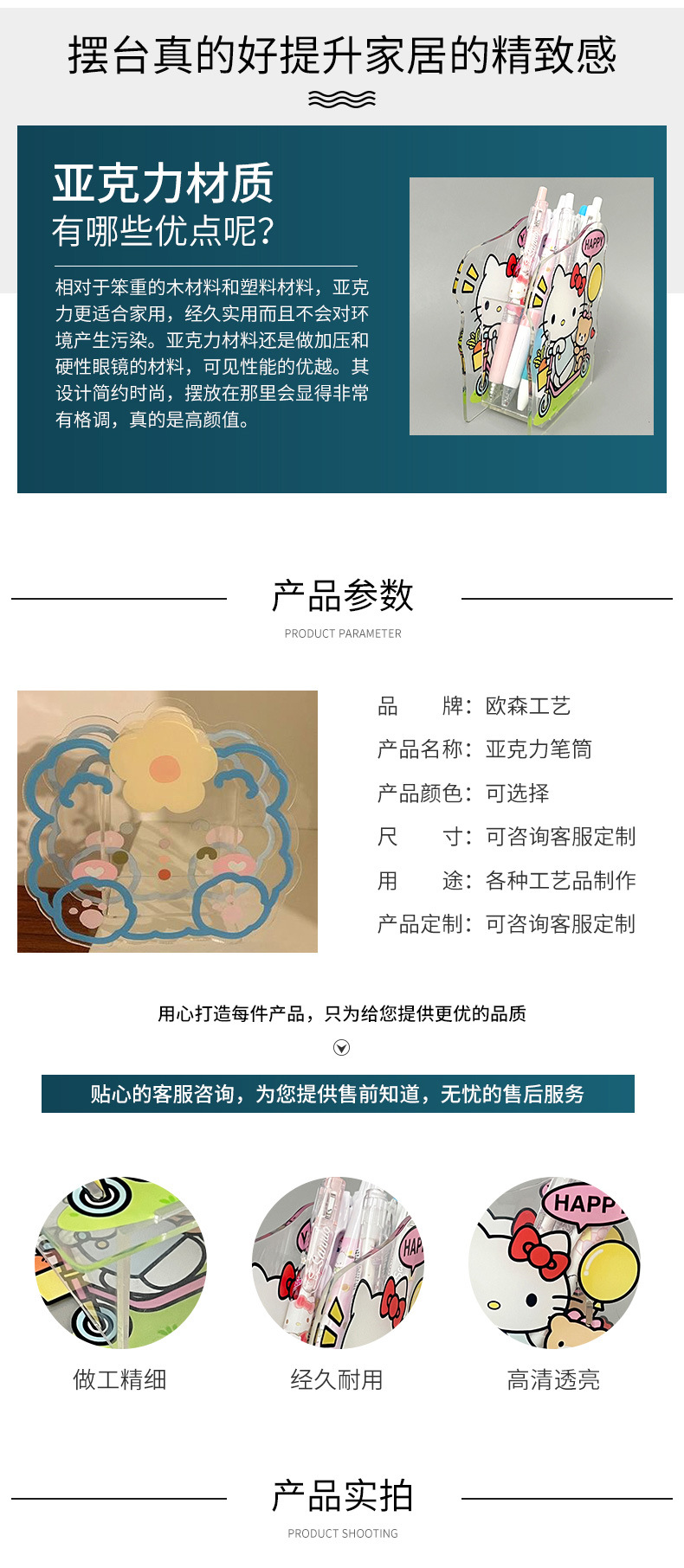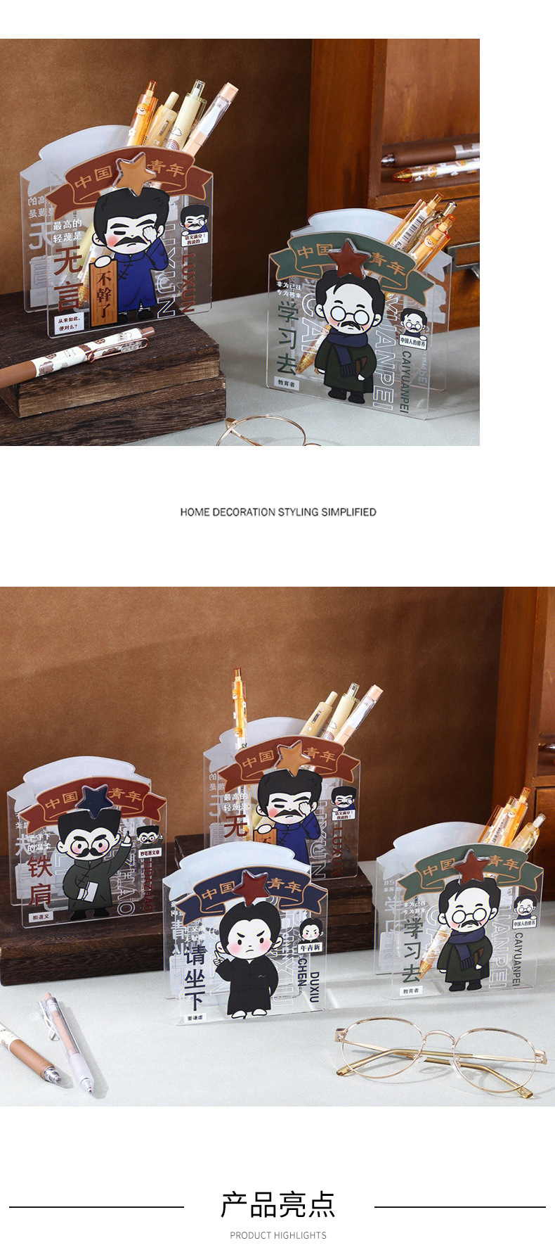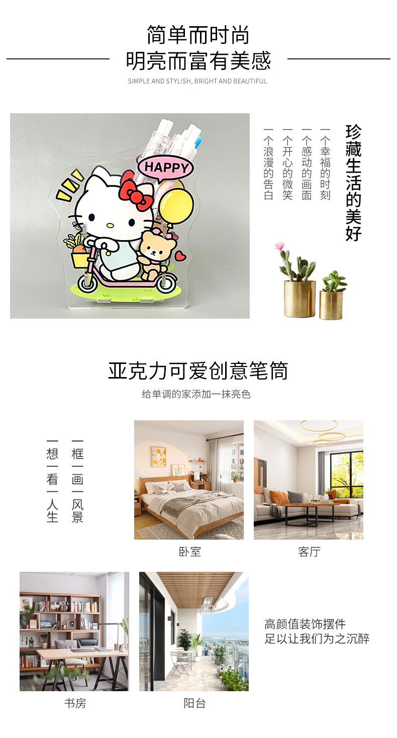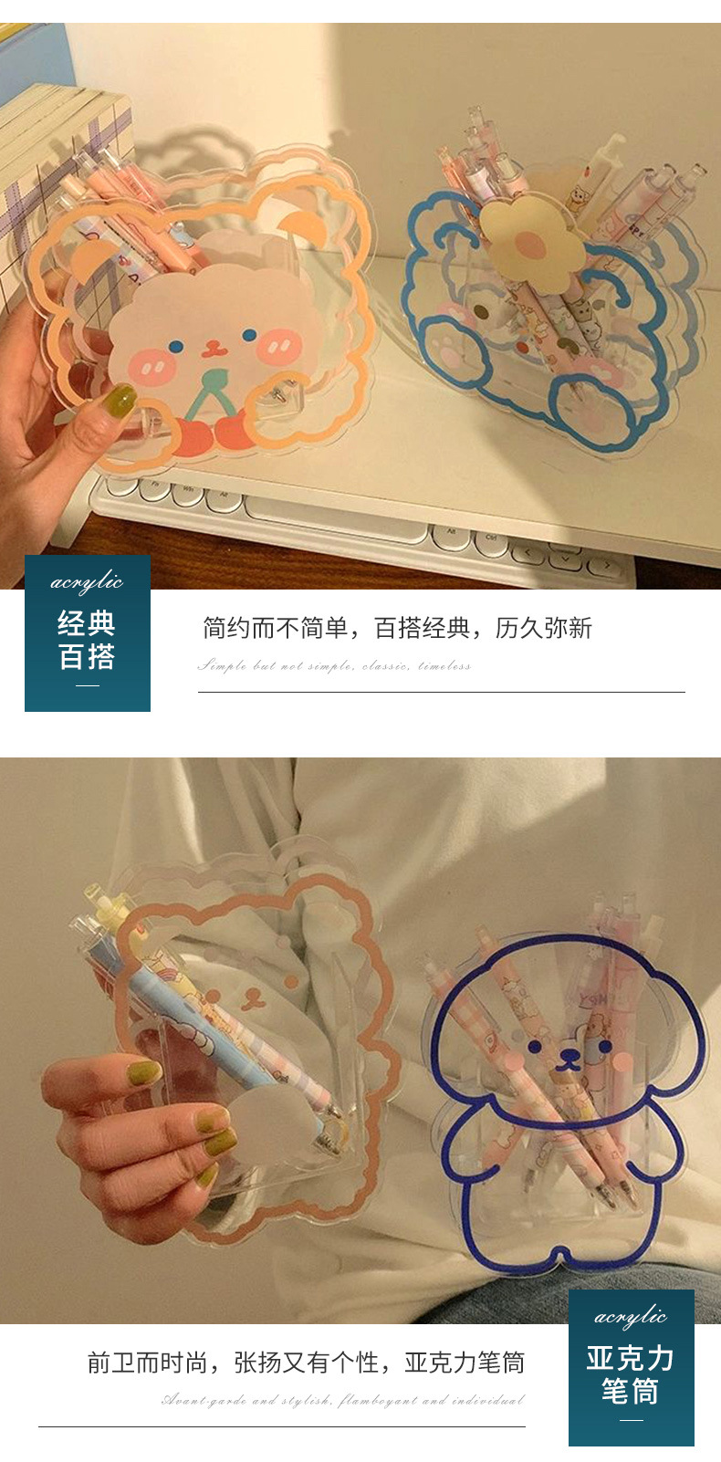 亚克力创意笔筒可爱卡通学生笔架桌面多功能文具高颜值收纳盒批发