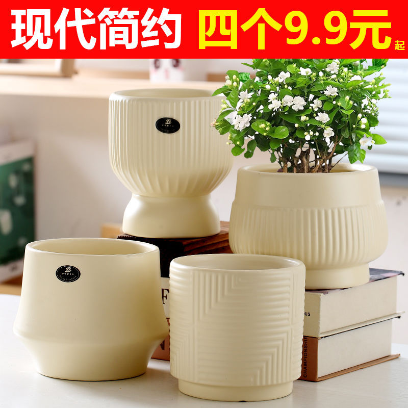 陶瓷花盆北欧家用简约ins风轻奢奶油风蝴蝶兰多肉绿植盆栽盆景盆