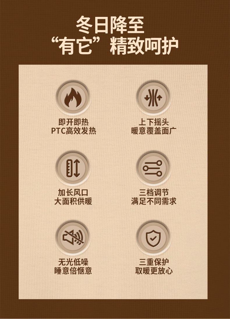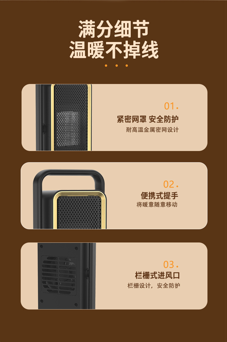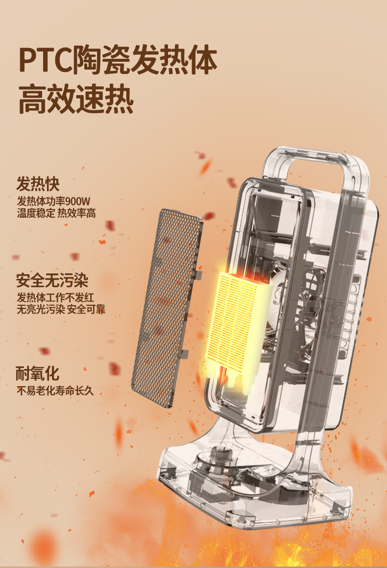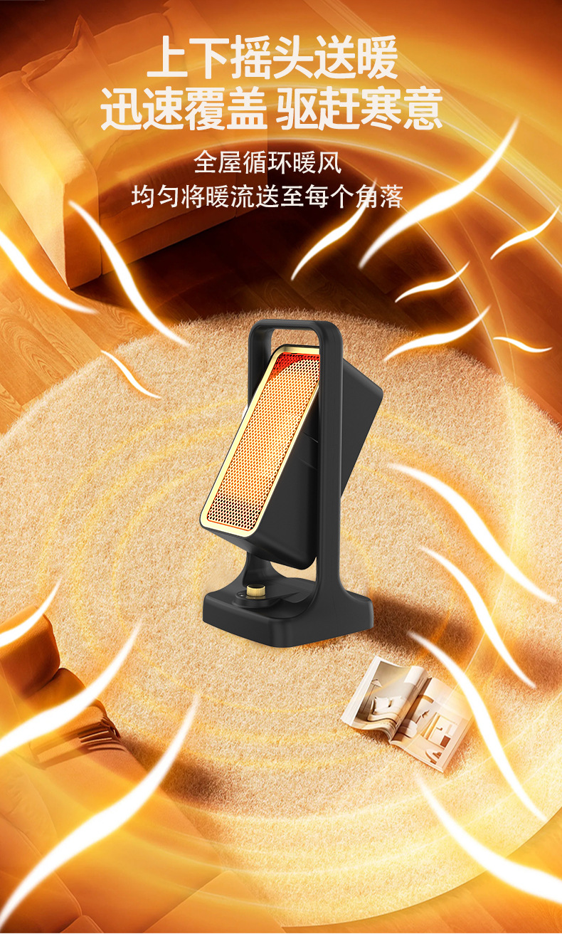 2024新款家用 暖风机桌面办公立体PTC陶瓷加热上下45°摇头大面积