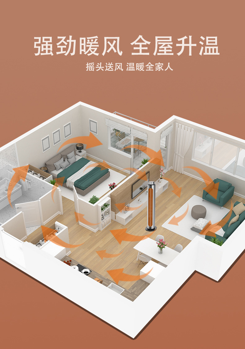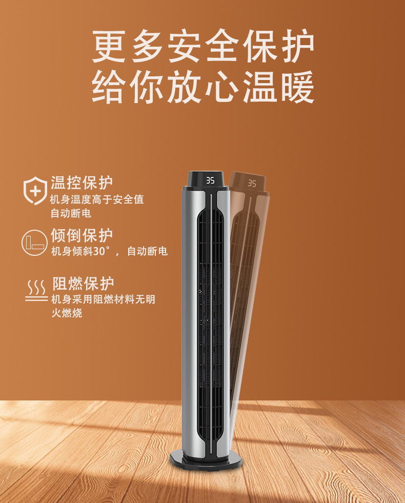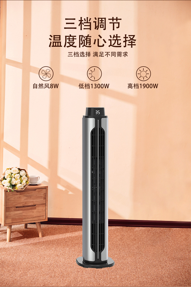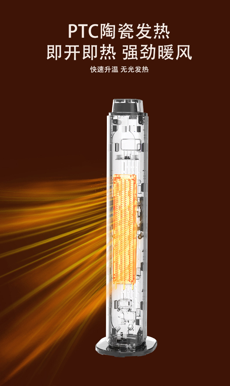 2024新款跨境取暖器PTC暖风机立式遥控摇头静音大风力室内加热器