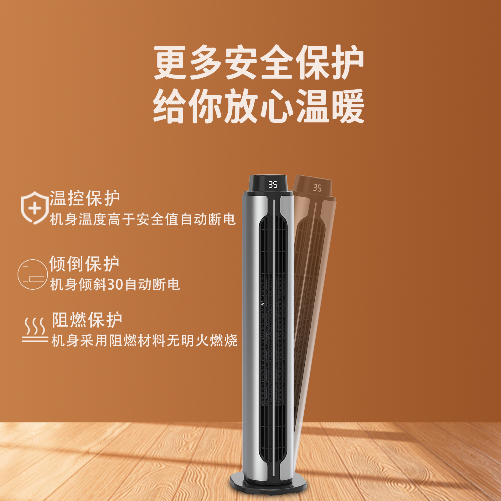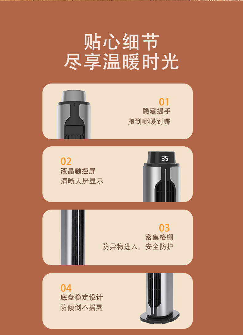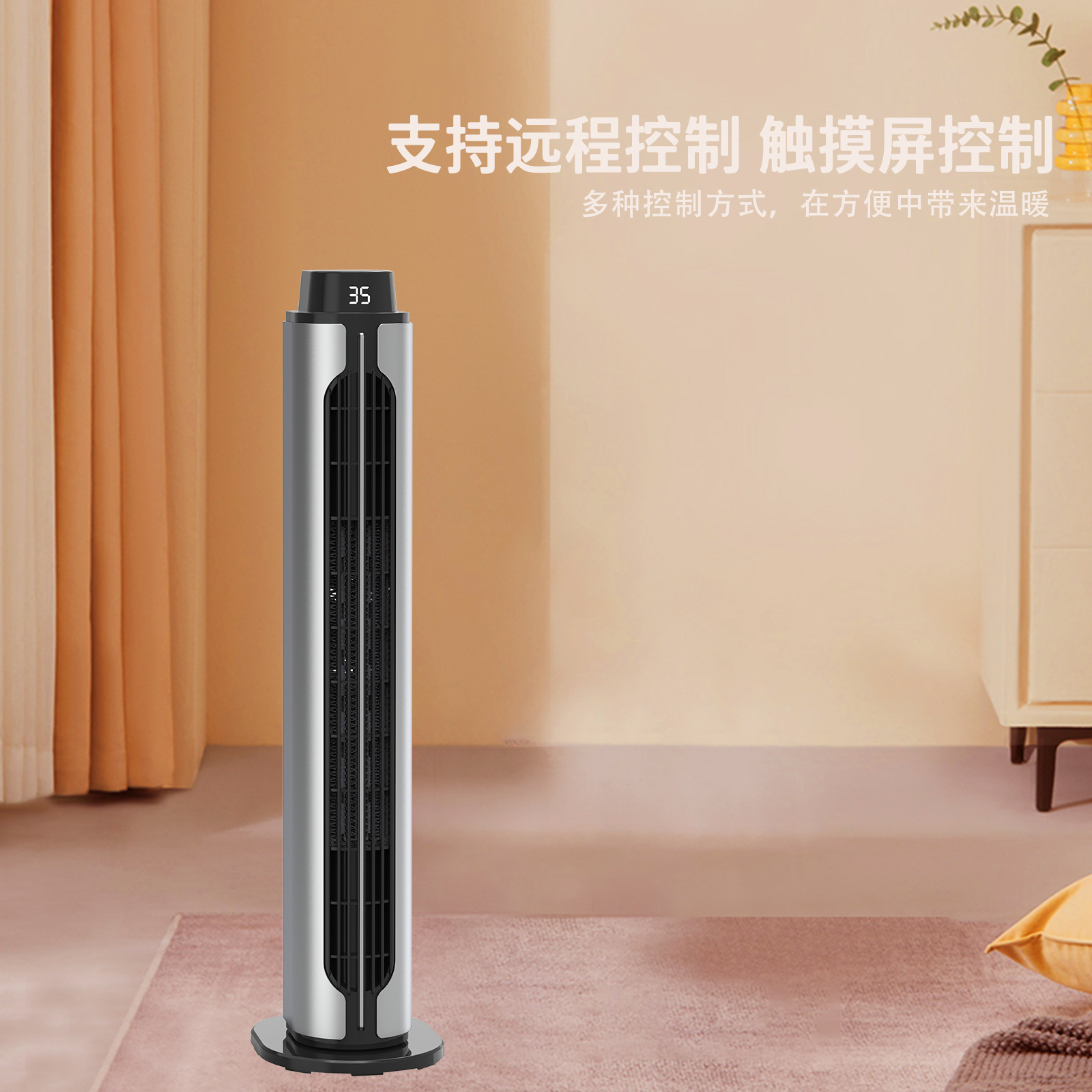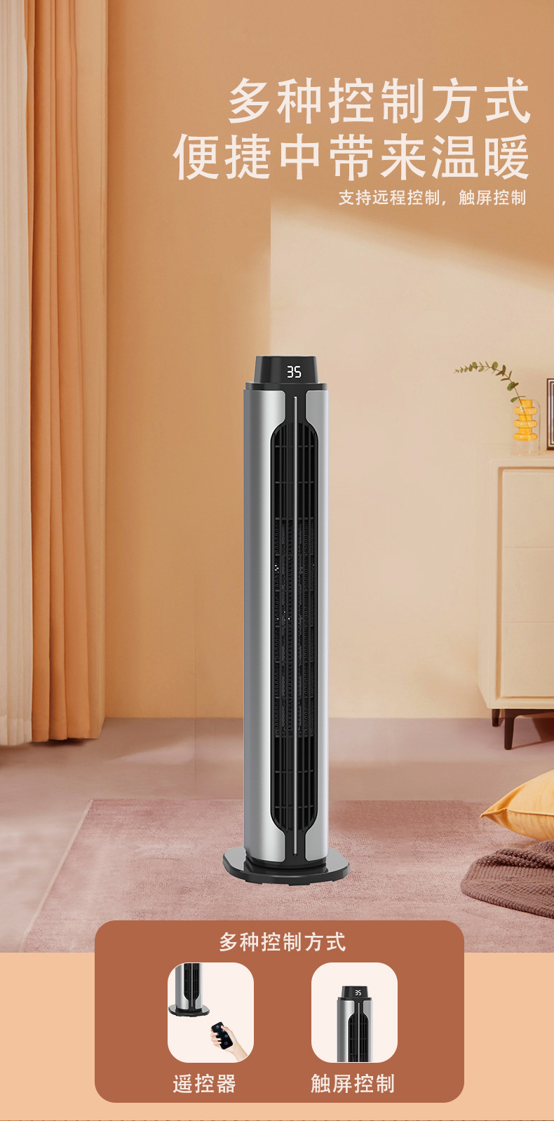 2024新款跨境取暖器PTC暖风机立式遥控摇头静音大风力室内加热器